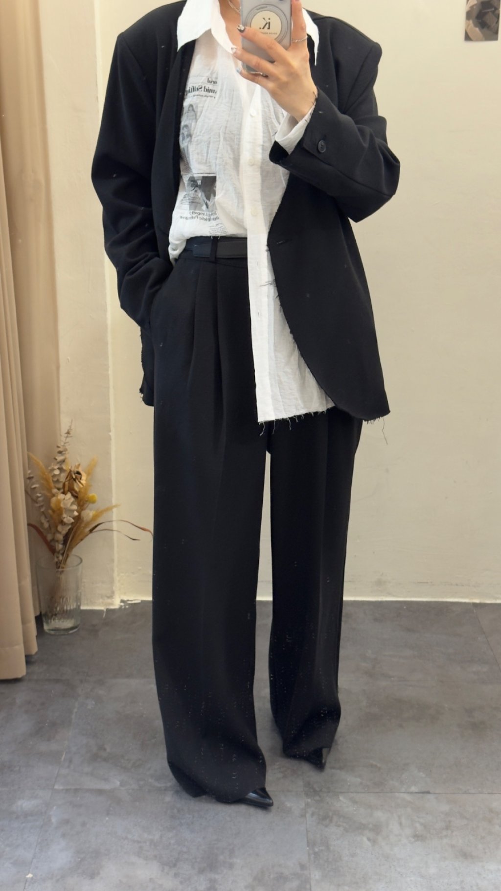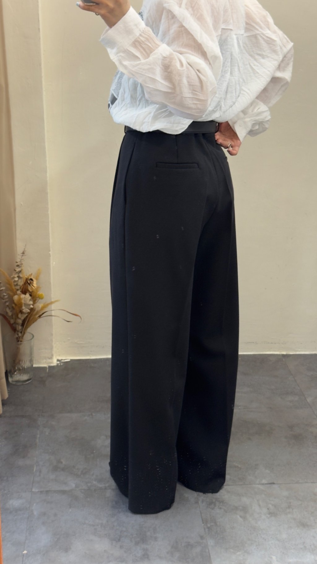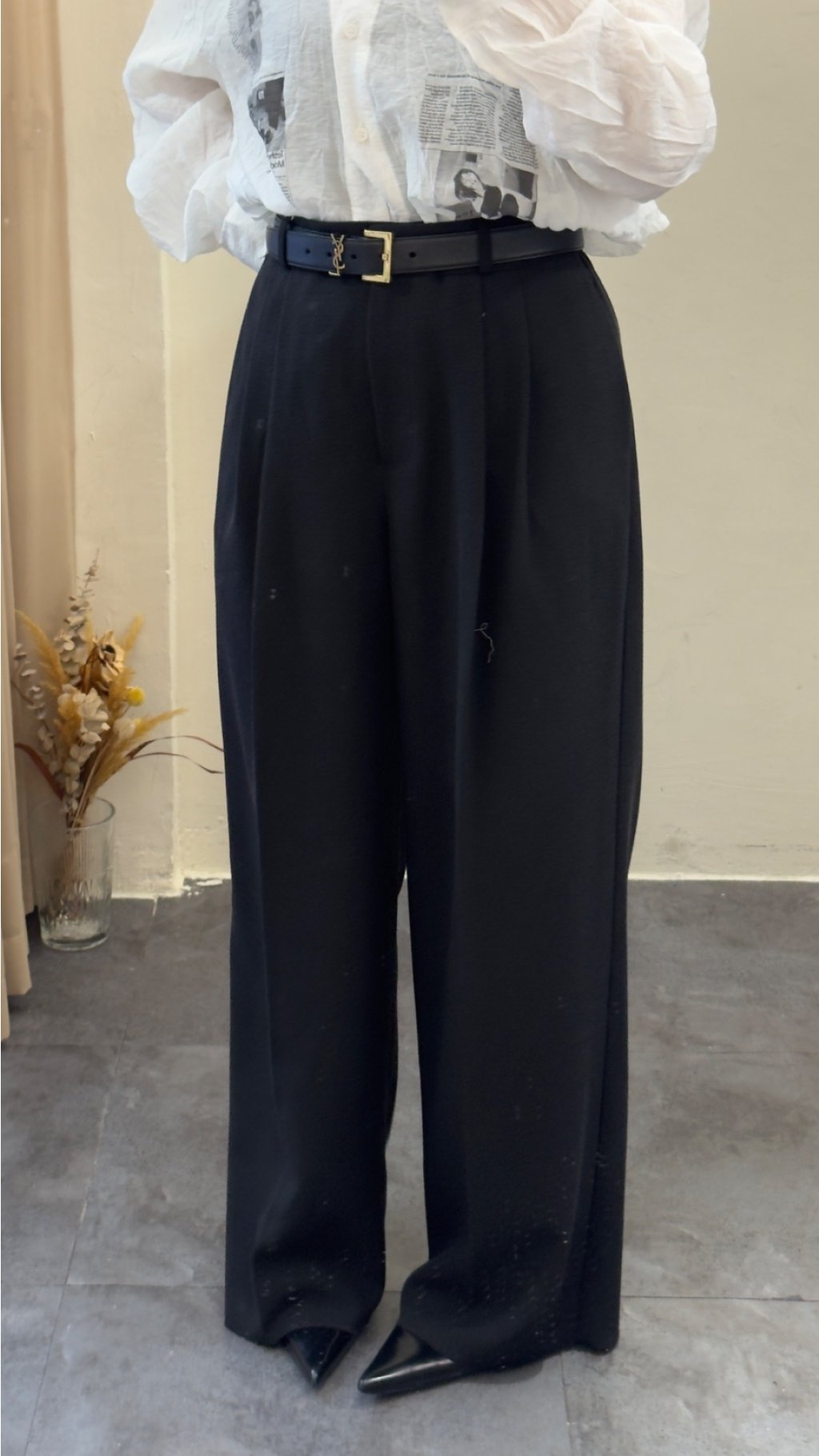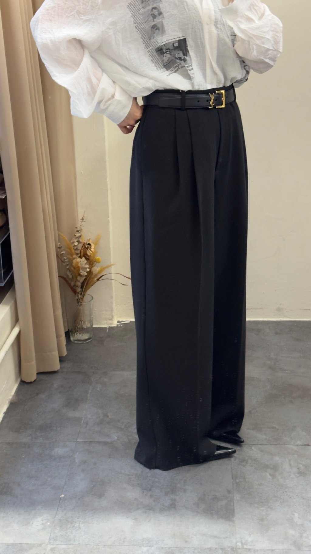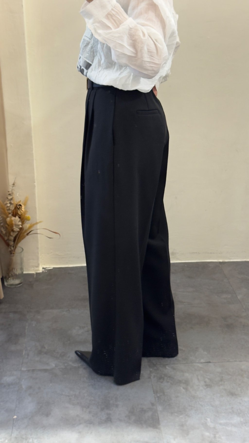 選用垂墜感極佳嘅西裝面料,觸感順滑柔軟,帶有適度挺括感,既能撐起闊腿版型,又唔會過於厚重。面料唔易起皺,日常著免熨燙,打理超方便,係懶人都可以著得靚嘅實用款。表面呈啞光質感,軍綠色溫柔復古,黑色沉穩高級,兩色都充滿高級質感,唔會有廉價塑膠感。