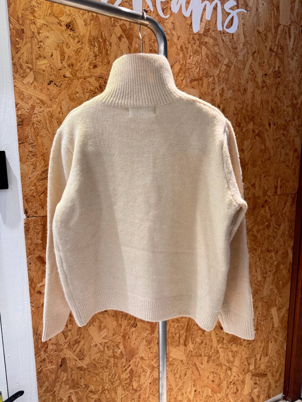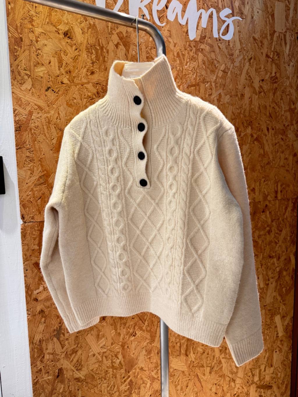 奶杏色麻花毛冷混紡半高領polo針織Top