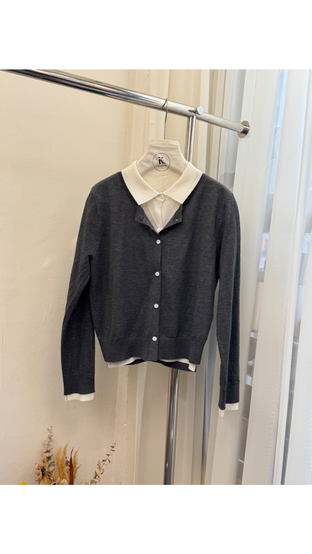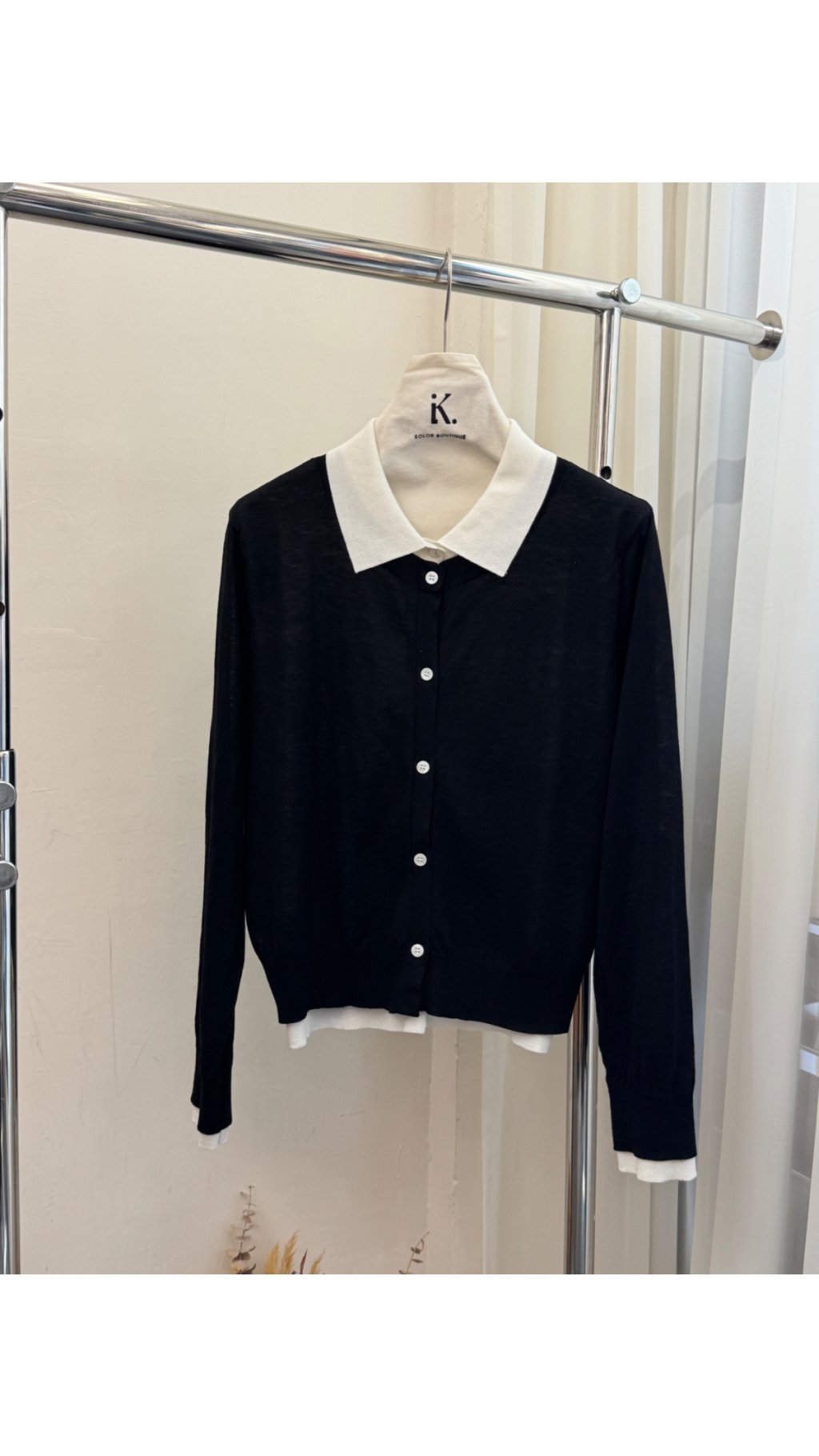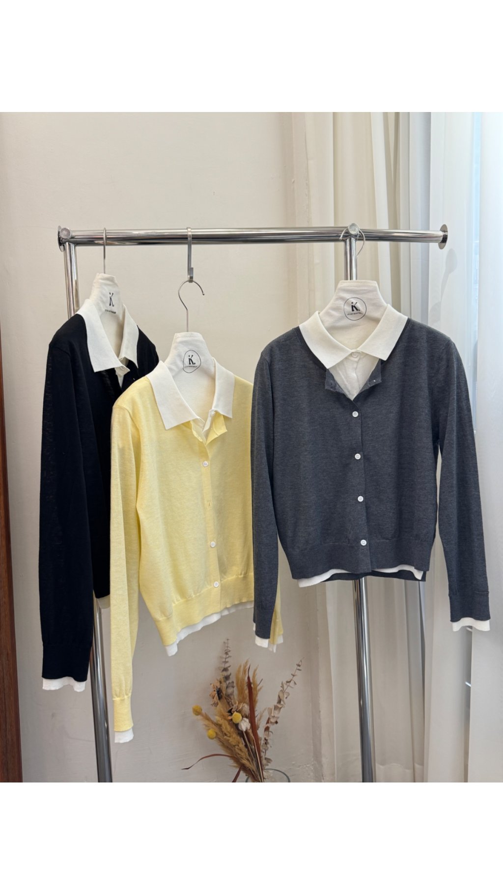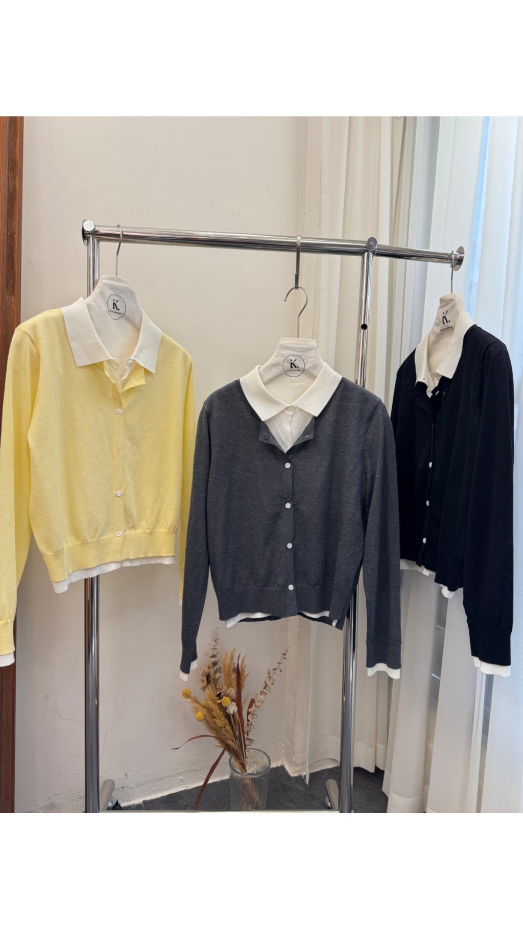 • 假兩件疊穿設計:白色翻領內搭與針織開衫一體成型,視覺上營造出疊穿層次感,不用額外搭配就能擁有學院風氛圍。