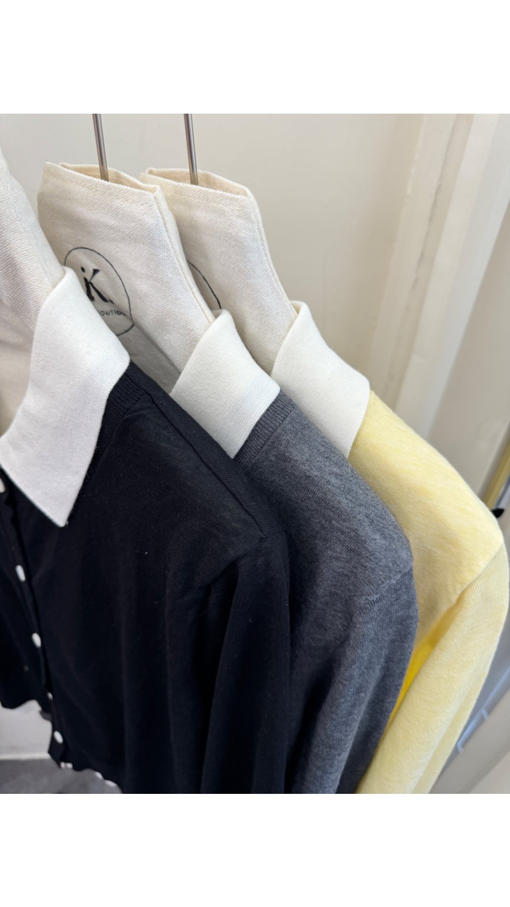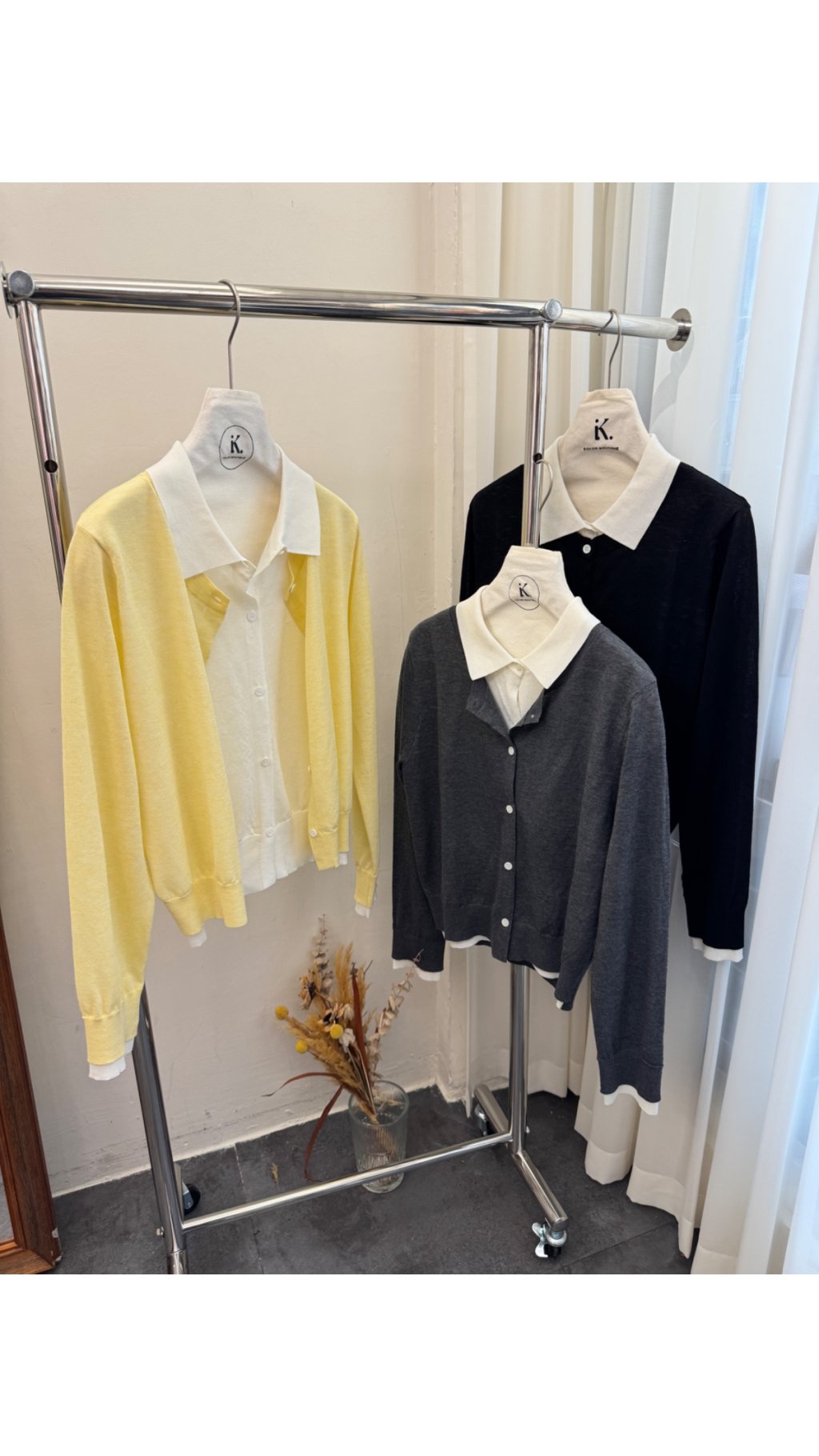 • 經典V領開衫版型:V領開襟設計修飾頸部線條,顯瘦又溫柔,白色翻領點綴其中,增添精致感與學院氣息。