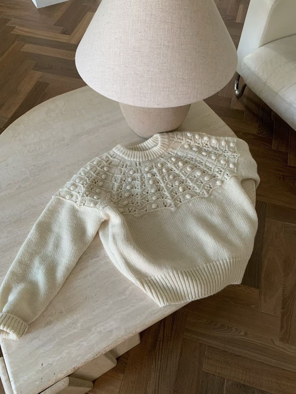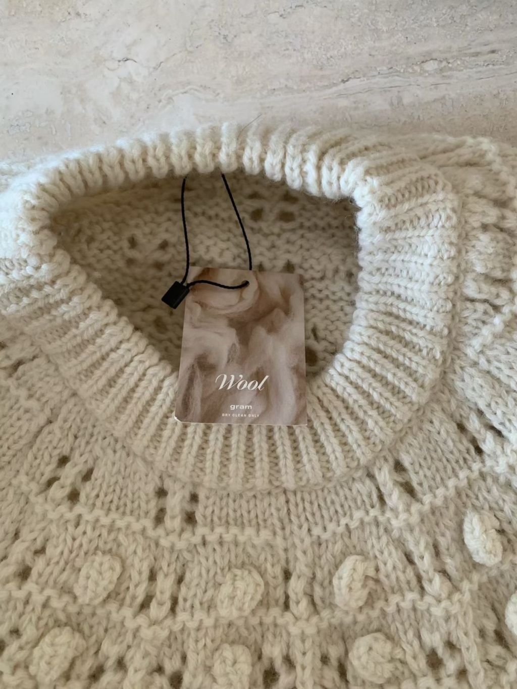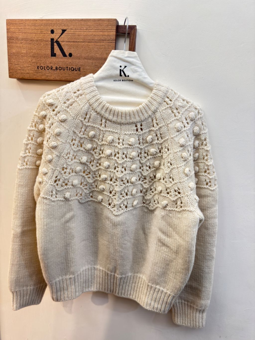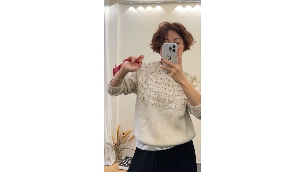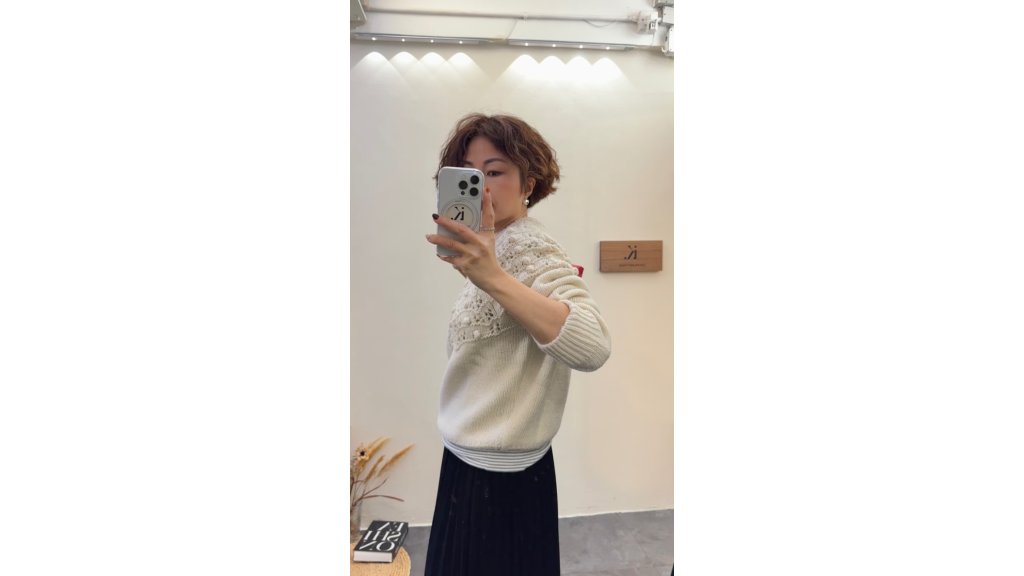 主頁 KN003-AF 米白波波鈎花100%wool針織冷衫