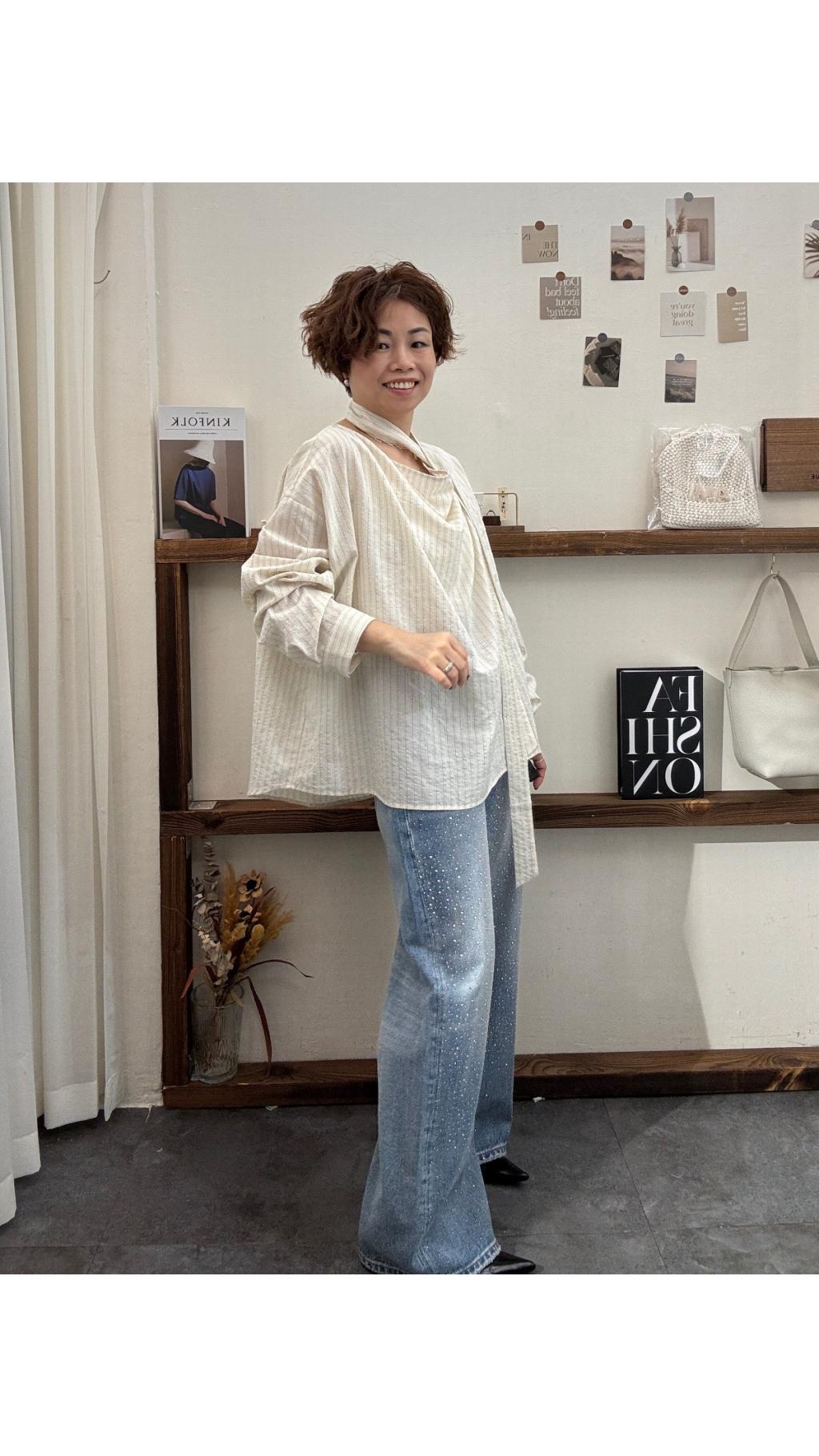Top60330001 掛脖式條紋長袖襯衫
