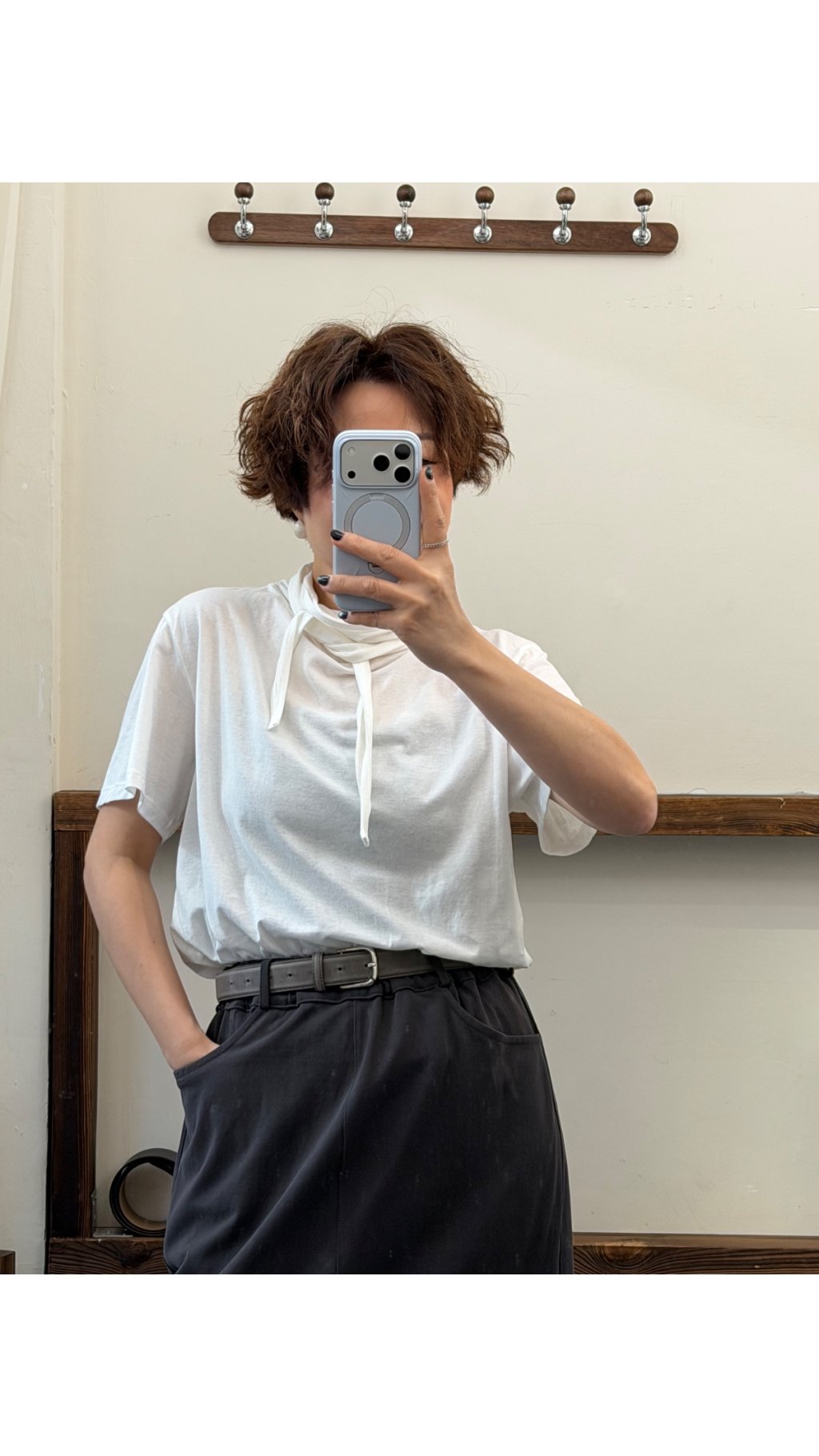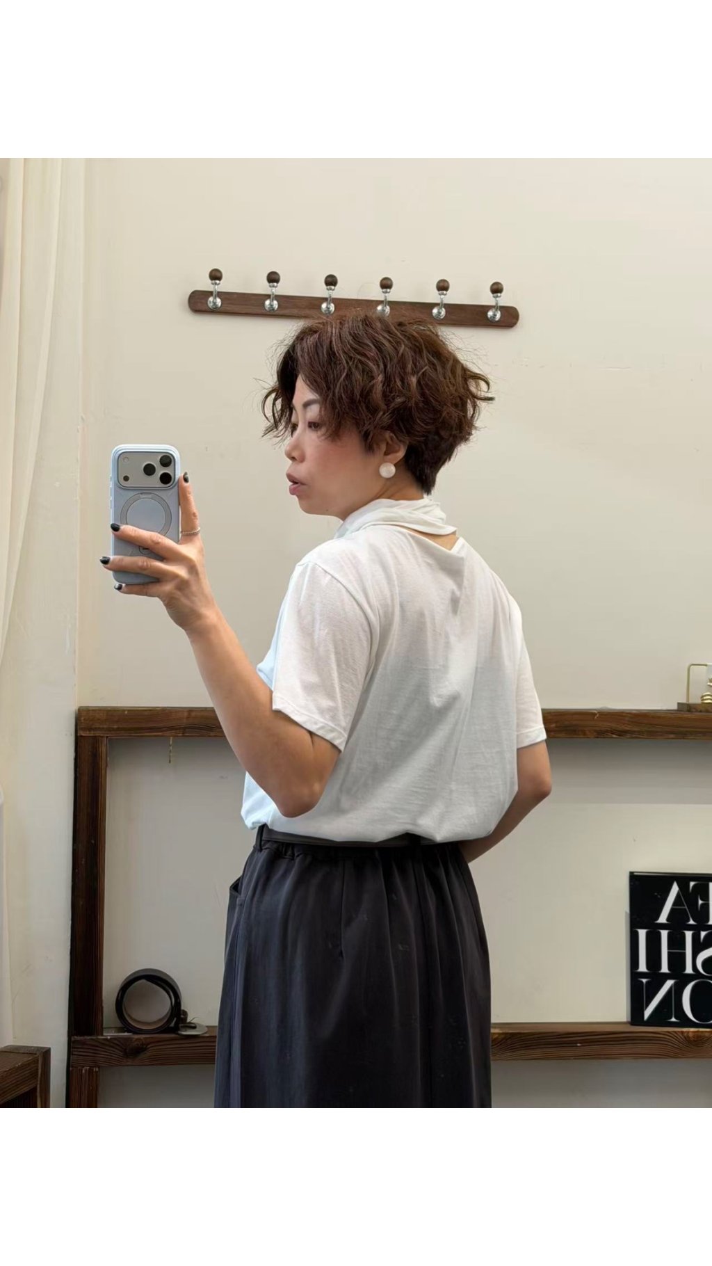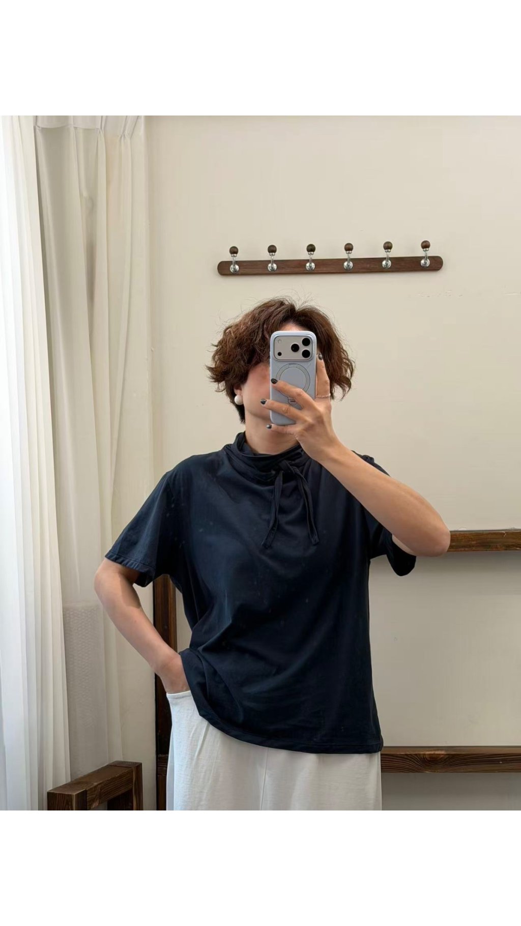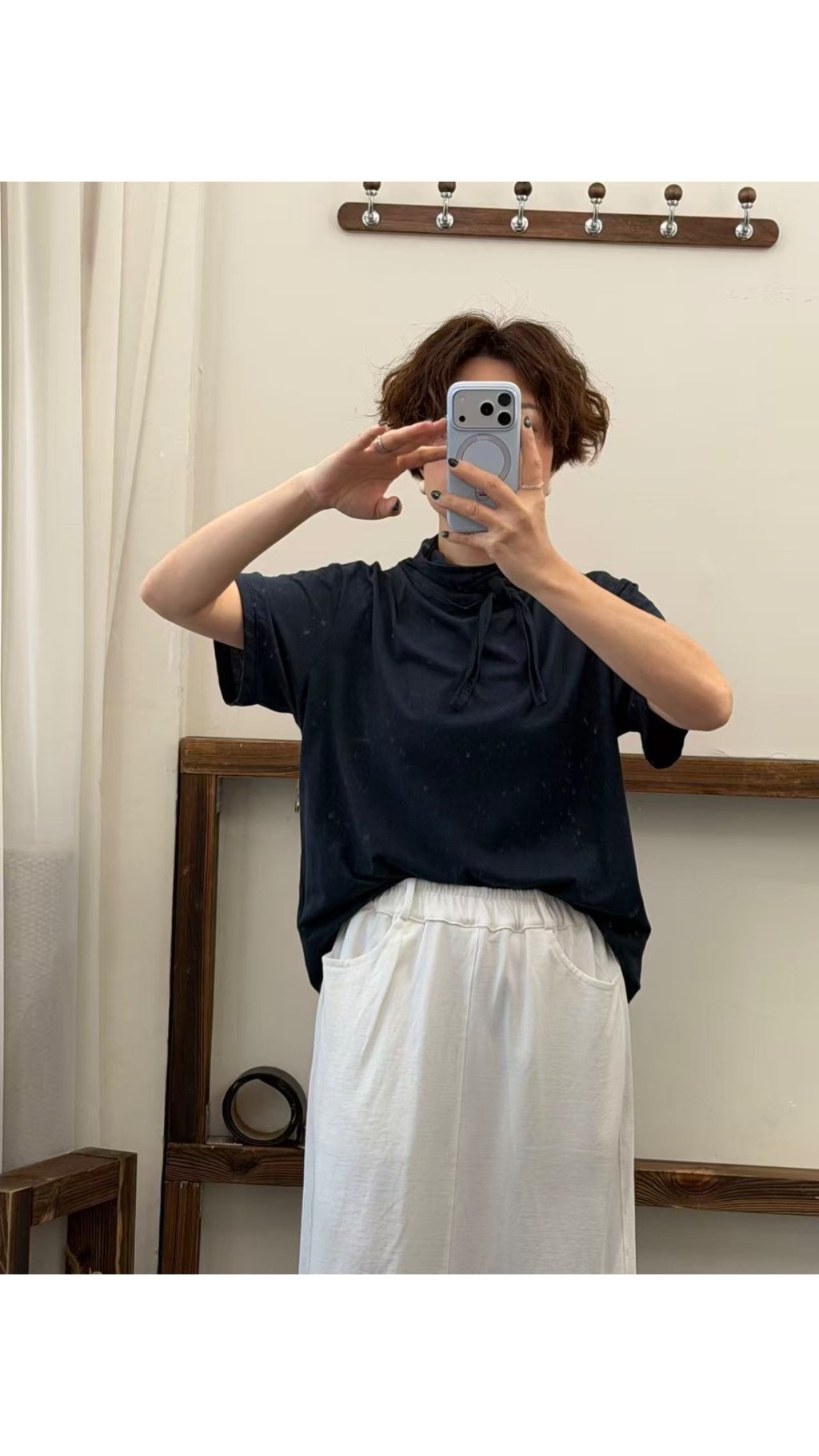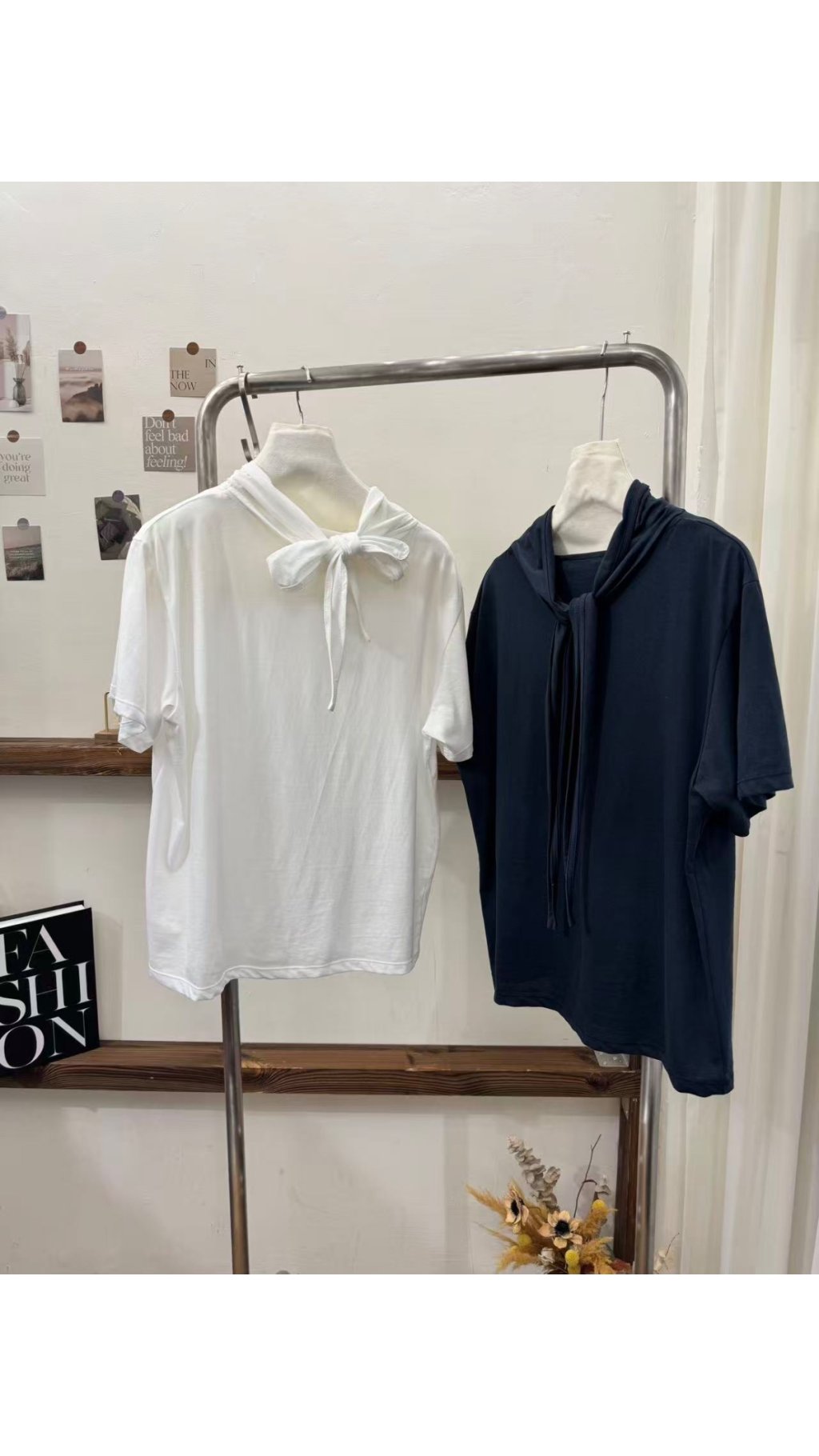 基礎 T 恤版型搭配可調節飄帶領口,簡約中帶著精致小心機,柔軟親膚的面料帶來舒適穿著體驗,無論日常通勤、約會還是休閒出遊,都能輕鬆營造出韓系小姐姐的隨性美感。