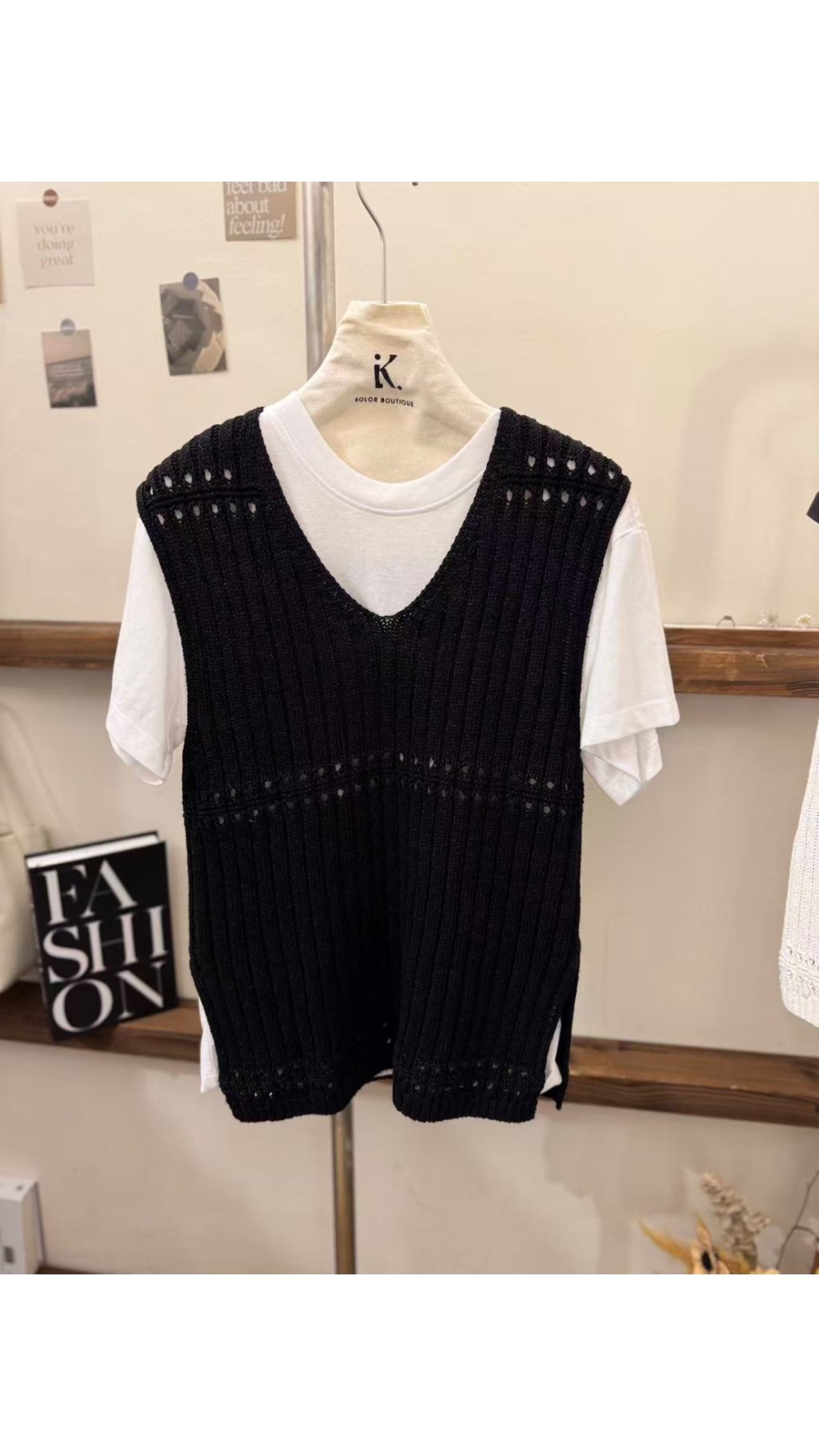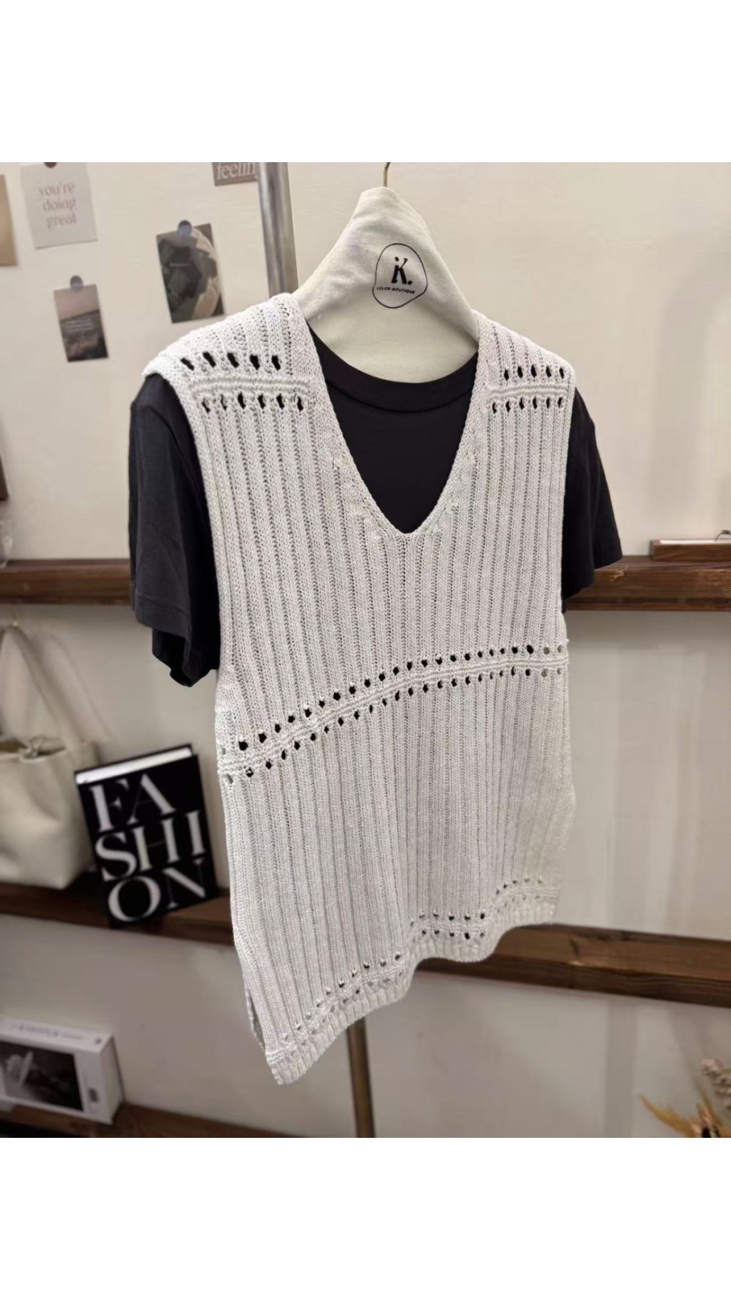 豎坑條肌理 + 鏤空點綴,融合了針織的溫柔與設計感,寬鬆版型修飾身形,無論日常通勤、約會還是休閒出遊,都能輕鬆營造出隨性又高級的氛圍。