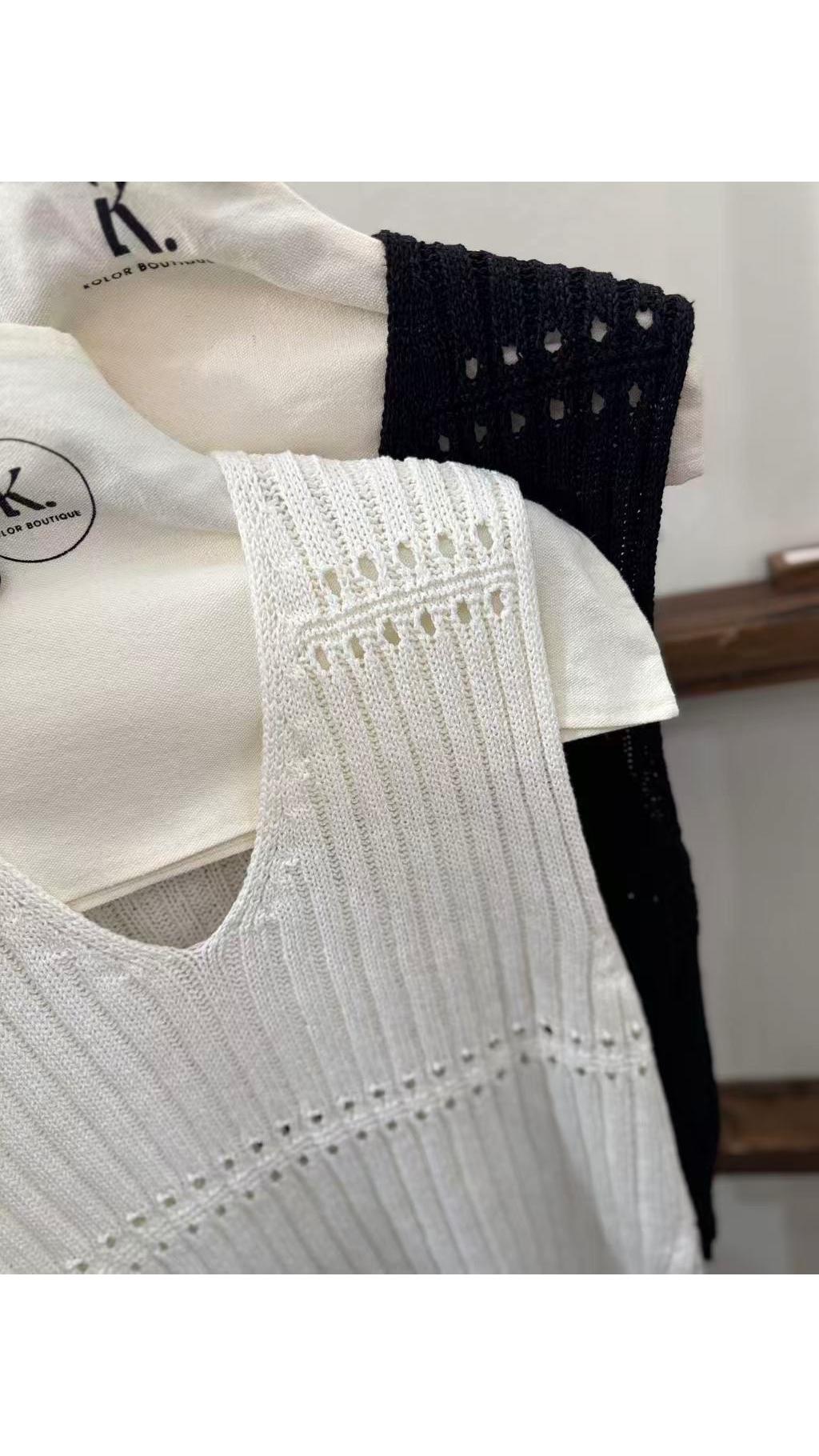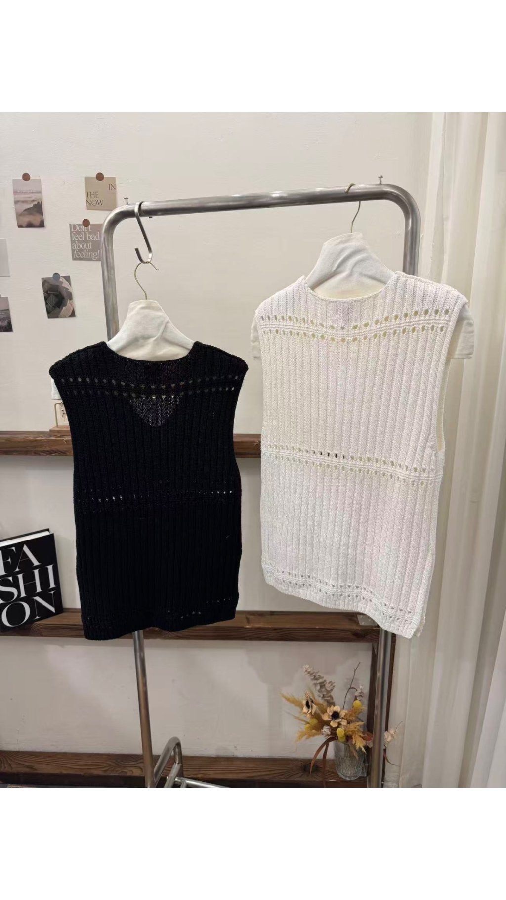 鏤空點綴肌理:衣身採用豎坑條織法,搭配領口、腰間、下擺的鏤空花紋,輕薄透氣,增添空氣感與精致細節,避免純色針織的單調。