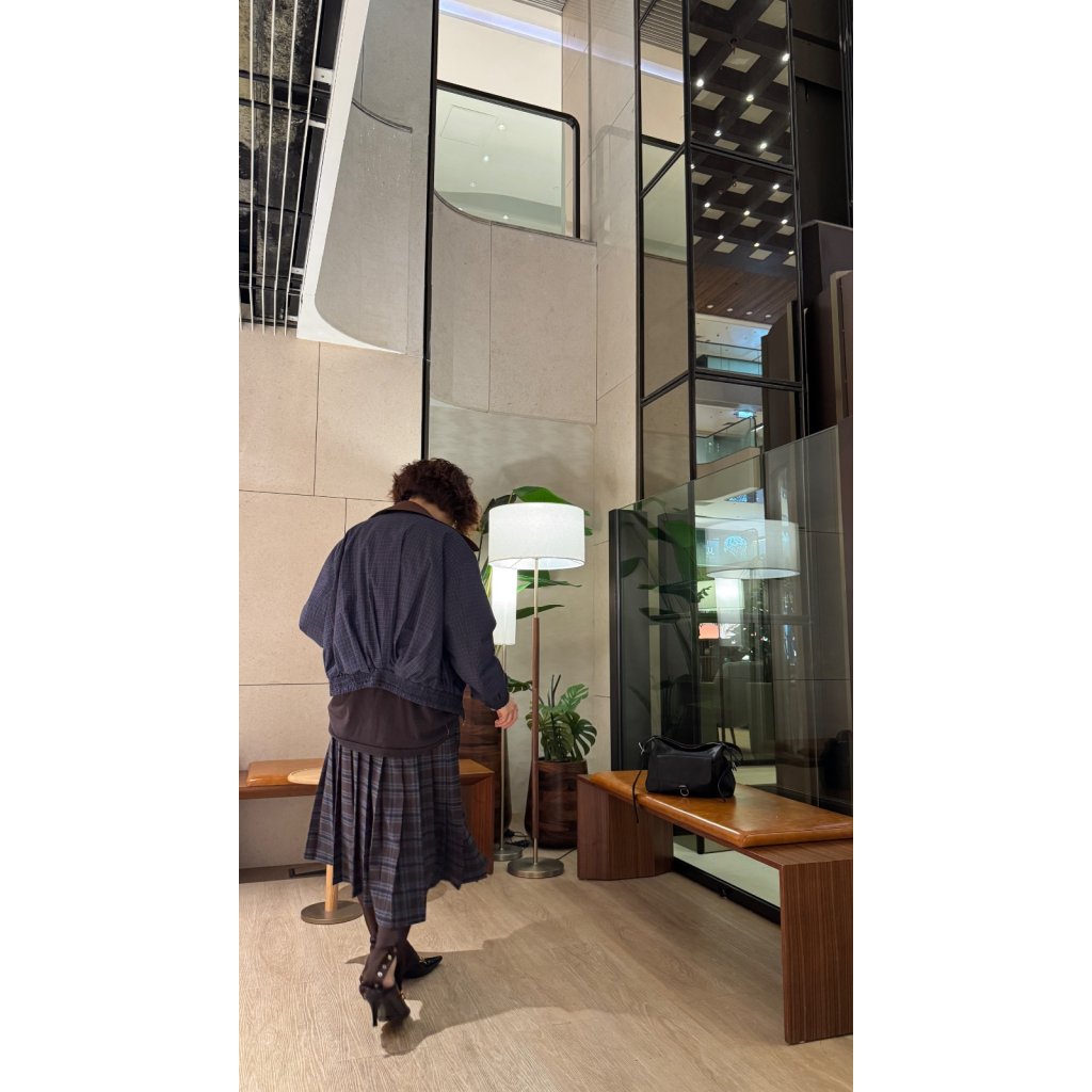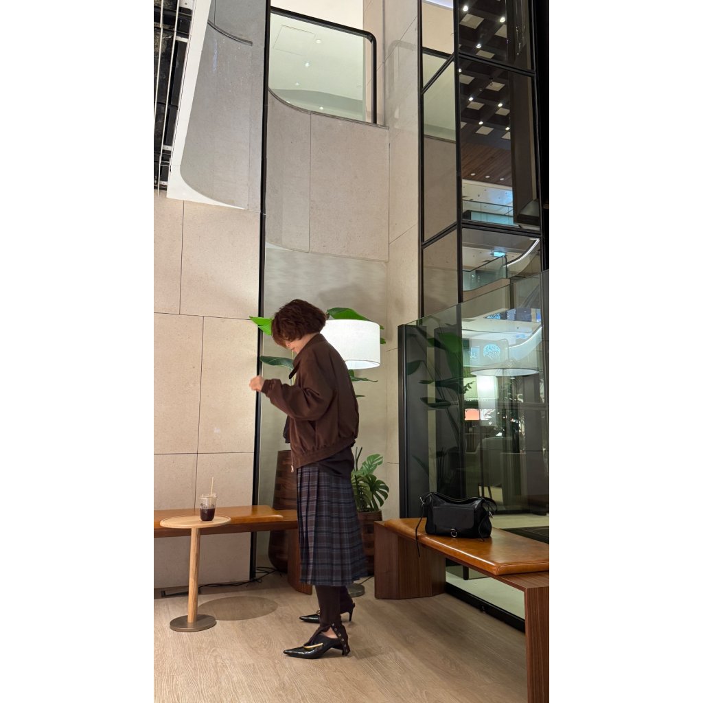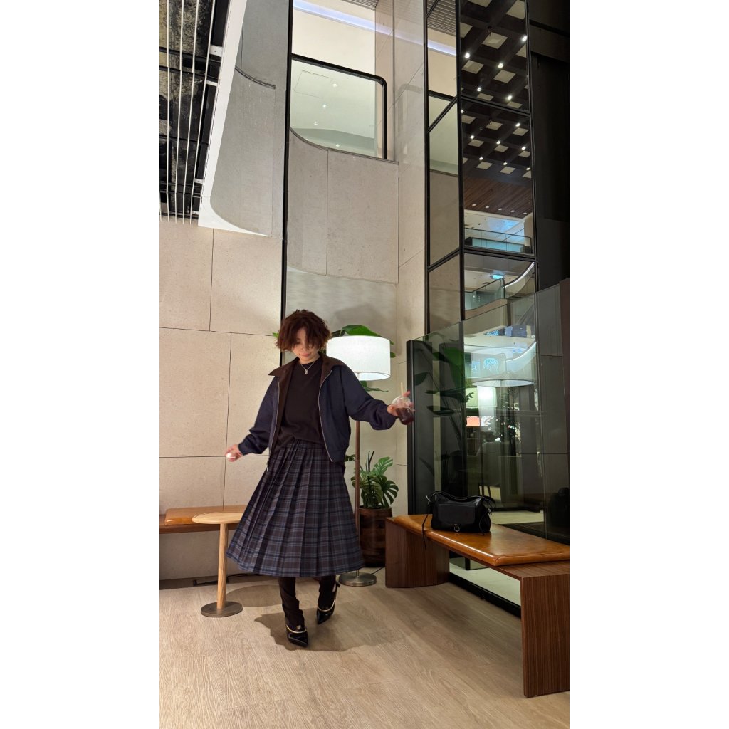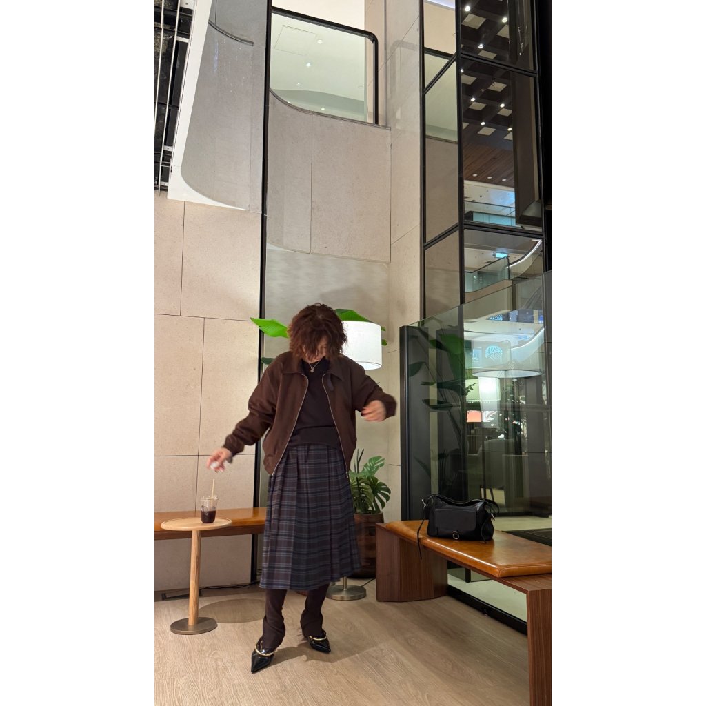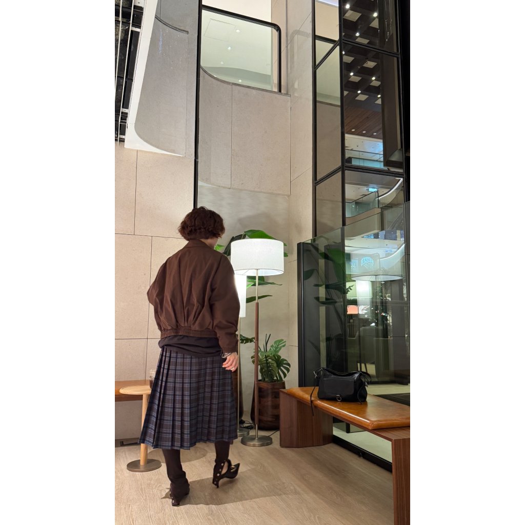 主頁 純棉啡色拼藍啡格仔雙面著短版外套