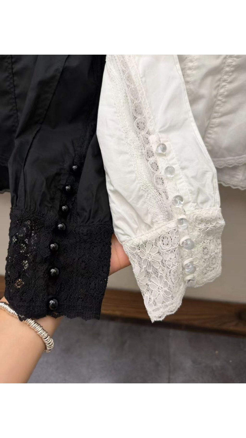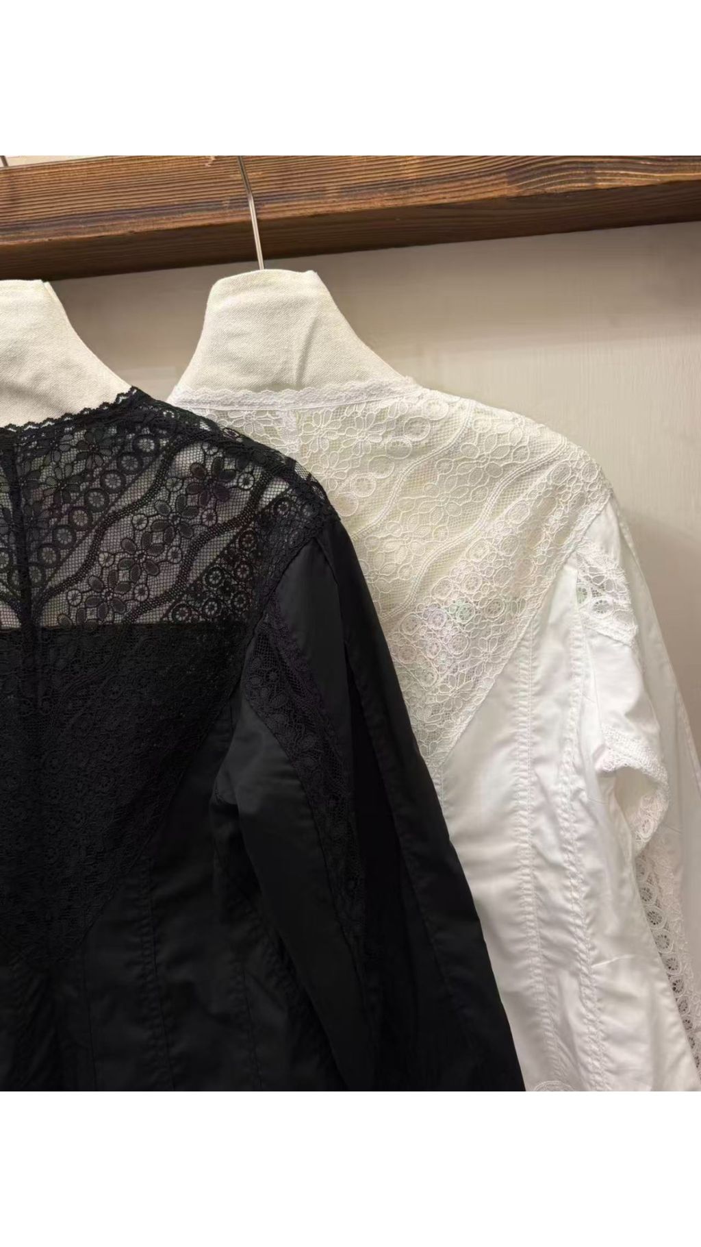 • 蕾絲滾邊細節:衣擺、領口與袖口均做蕾絲滾邊,工藝精緻,提升整體質感,呈現滿滿法式復古風。
