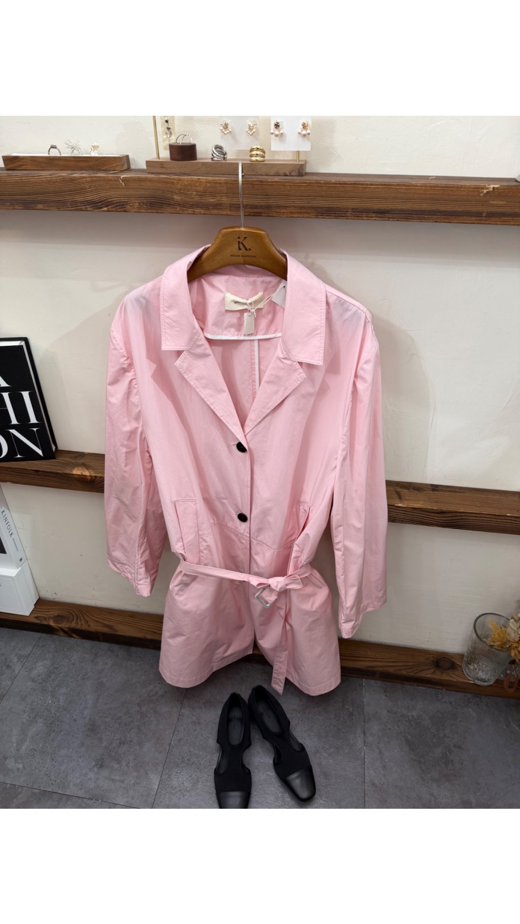 Jc60404008 溫柔顯白翻領繫帶風衣外套