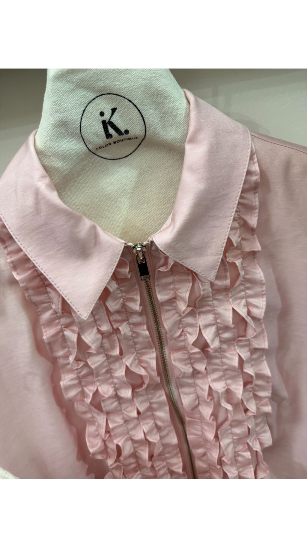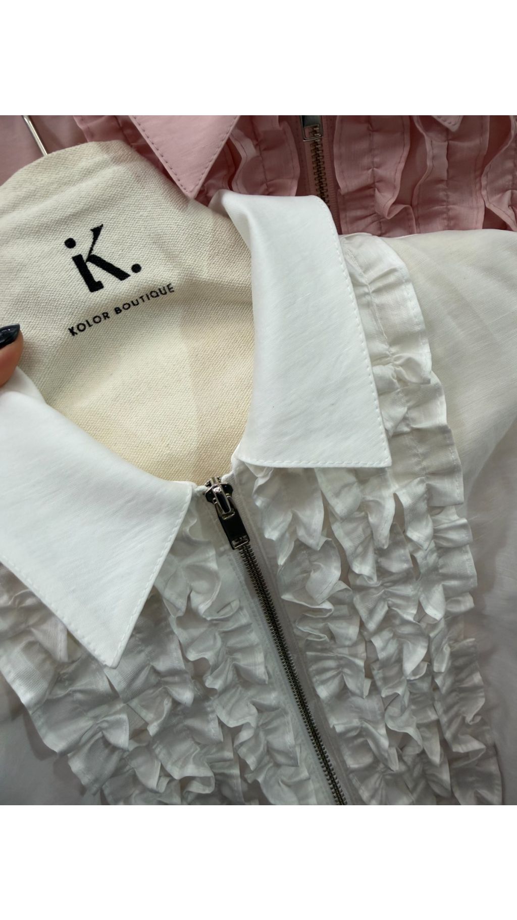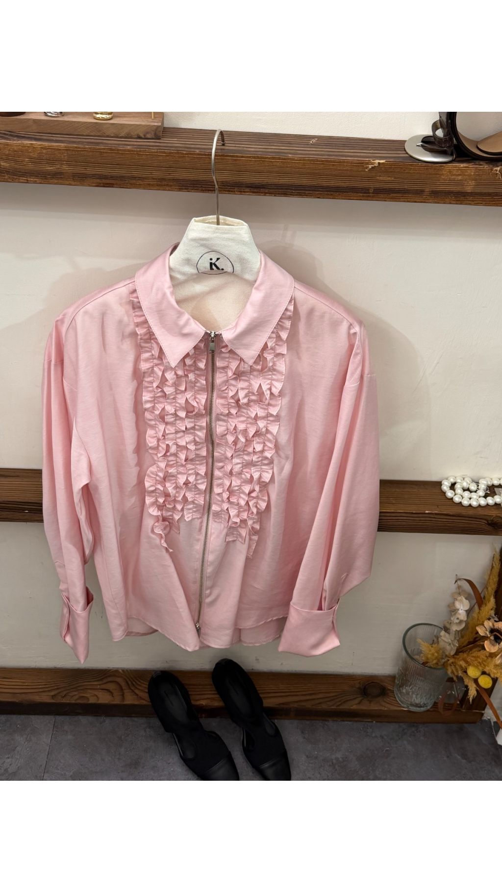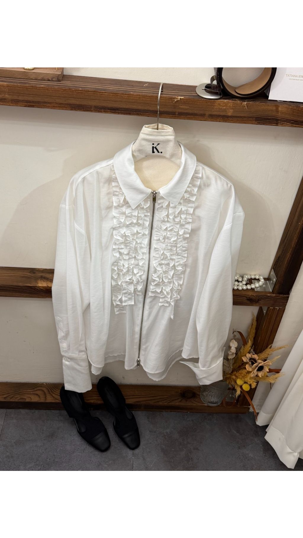 Top60404017 法式浪漫荷葉邊拉鍊翻領長袖襯衫外套