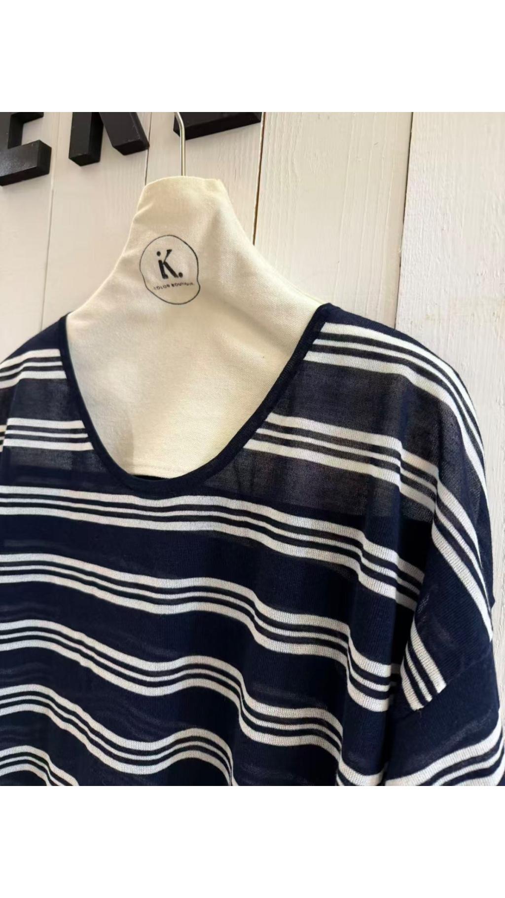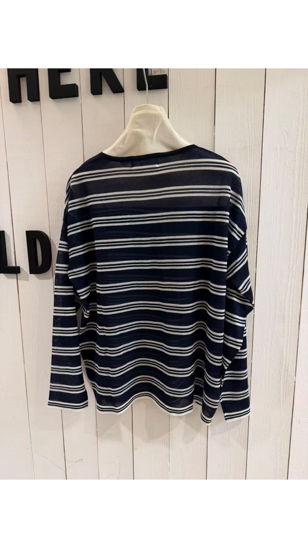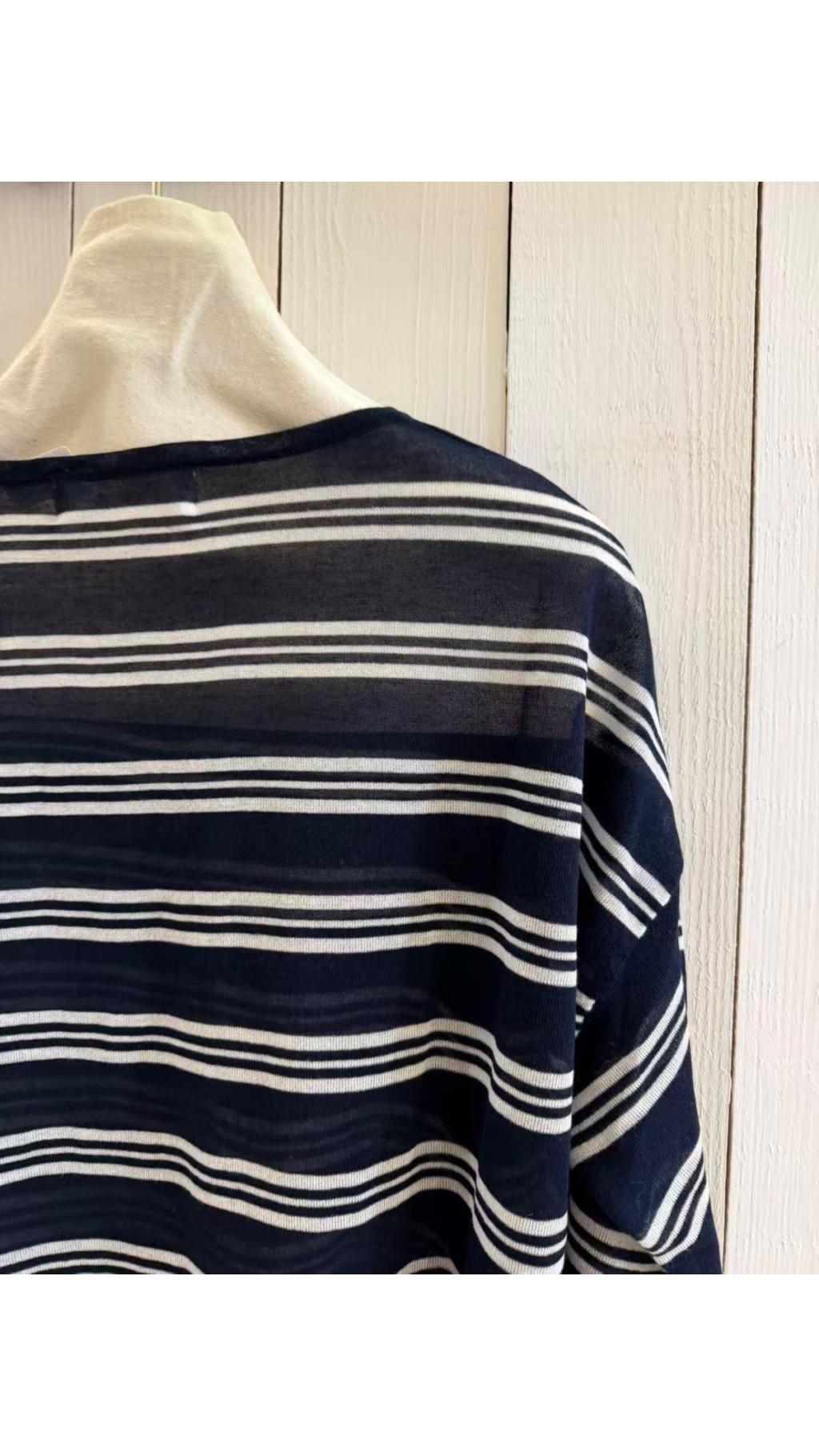 經典橫條紋設計:藏青 + 米白撞色條紋,經典耐看,打破基礎款的單調,打造滿滿海風與復古感,視覺層次豐富。