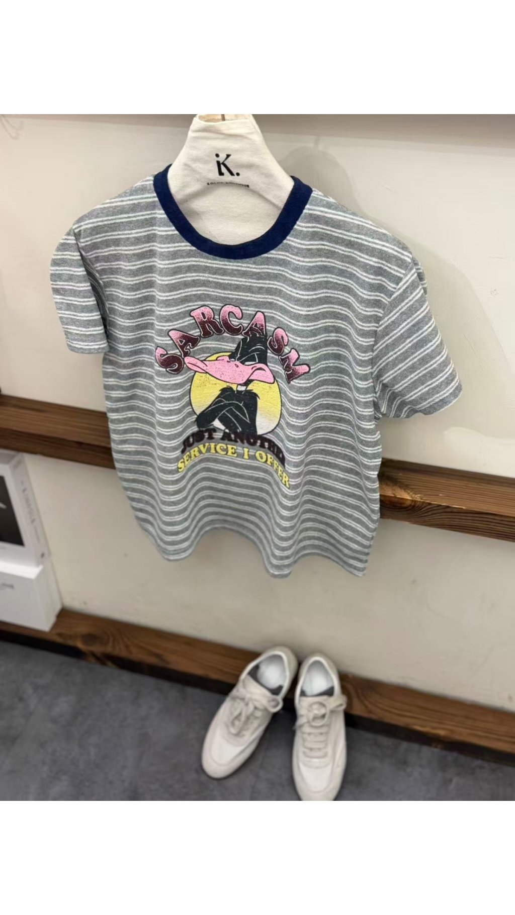 卡通印花圖案:衣身飾有復古卡通人物印花,搭配英文字樣,個性吸睛,減齡效果拉滿,適合熱愛休閾風格的姐妹。