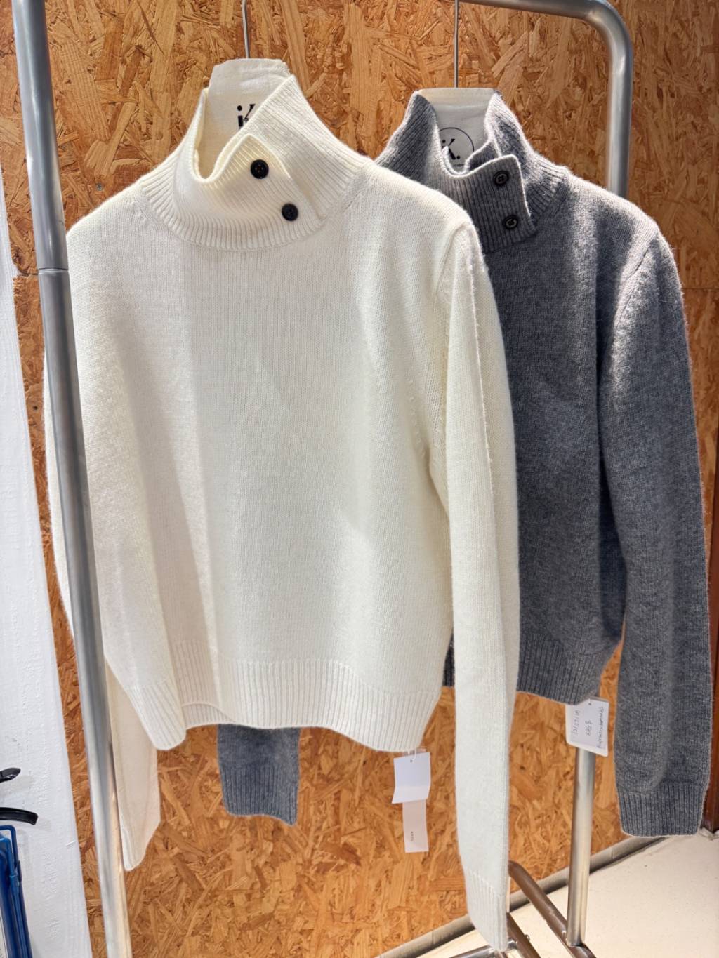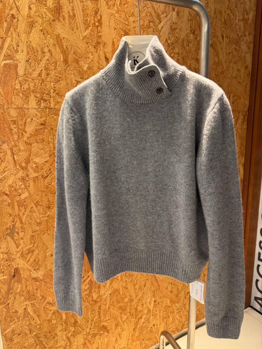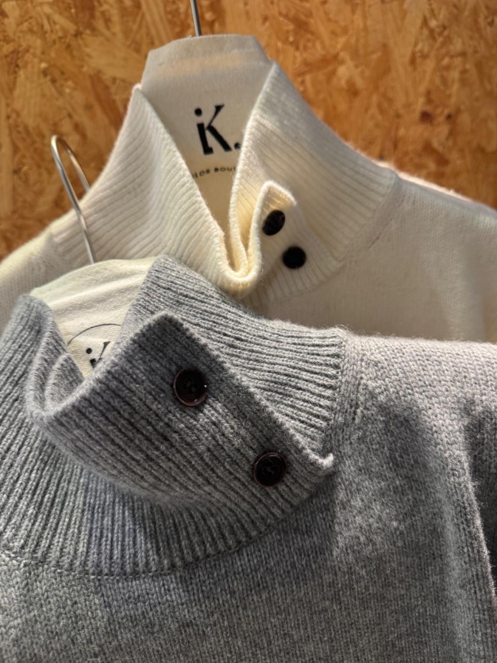 KN015-LAM 寬鬆高領鈕扣設計柔軟綿羊毛針織衫