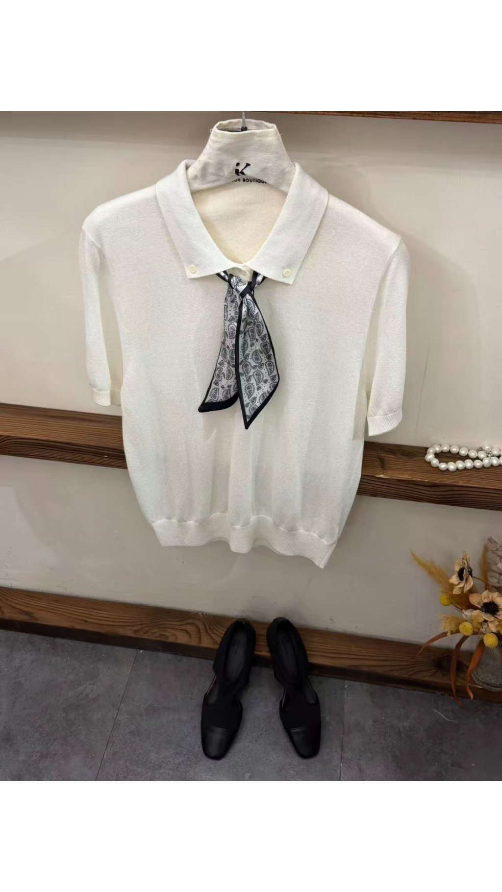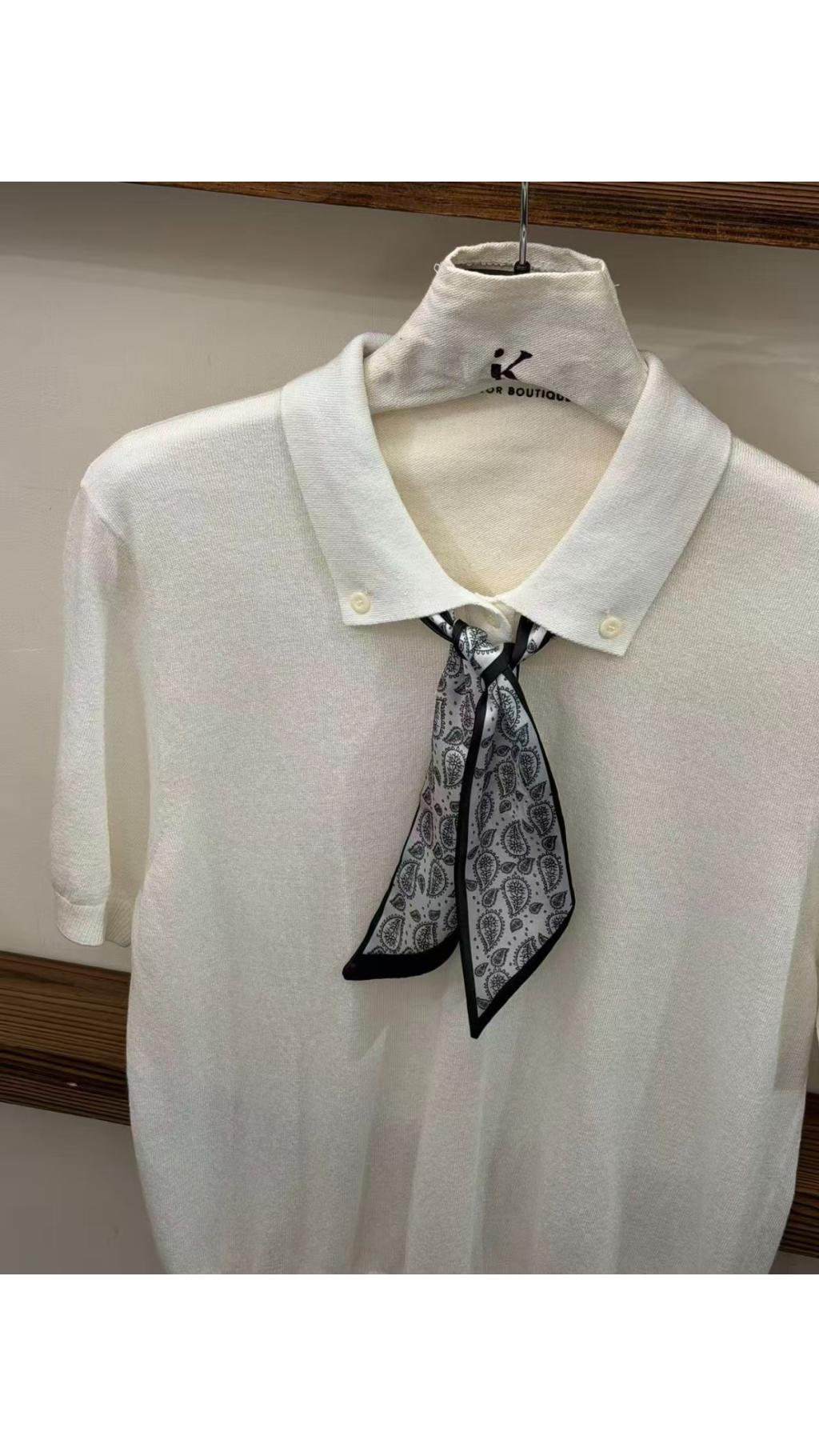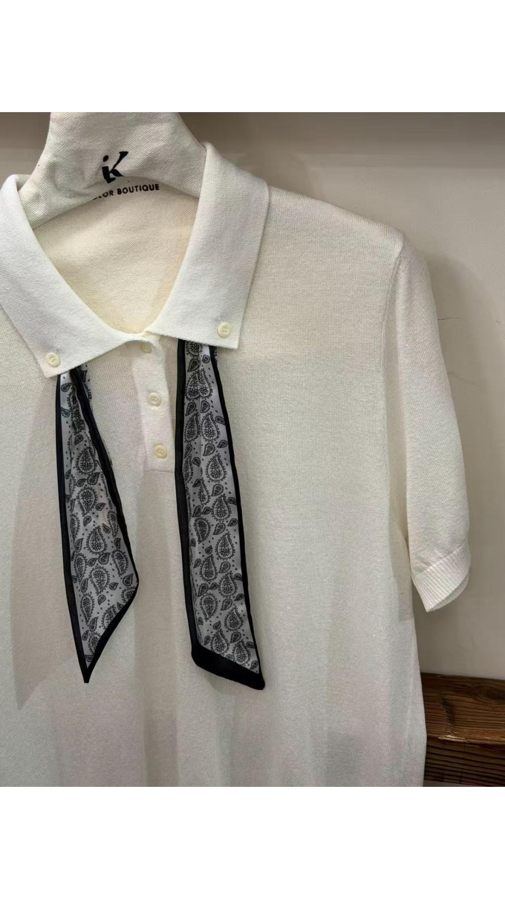 Kn60406011 法式優雅飄帶 Polo 領針織衫