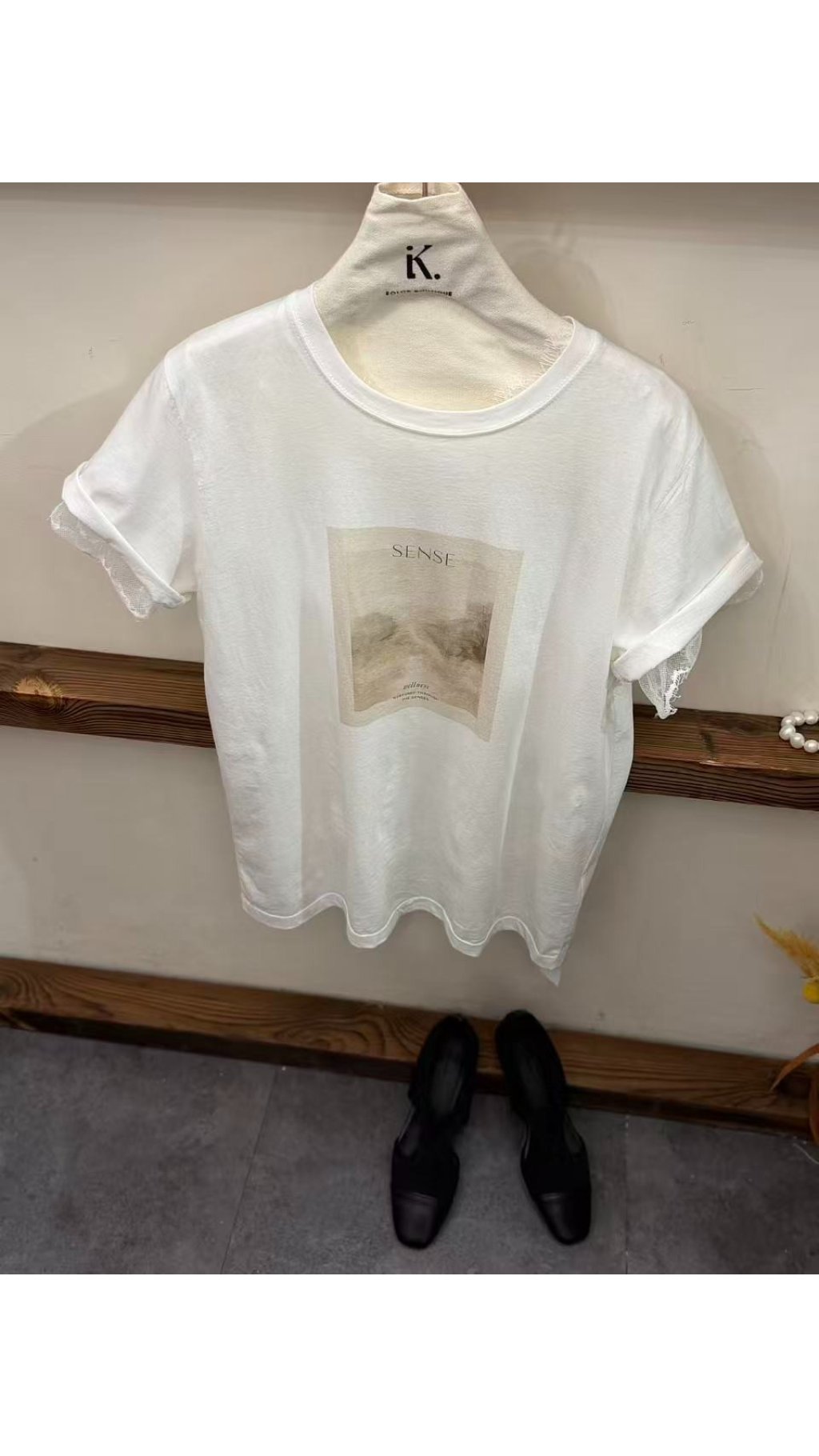 - 藝術風景印花:衣身飾有復古風景畫印花,搭配「SENSE」英文字樣,質感細膩,打破基礎款的單調,打造滿滿文藝氛圍與設計感。