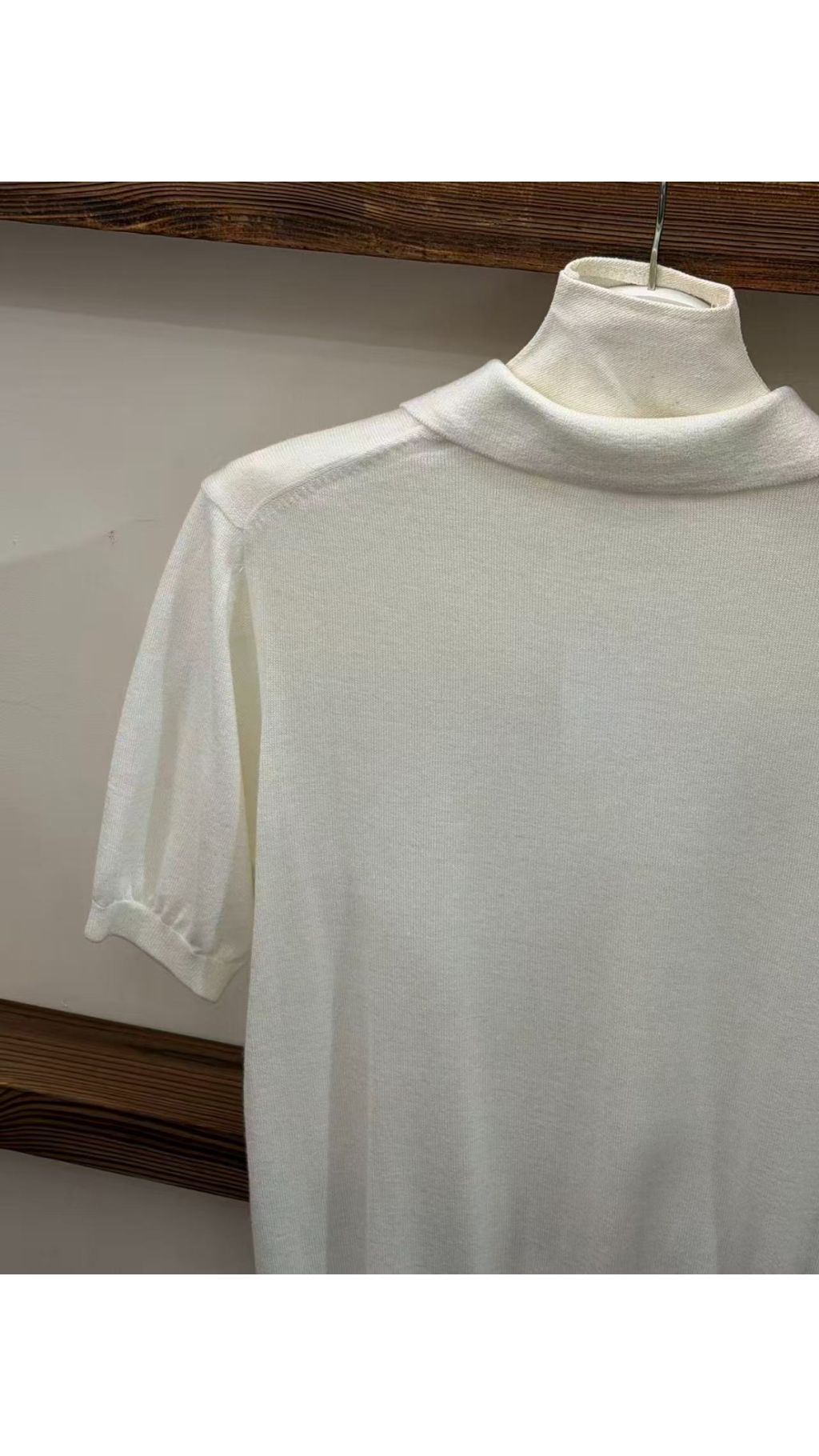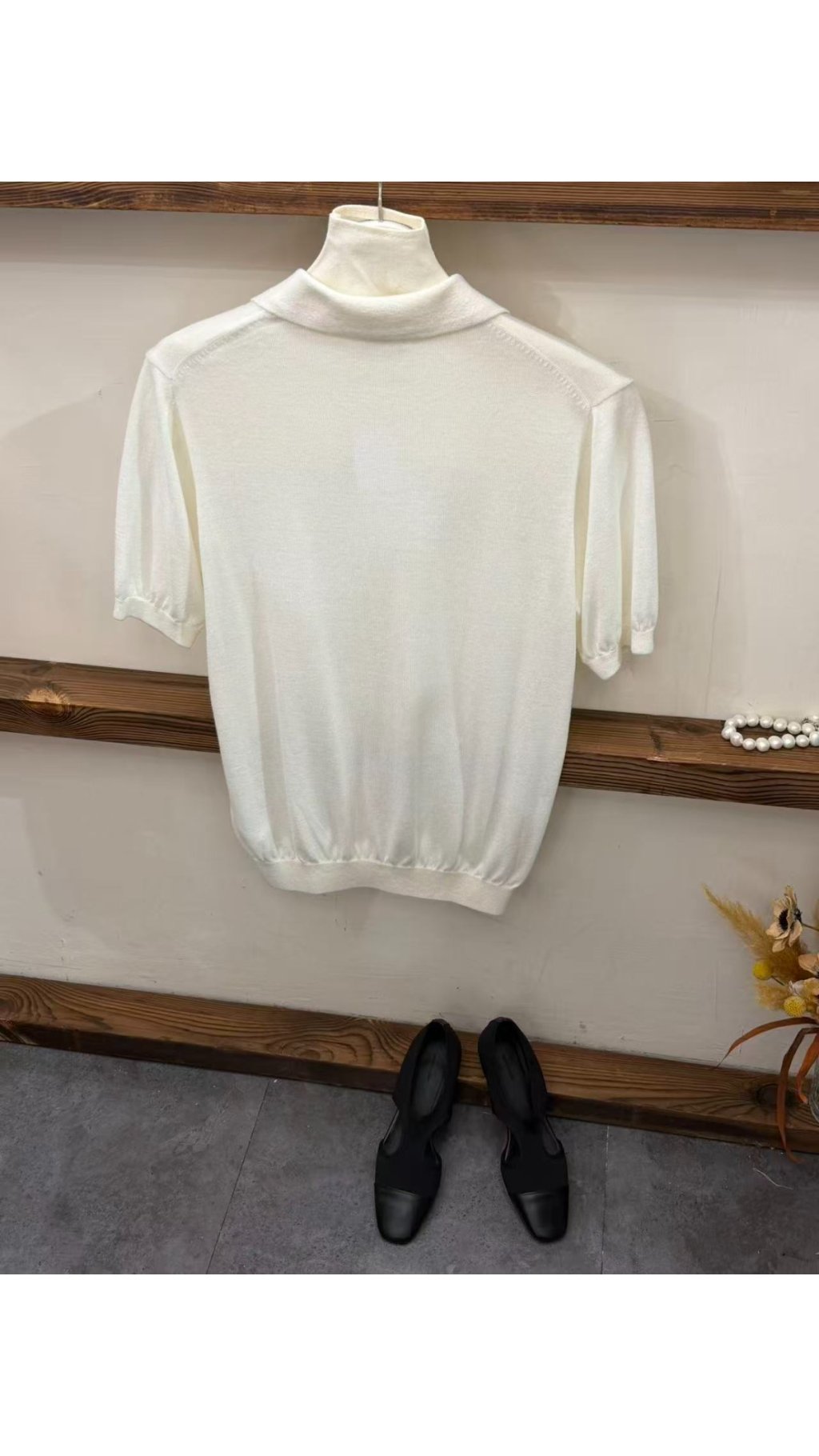 Kn60406019 簡約高級感白色 Polo 領針織衫