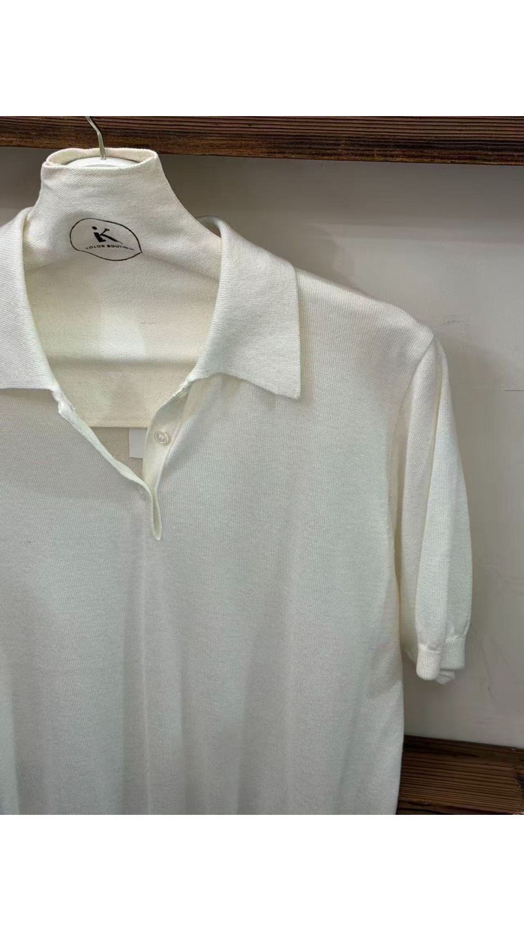 - Polo 領 + 半開襟設計:經典 Polo 翻領搭配單顆紐扣半開襟,細節感滿滿,修飾頸部線條,拉長臉部比例,打造學院風與通勤風兼具的造型。