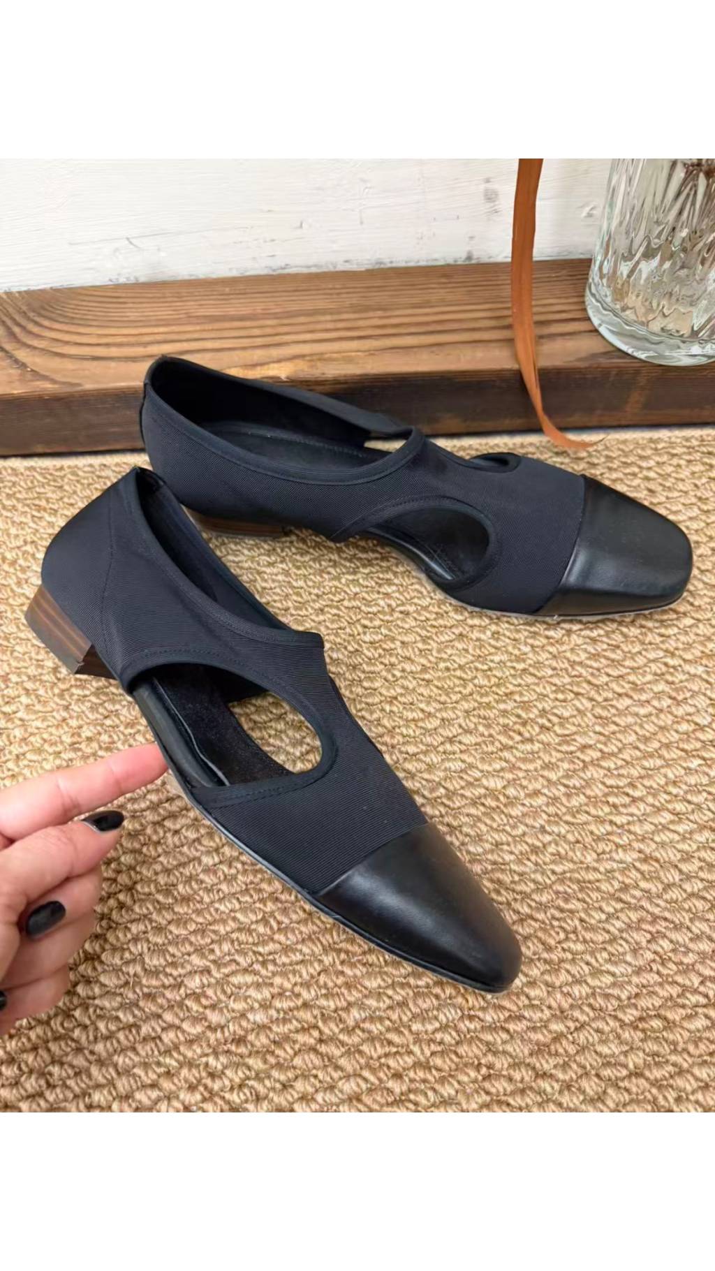 彈力布鏤空設計:鞋身採用彈力布 + 鏤空剪裁,透氣性佳,同時緊貼腳面不滑落,修飾腳型更顯修長,兼具設計感與舒適度。