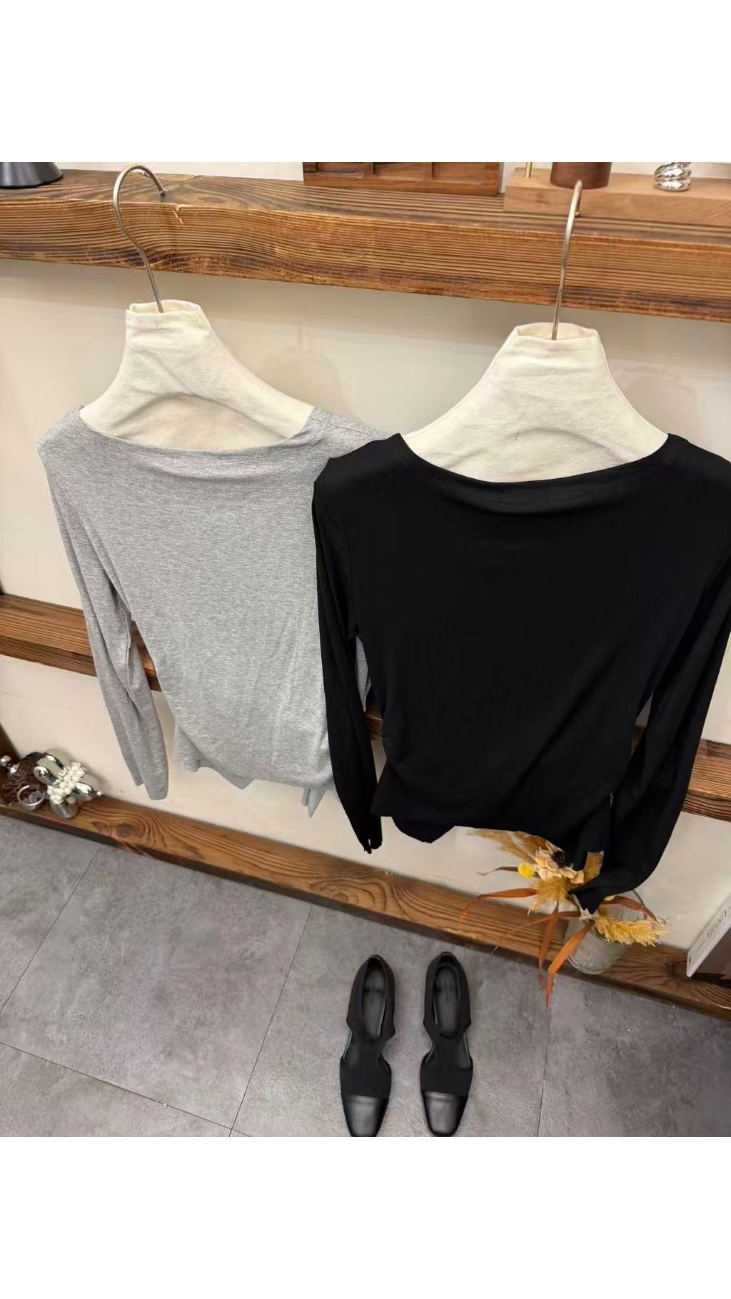 斜領露肩設計:大氣斜領剪裁,修飾肩頸線條,露出鎖骨更顯性感,打造法式優雅風,同時可自由調整穿法,單穿、疊穿皆可。
