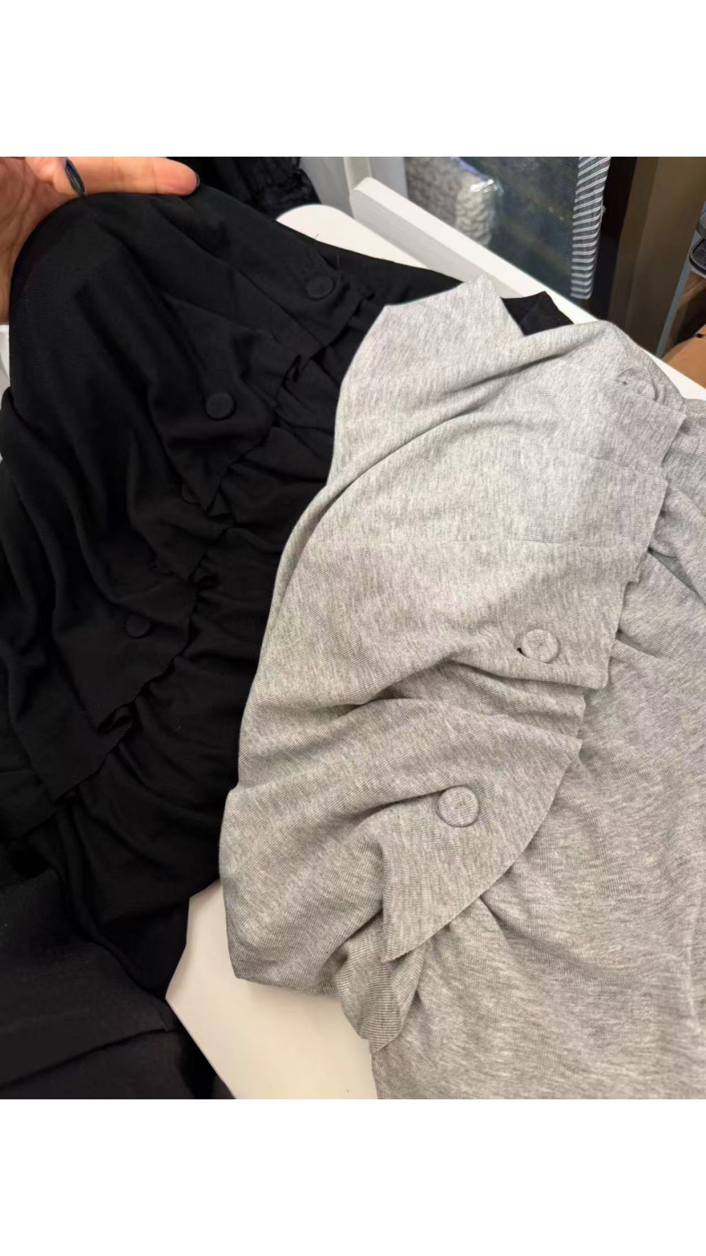 雙向抽褶工藝:前襟雙向抽褶設計,可自由調節鬆緊,修飾腰腹線條,藏肉顯瘦,同時打造立體層次感,貼合身形不勒肉。