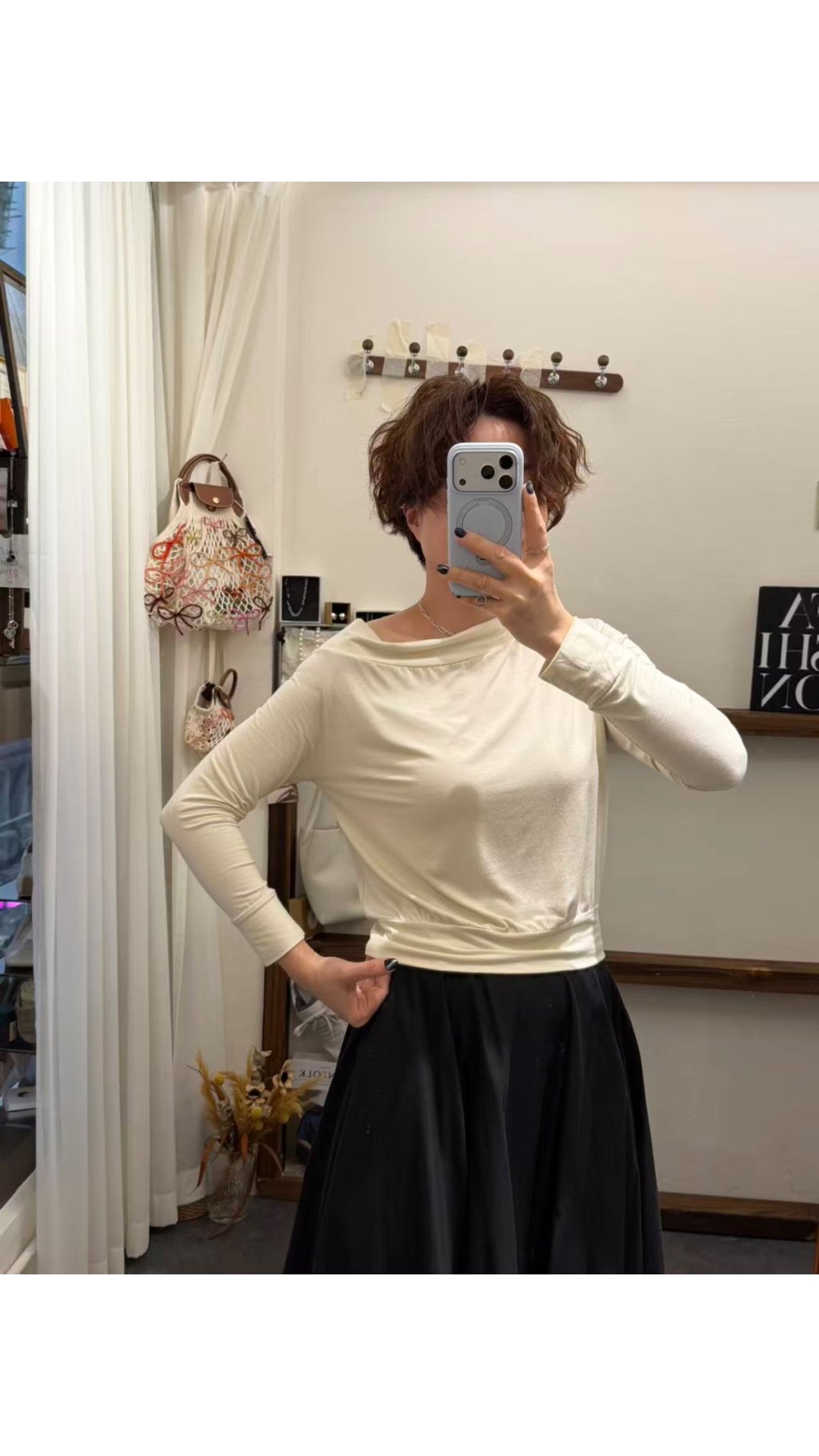 寬松落肩版型:落肩長袖剪裁,修飾肩寬與手臂贅肉,藏肉顯瘦,穿著舒適自在,對各種身形都超友好。