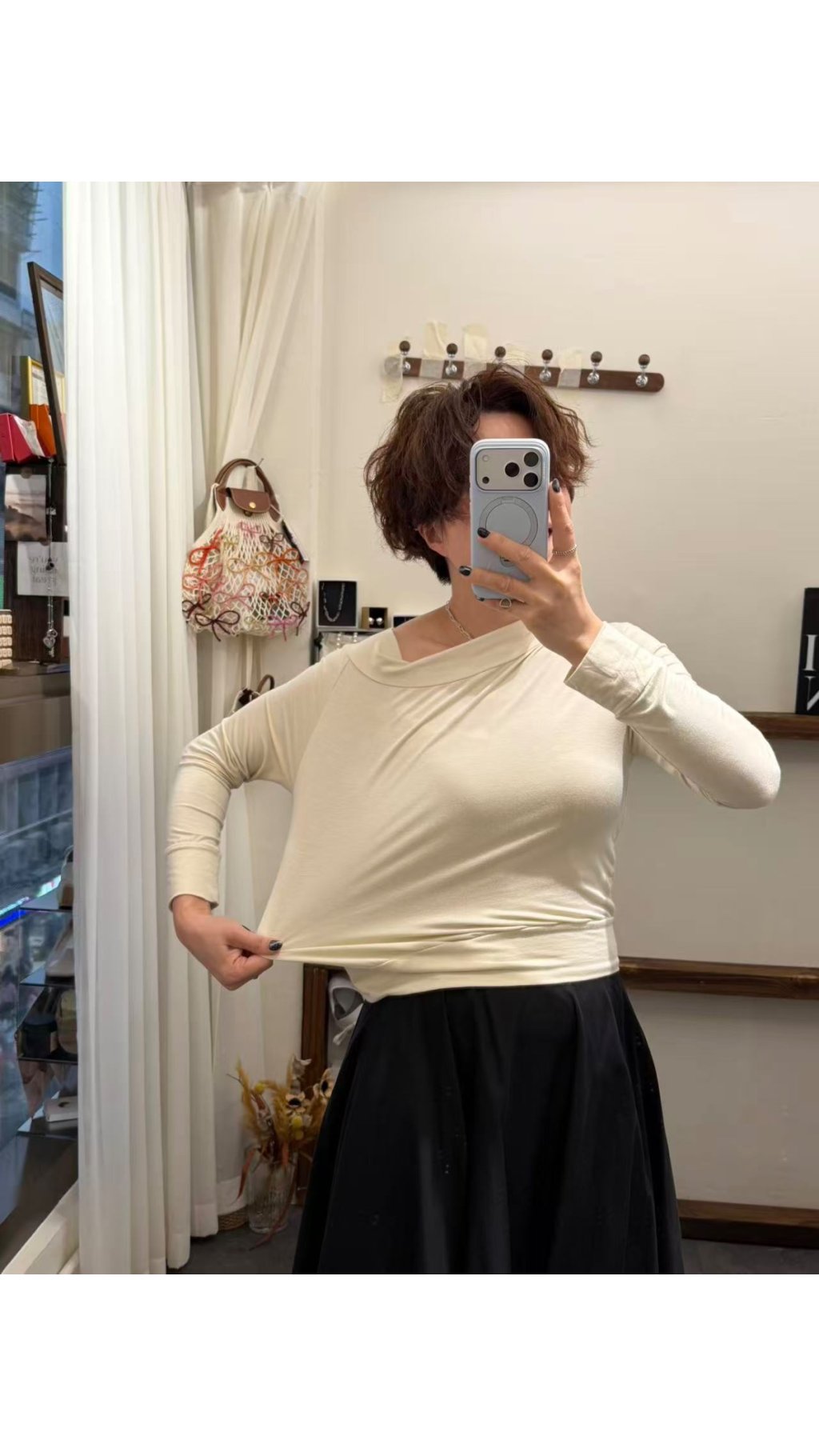 疊穿層次風:作為內搭疊穿於大衣、風衣、馬甲中,露出盪領與袖口,營造豐富層次感,提升穿搭精致度。