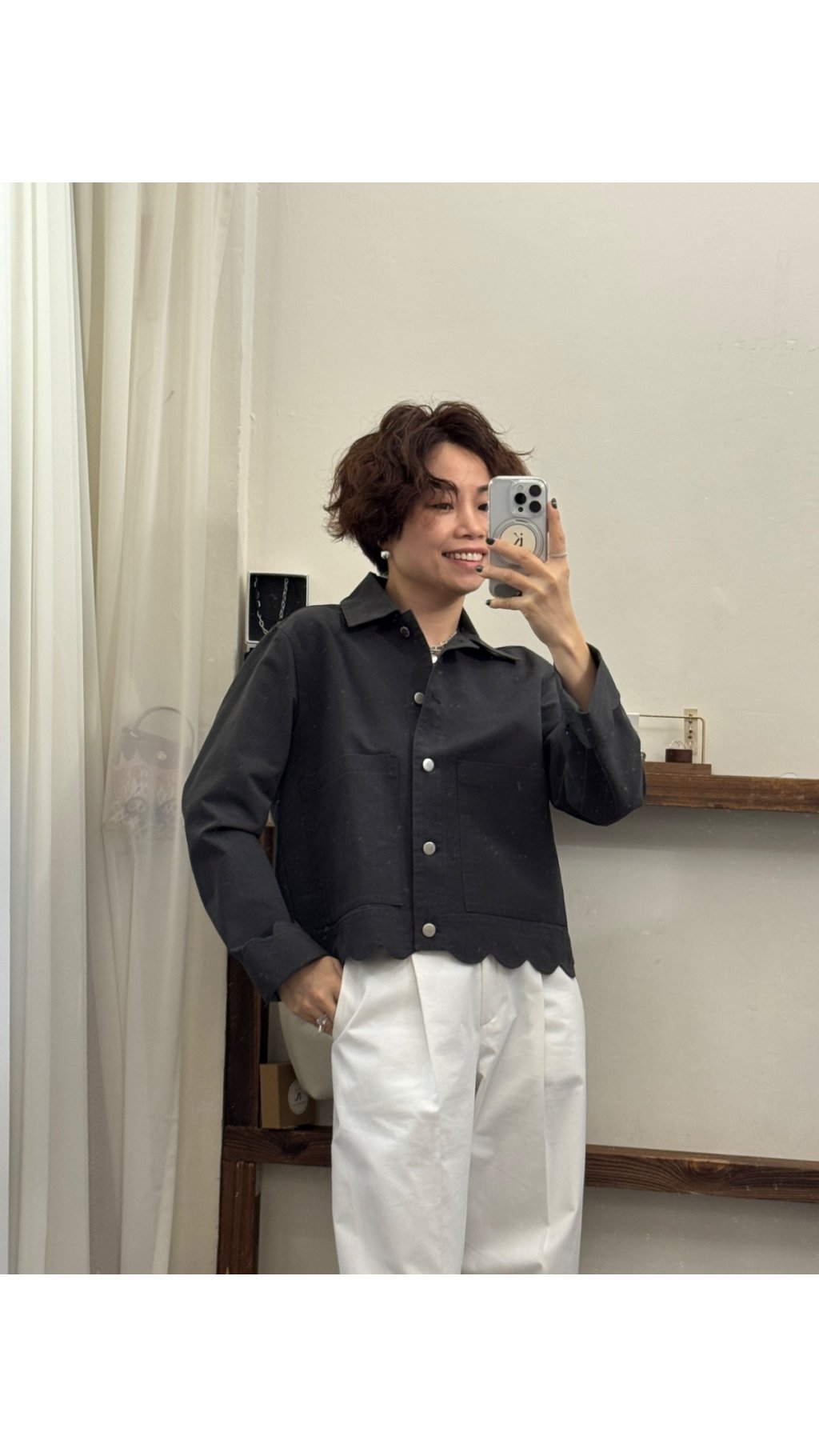• 短款高腰版型:衣長剛好落在腰線位置,視覺上拉高比例,顯高顯瘦,完美搭配高腰褲/裙,打造利落身形。