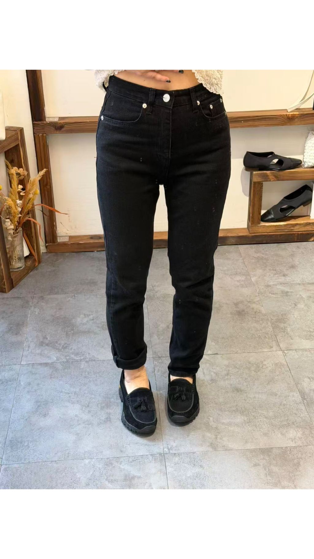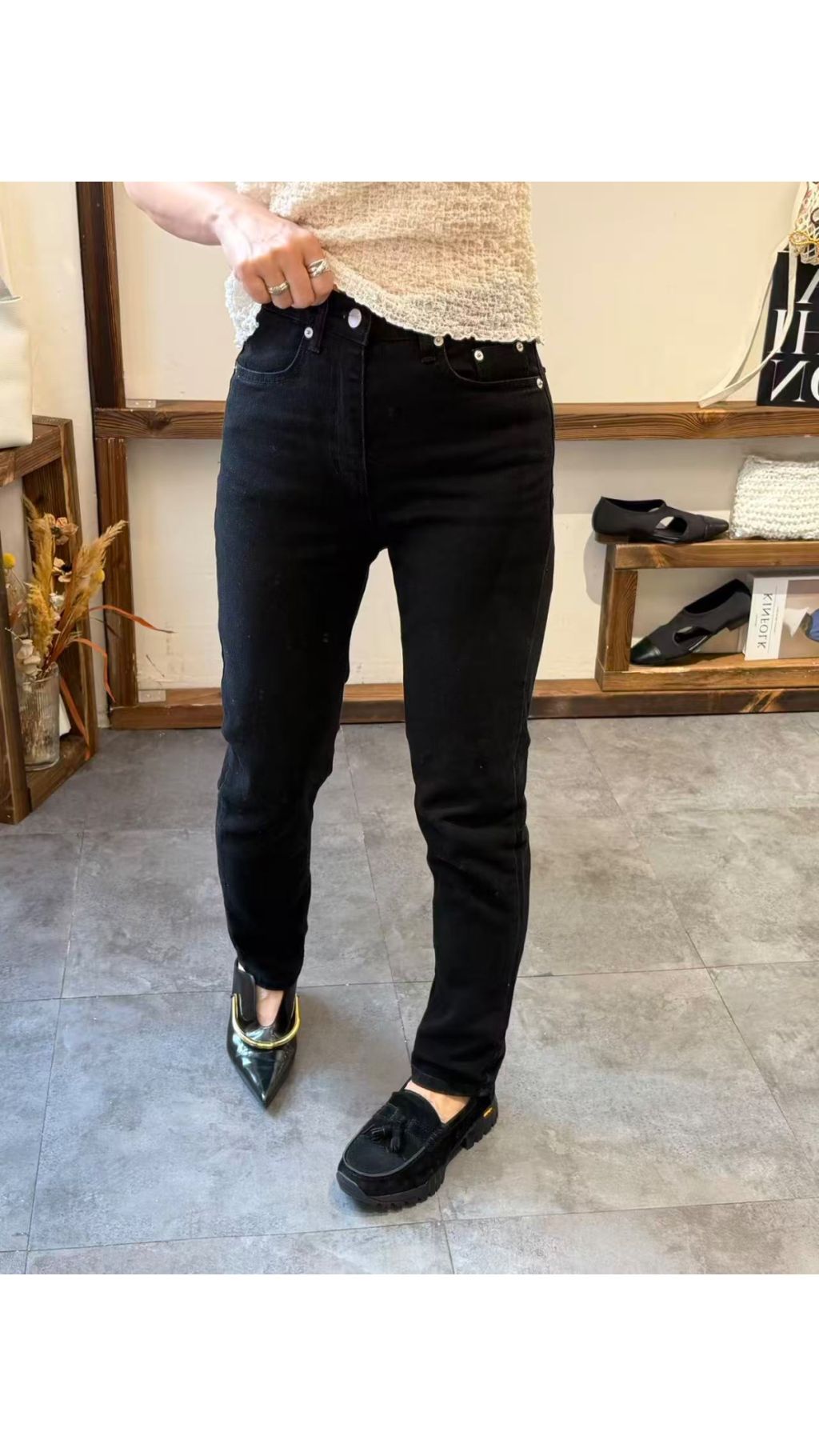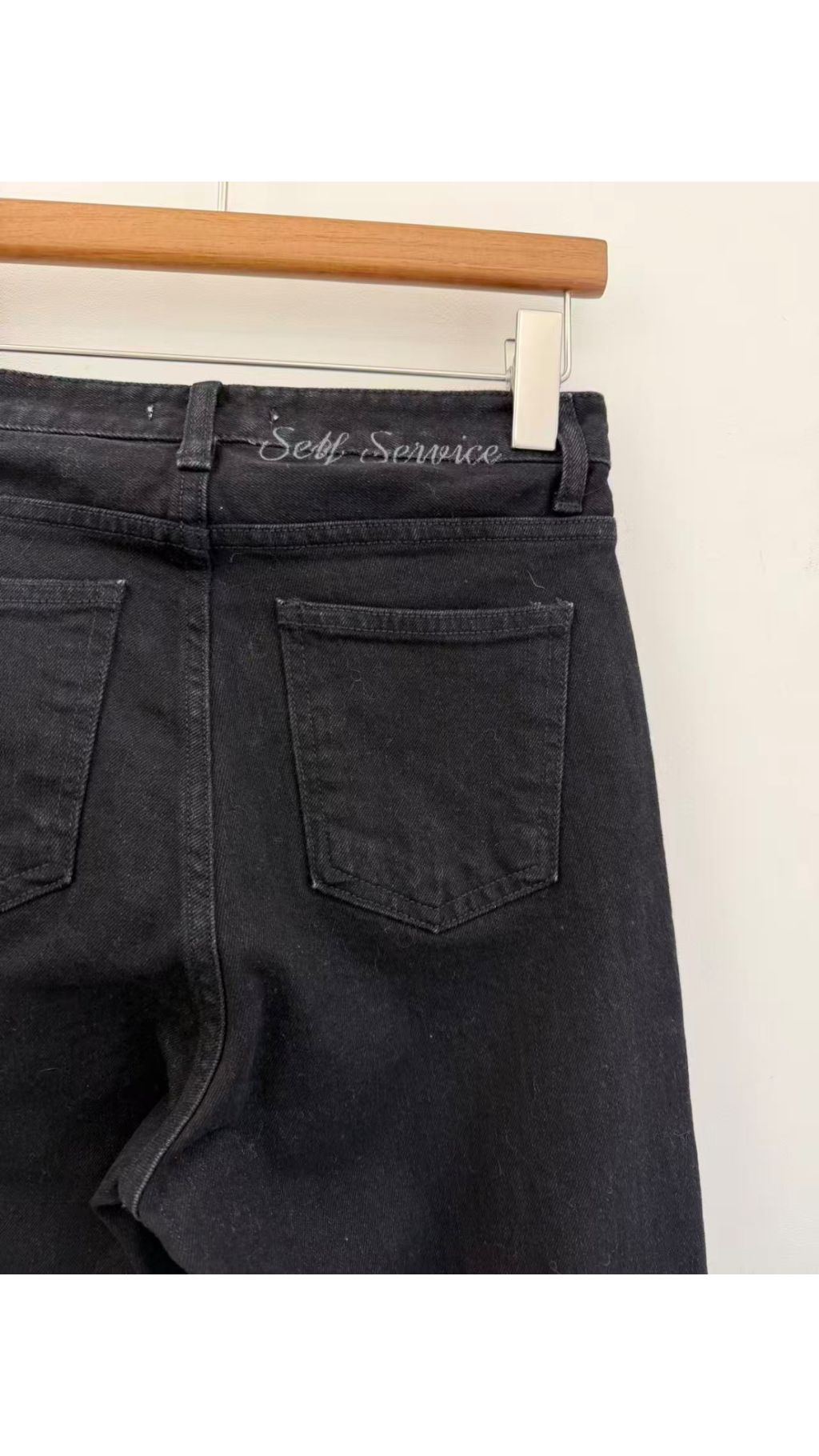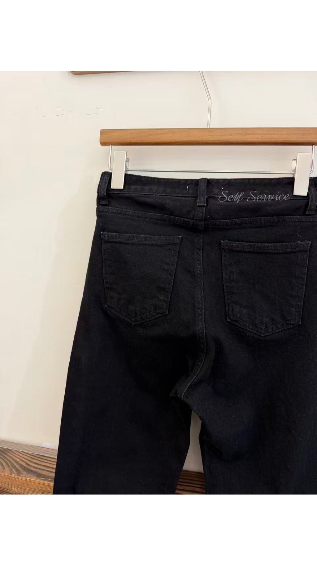 后背字樣印花:後腰隱藏英文印花,低調有質感,細節感拉滿,與基礎款牛仔褲區分開來。