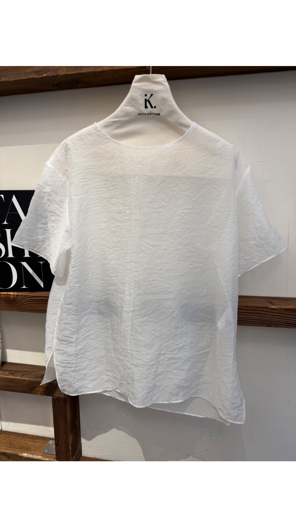 立體皺感肌理面料:獨特壓皺工藝打造自然肌理感,質感獨特,不易起皺,呈現高級慵懶氛圍,與基礎款 T 恤區分開來。