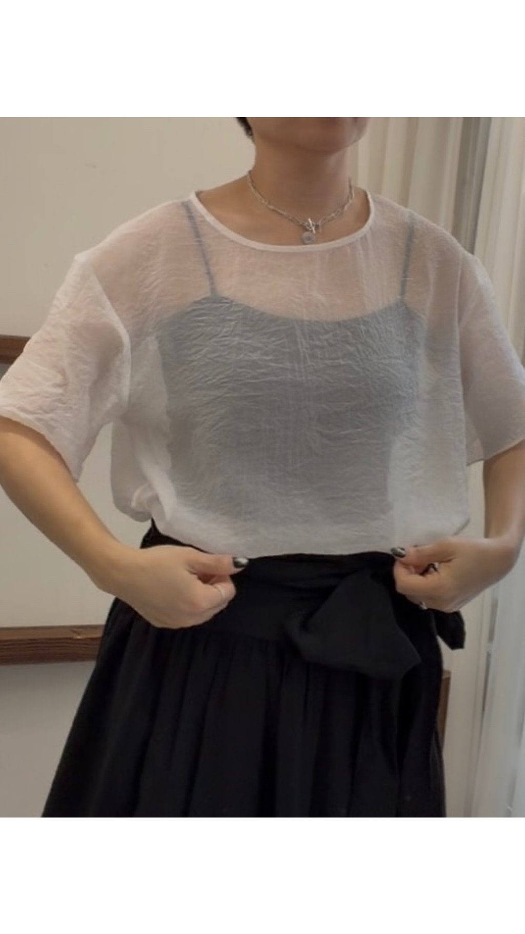 半透輕透材質:半透輕薄面料,兼具防曬與透氣性,可單穿、可疊穿,靈活多變,適合夏季清涼穿搭。