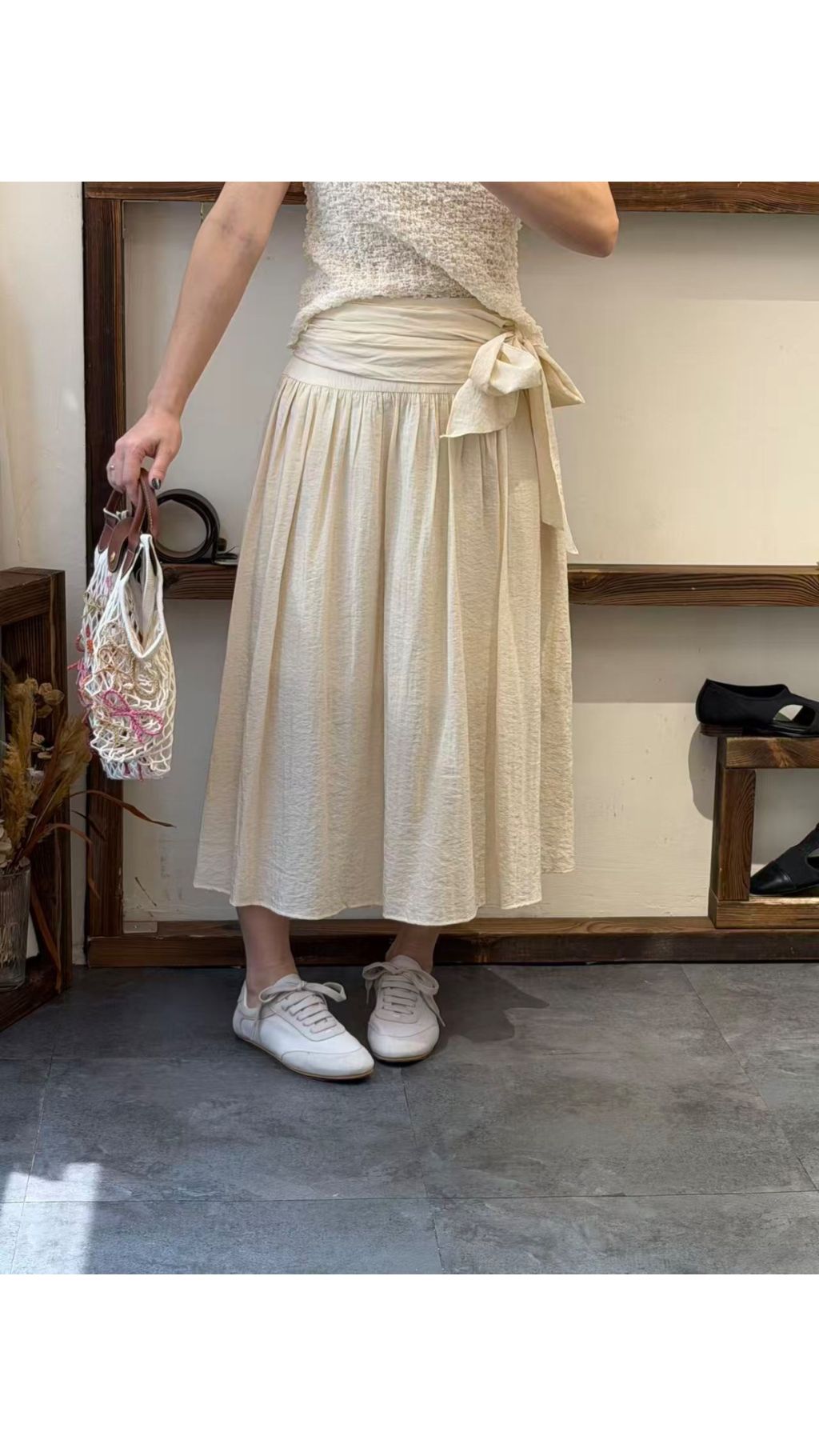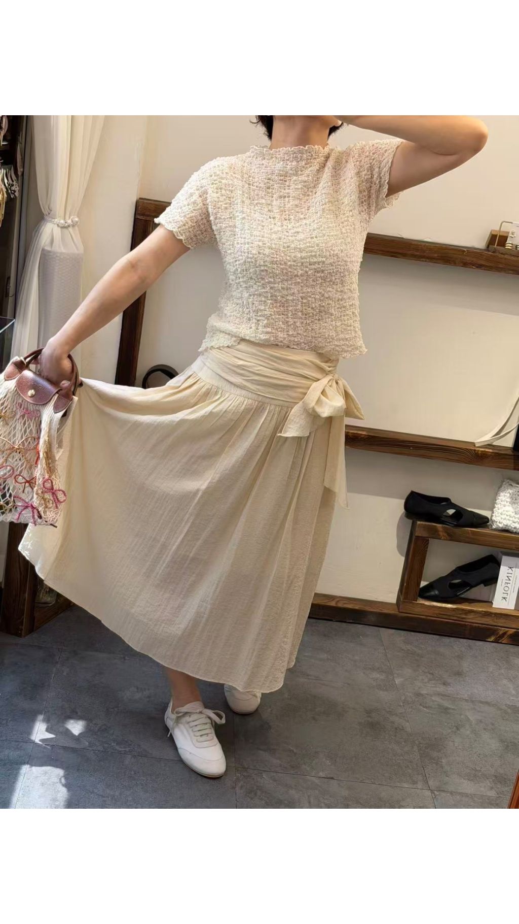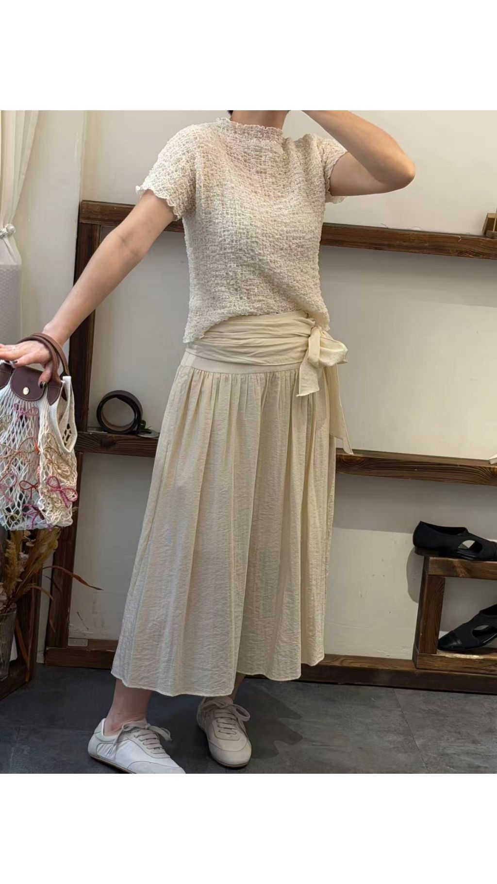 皺感肌理面料:獨特壓皺工藝打造自然肌理感,質感獨特,不易起皺,呈現高級慵懶氛圍,與基礎款半身裙區分開來。