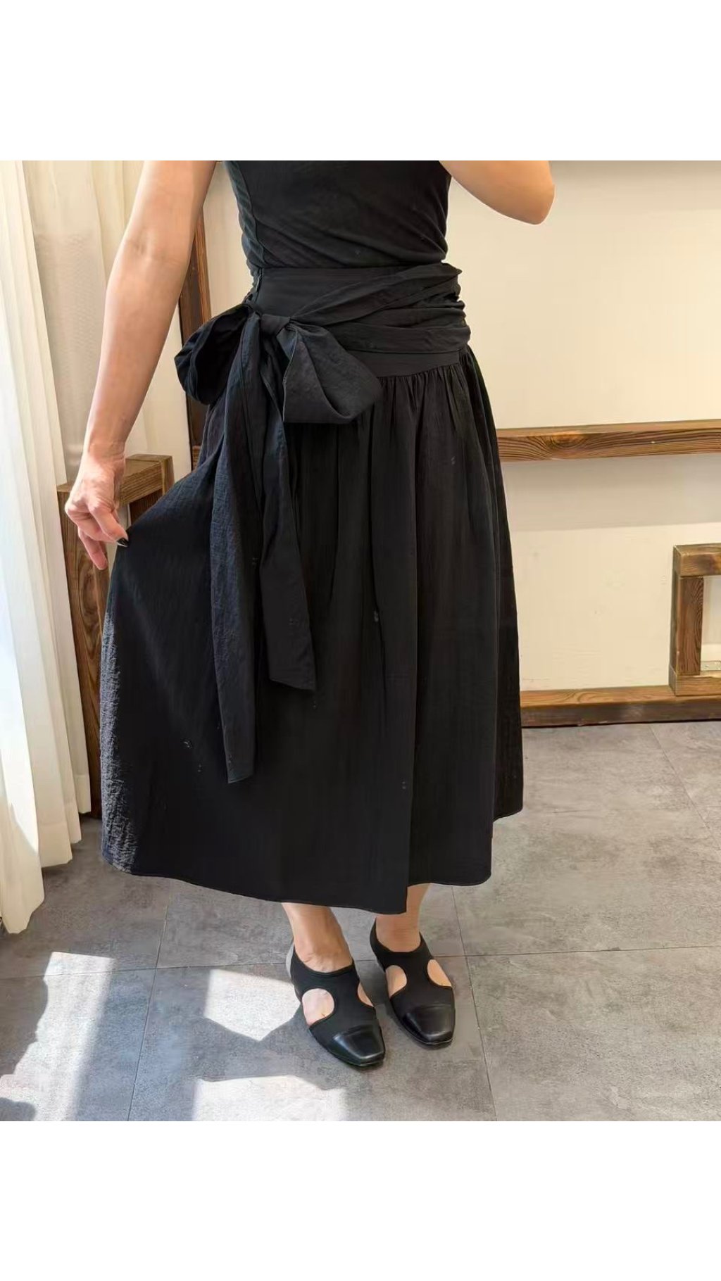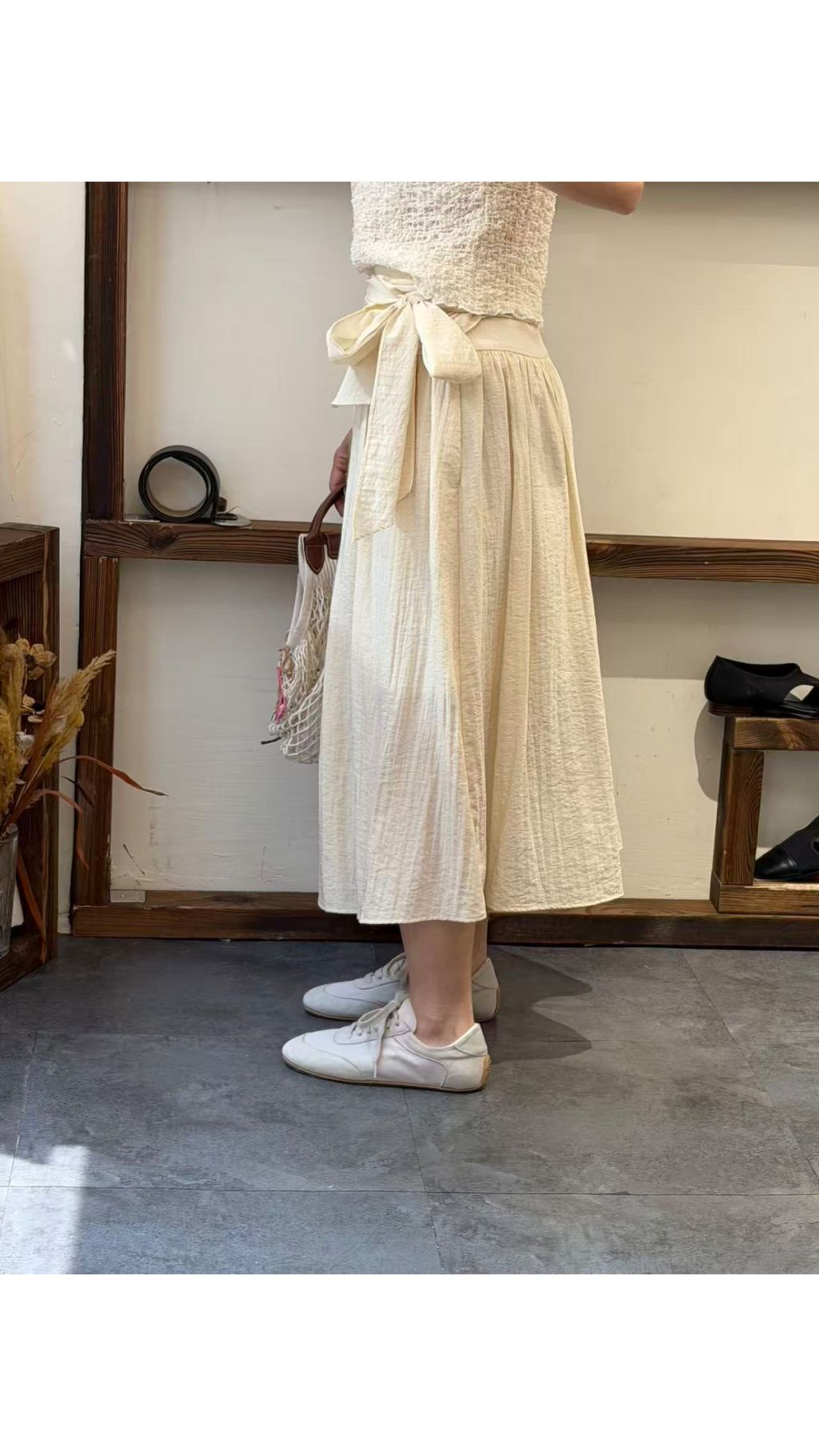 腰封綁帶設計:寬版腰封 + 長飄帶綁帶,可自由調節鬆緊,拉高腰線,顯高顯瘦,同時打造立體蝴蝶結造型,增添浪漫氛圍,細節感拉滿。