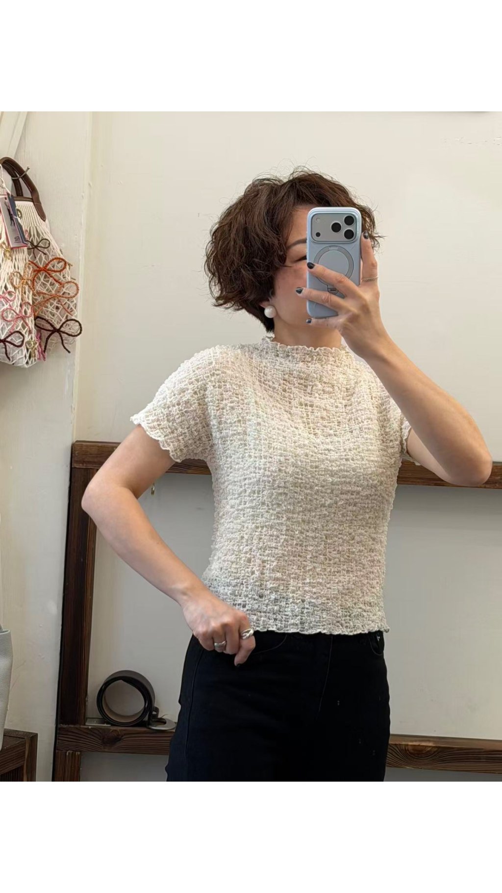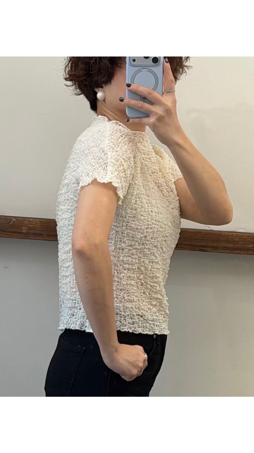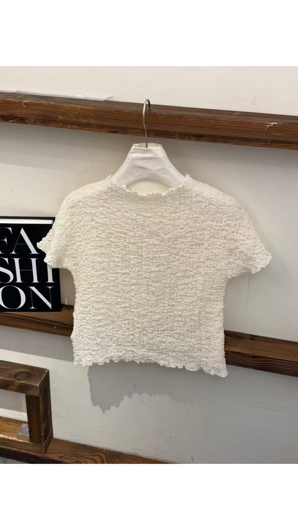 Top60416008 立體皺感木耳邊短袖 T 恤
