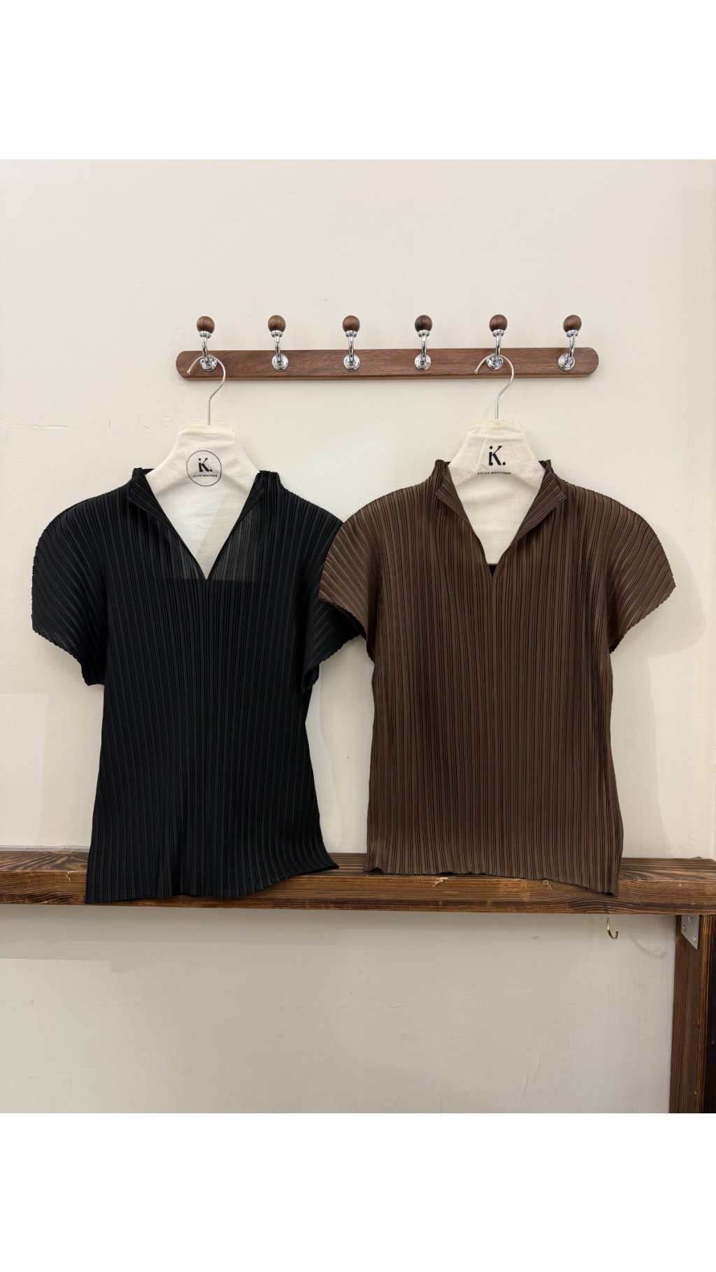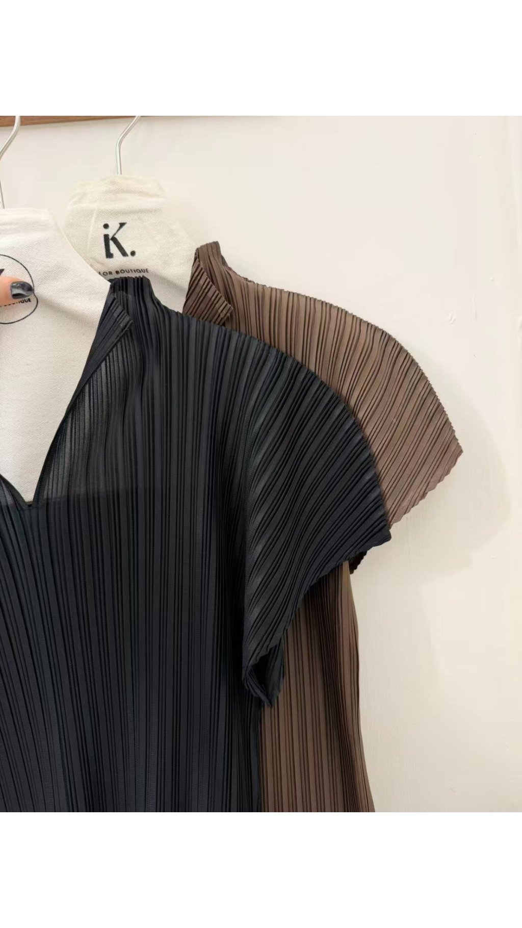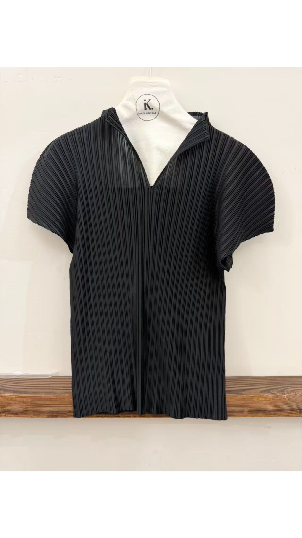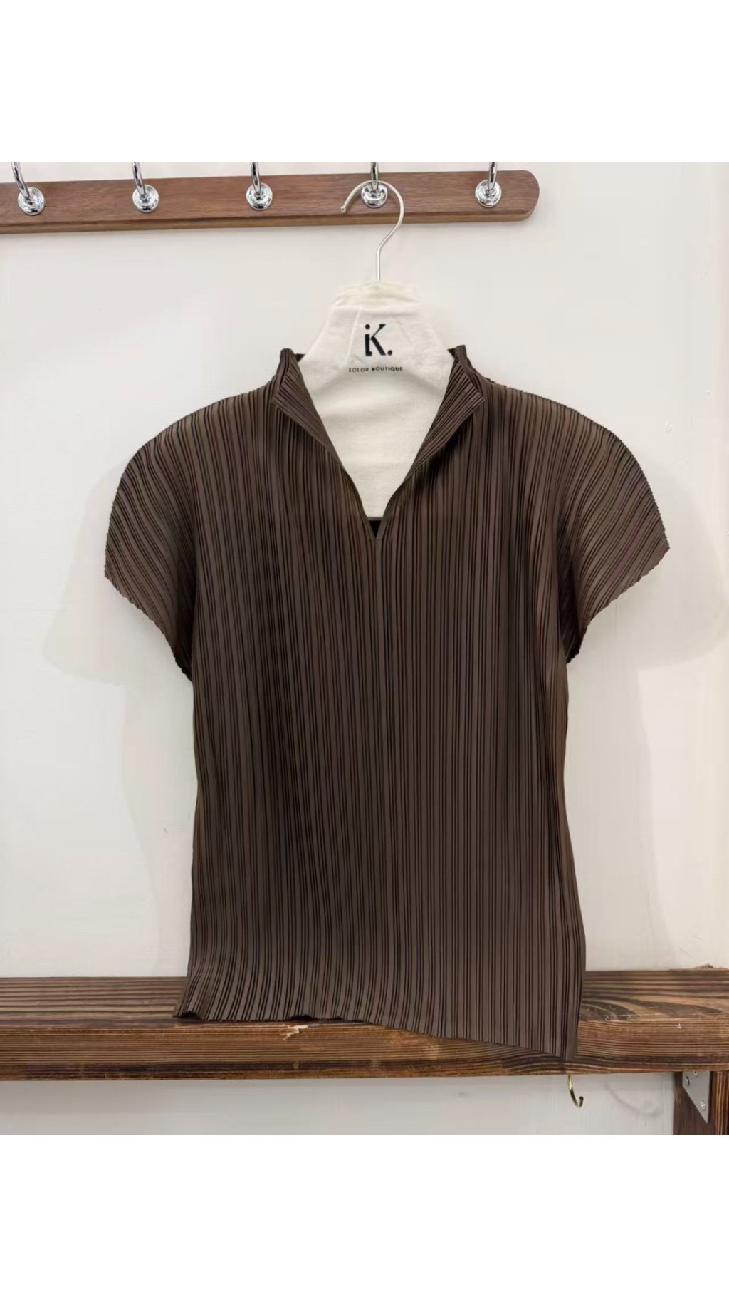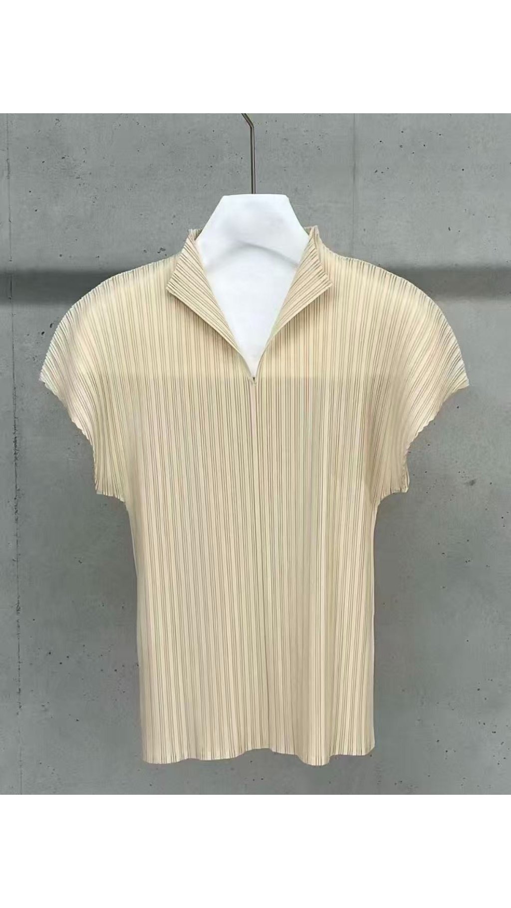 TOP60417005 高級立體豎紋壓皴 V 領小立領上衣