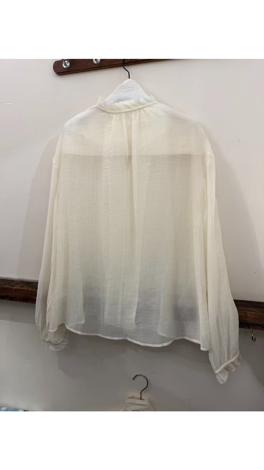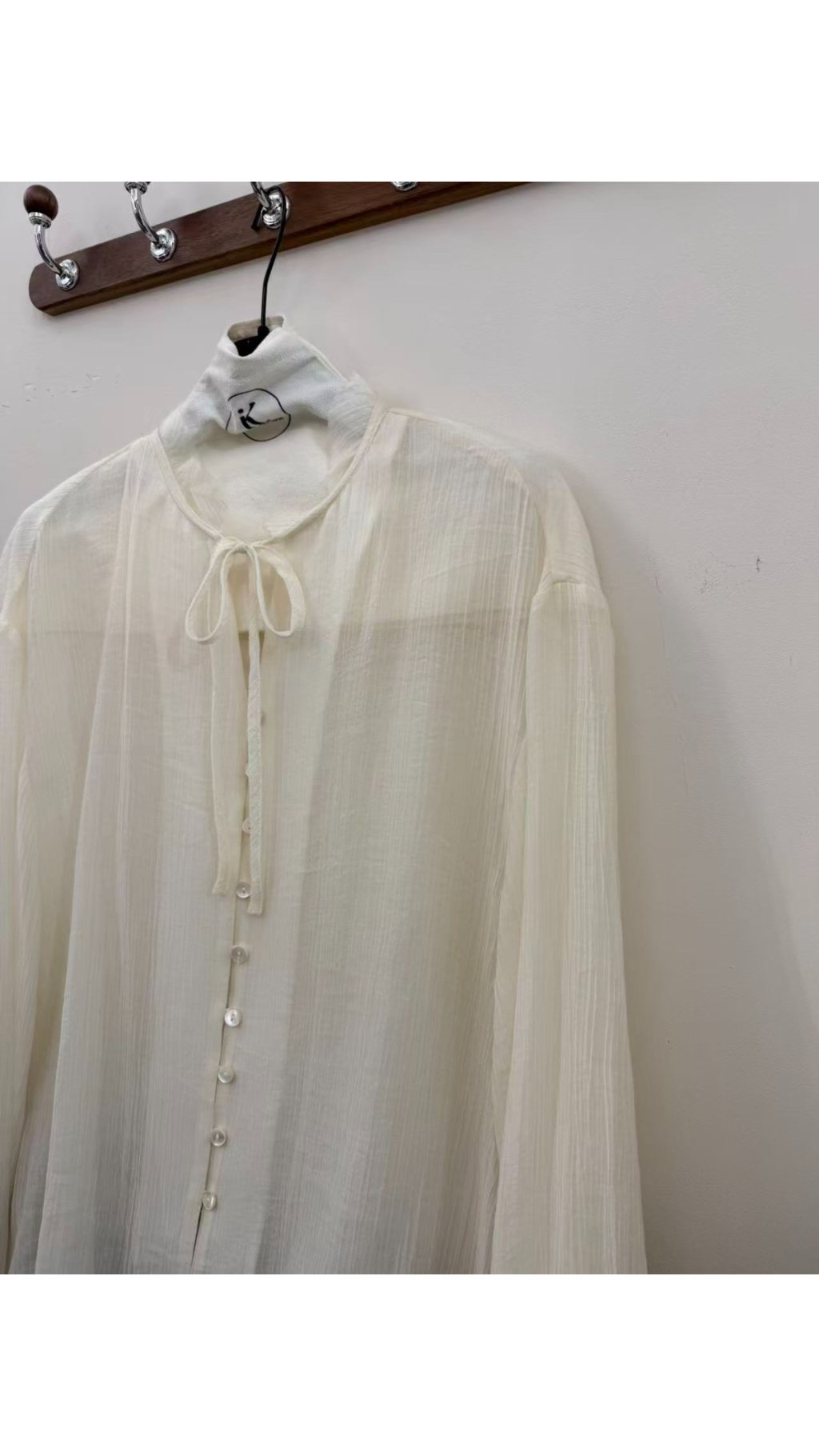 • 飄帶立領設計:立領 + 領口系帶設計,可打造多種穿法,拉長頸部線條,顯臉小,增添法式浪漫氛圍。