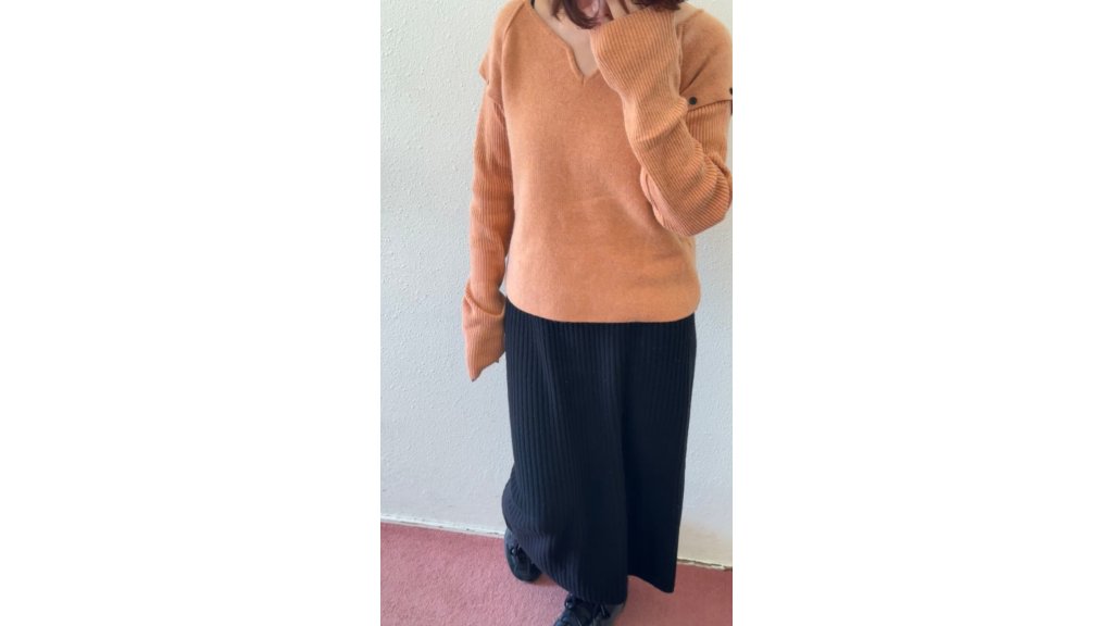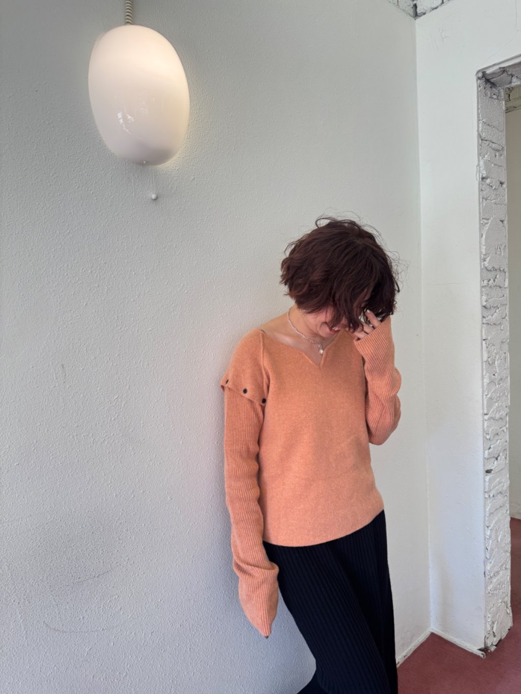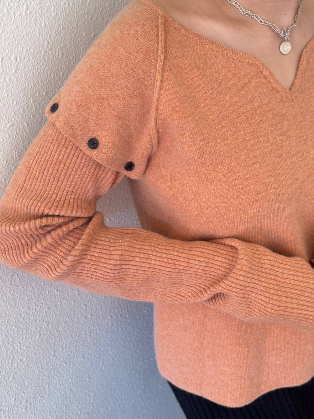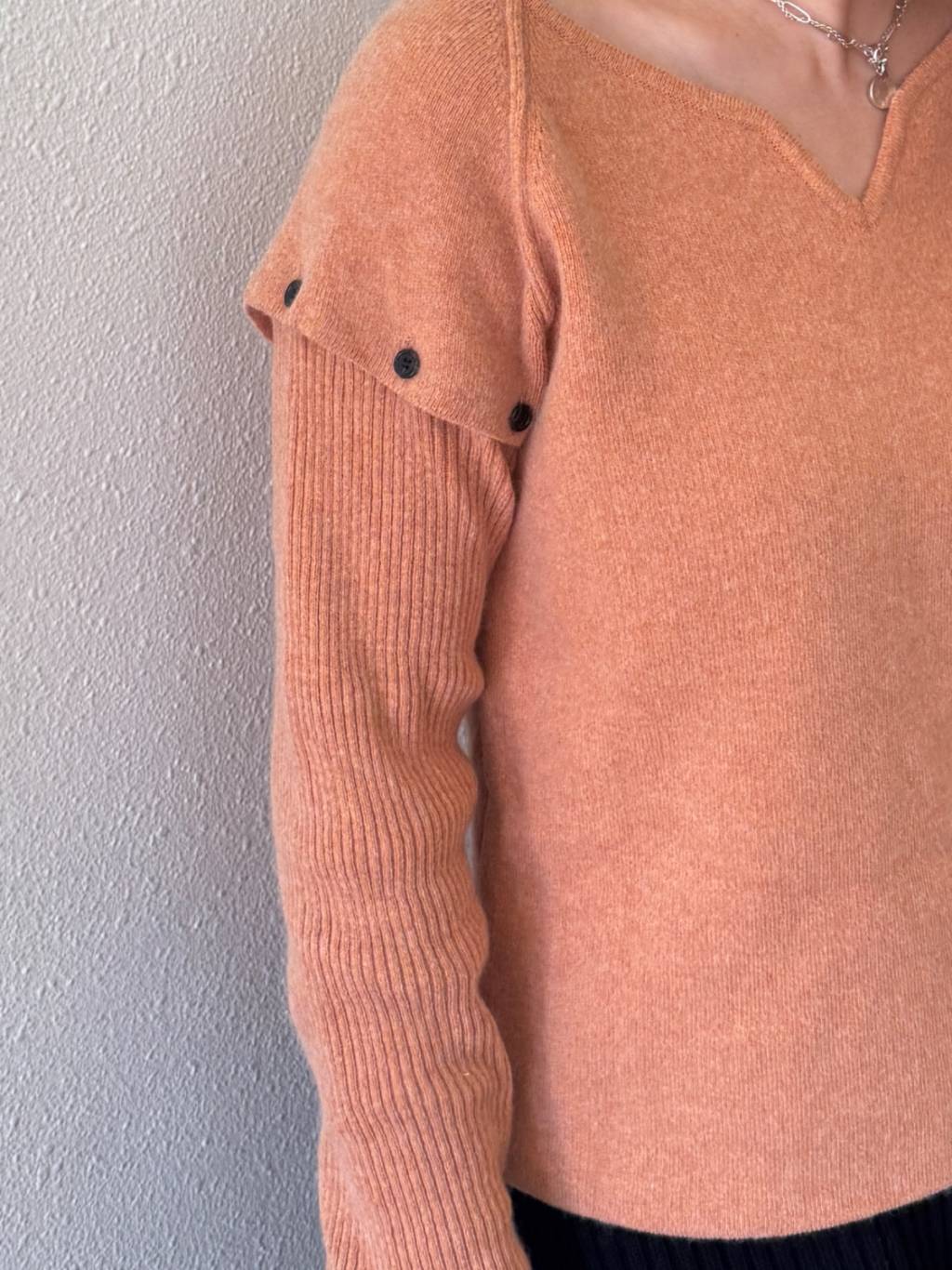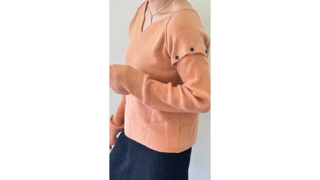 KN024-TB 粉橙色設計師款可拆卸袖羊毛針織衫