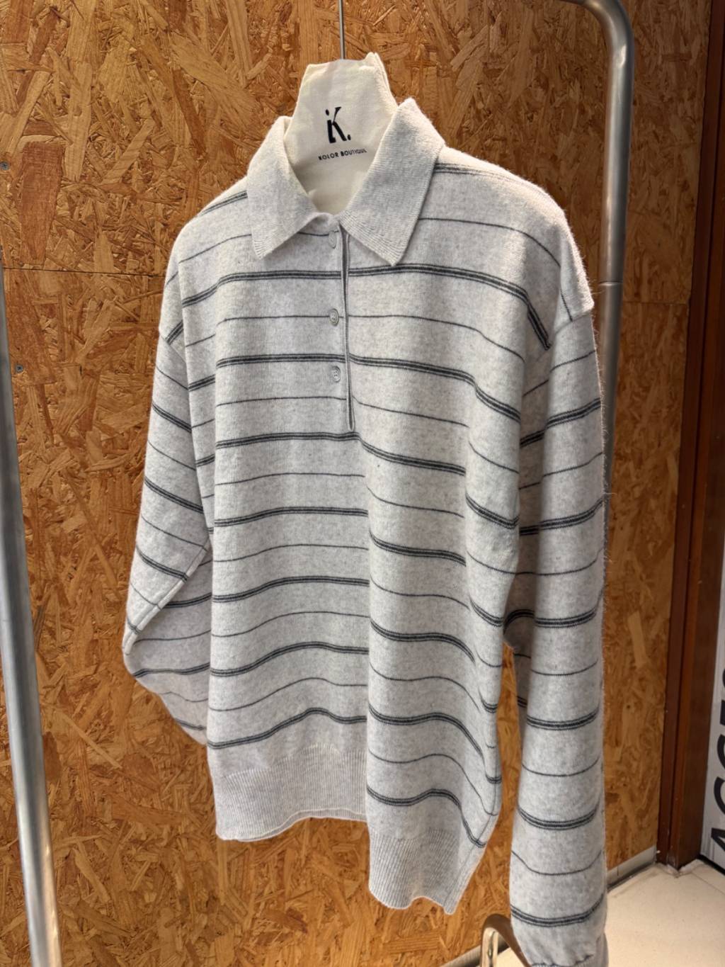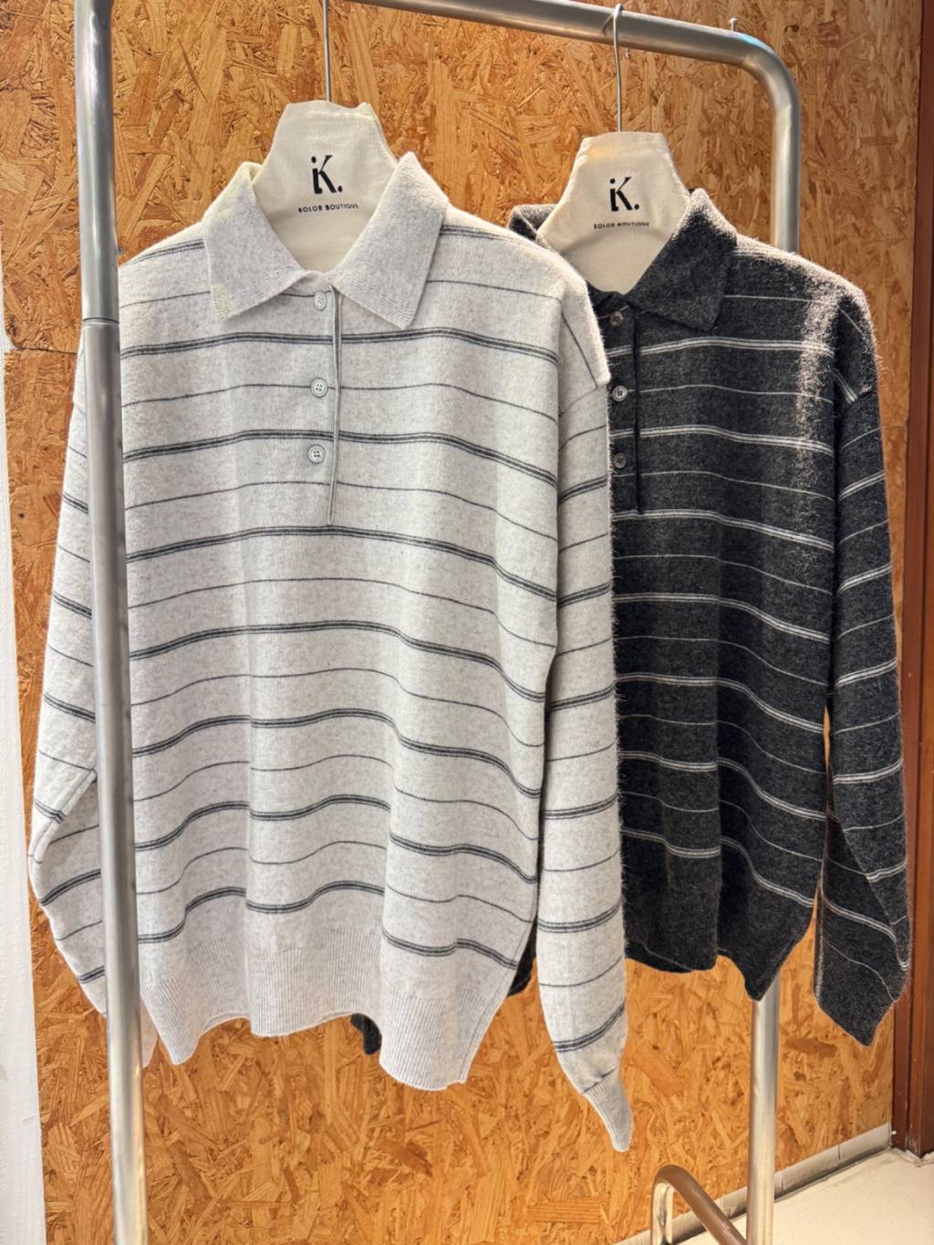 主頁 KN027-EG Baby wool橫間Polo針織衫