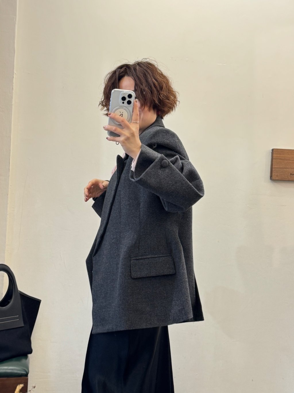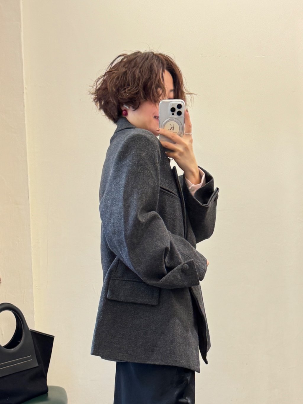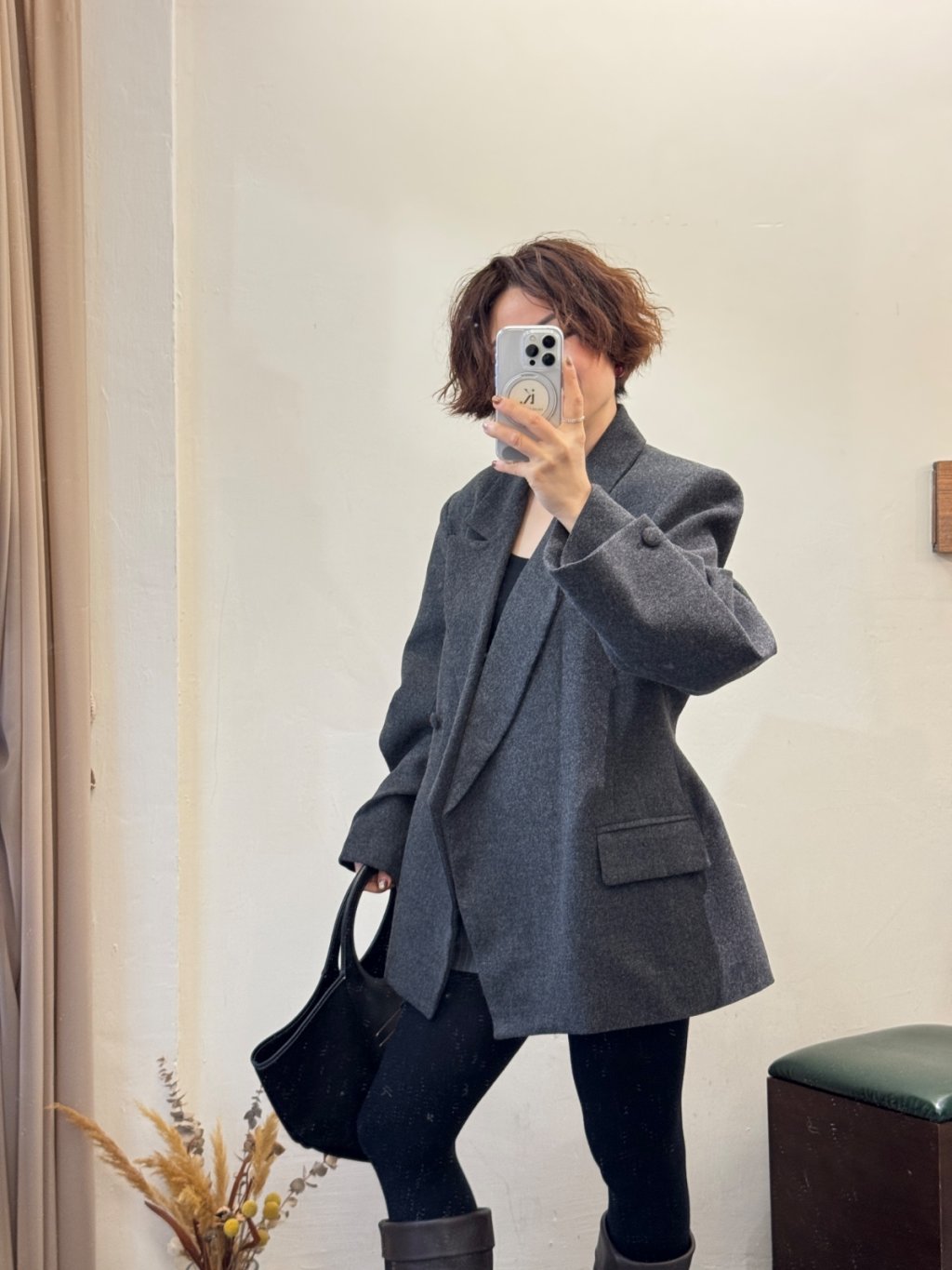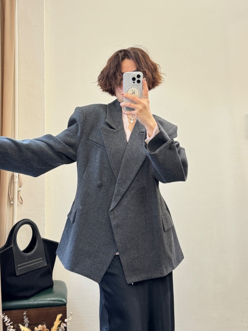 Jk20-606韓國設計師款霧面羊毛深灰廓形西裝jacket