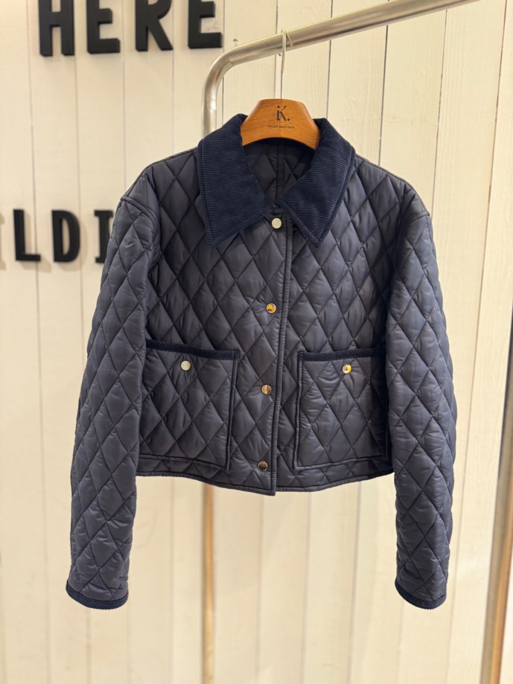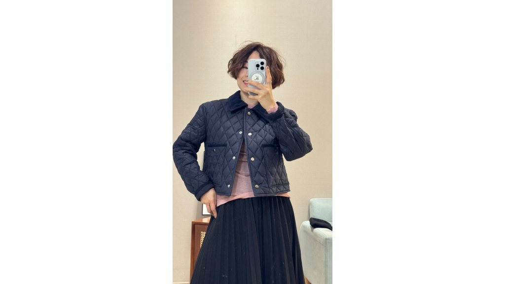 寶藍色菱格Polo夾棉jacket