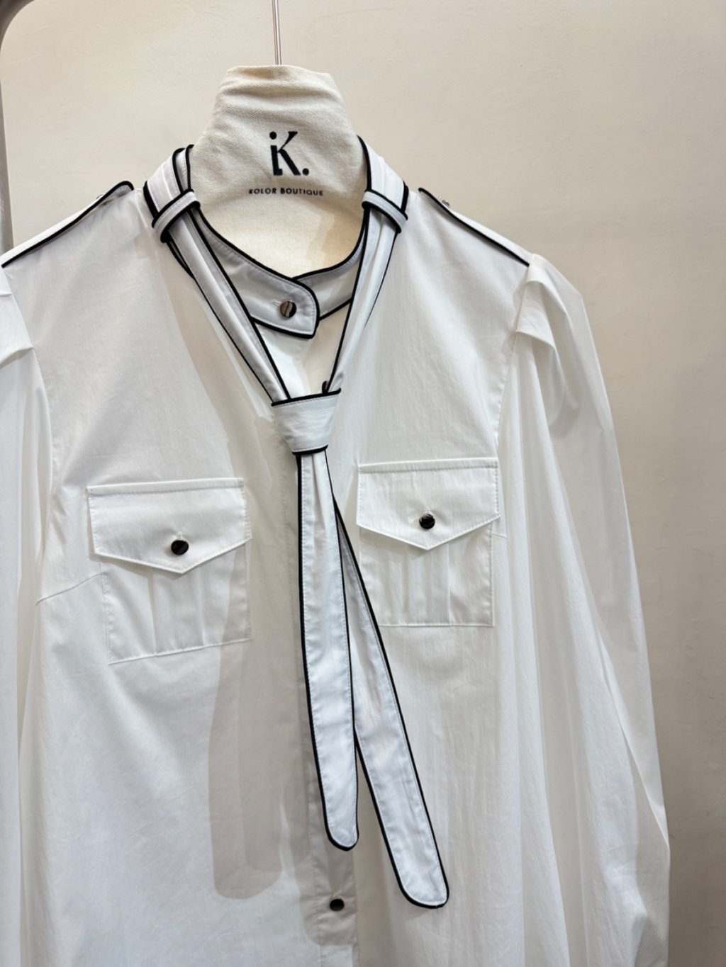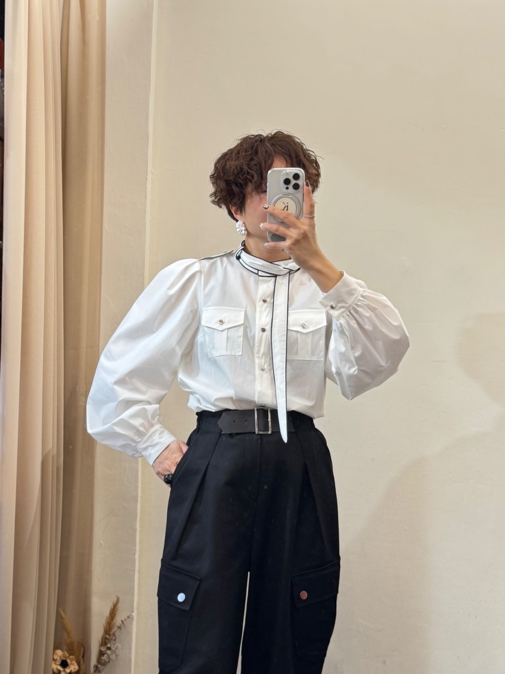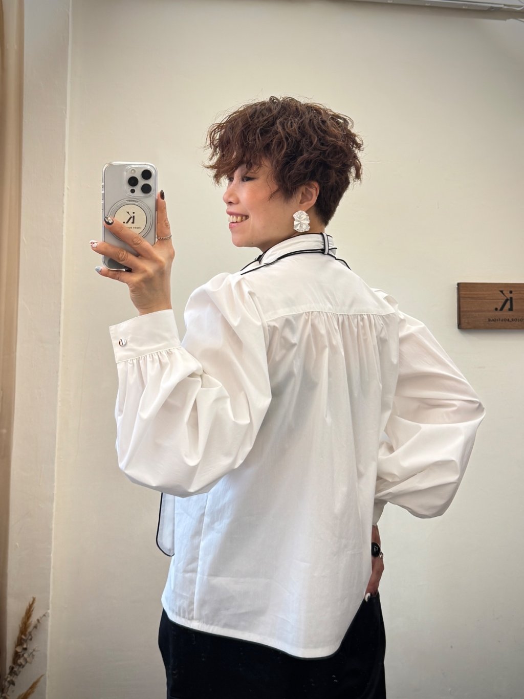 春日優雅登場✨呢件法式宮廷風蝴蝶結襯衫,選用高質挺括棉料,透氣舒適唔易皺;立體泡泡袖設計修飾手臂線條,撞色滾邊細節精緻高級,可拆蝴蝶結領帶隨意轉換風格;白色調百搭不挑人,香港春天出街、返工、約會著都得體!
