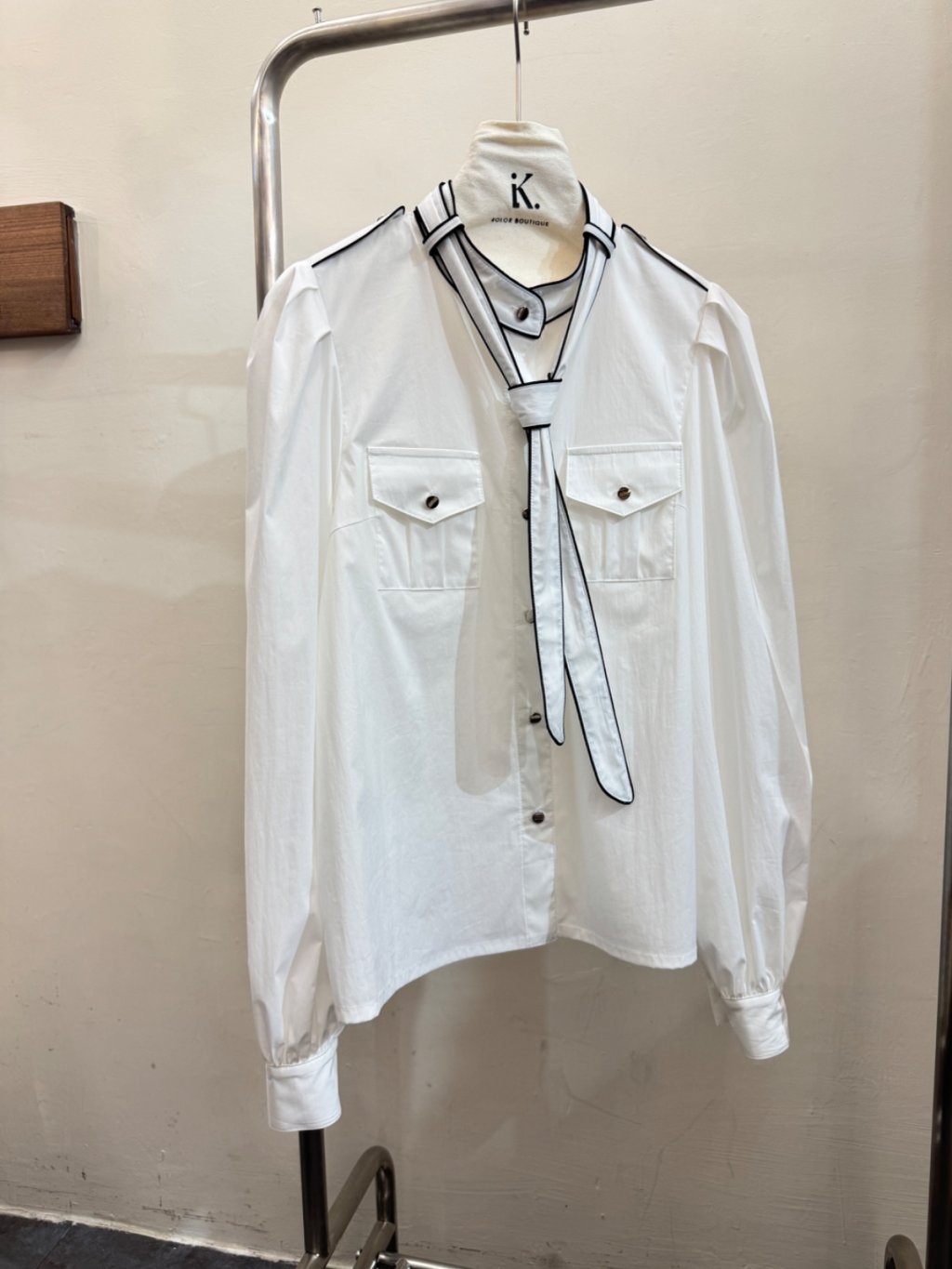 TP60201白色法式宮廷風蝴蝶結带襯衫