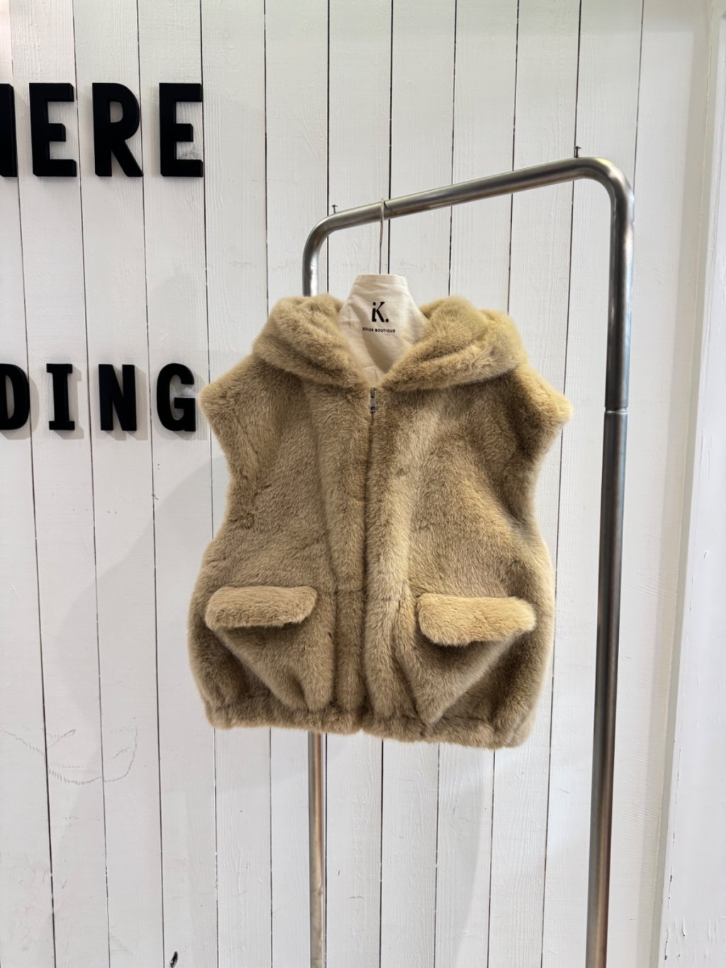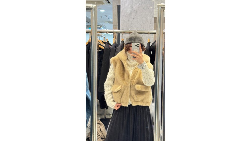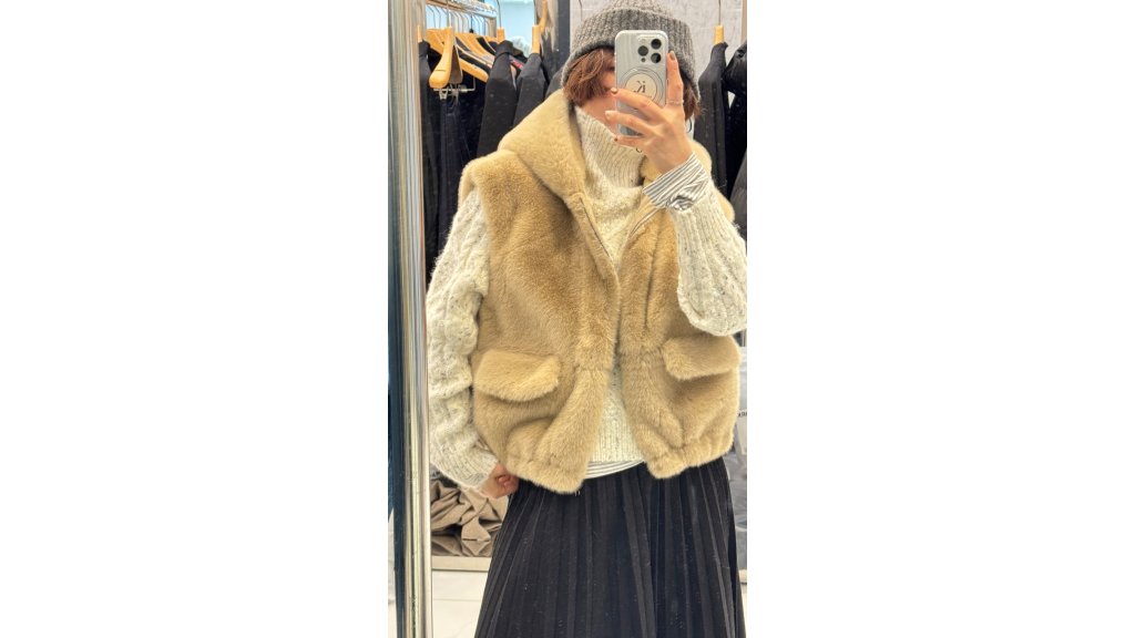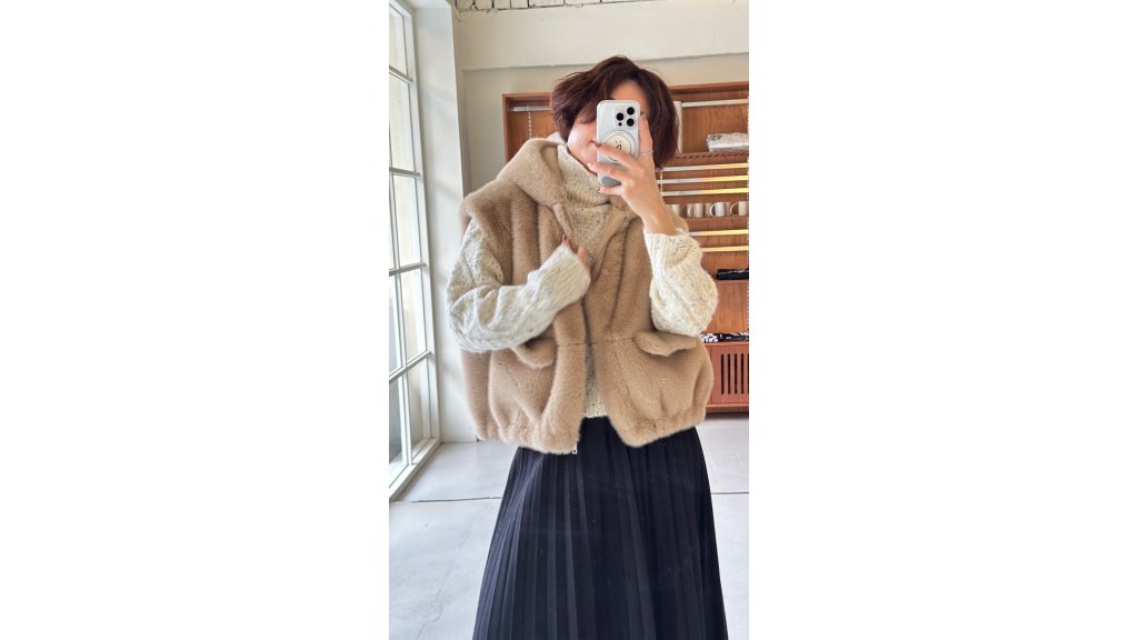 淺駝色毛毛連帽馬甲