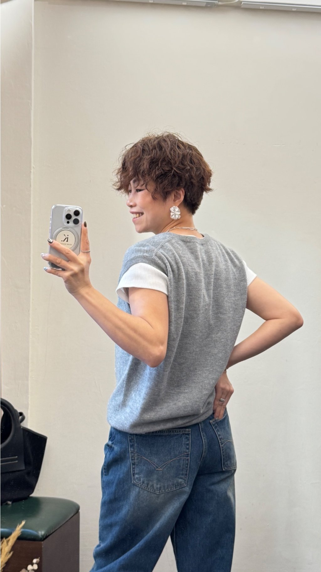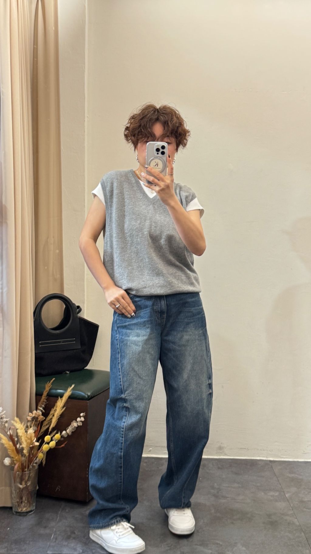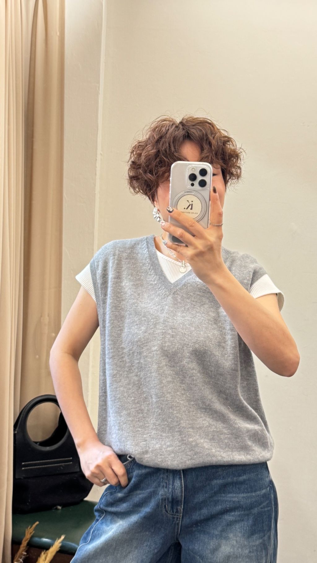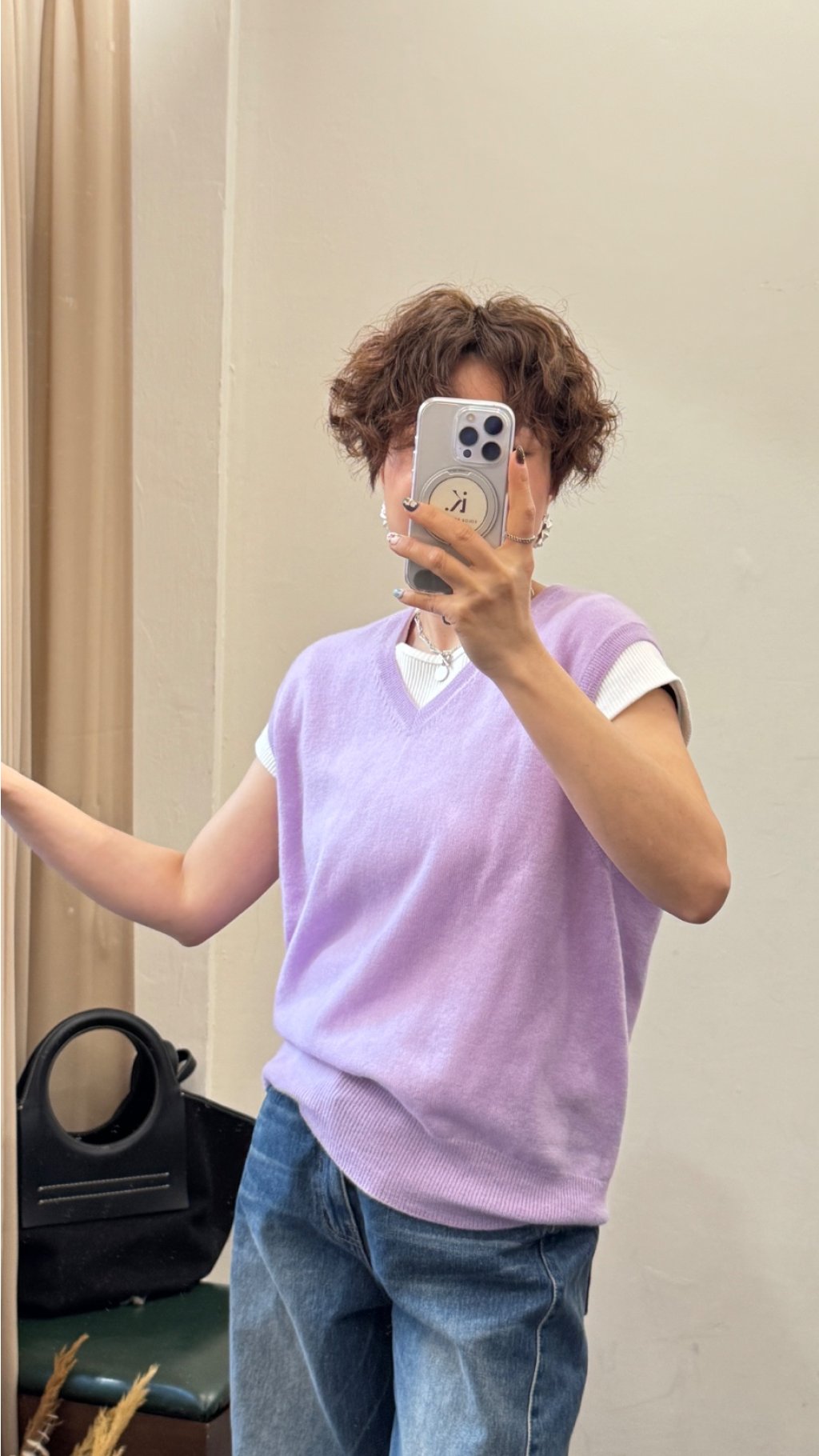 • 內搭:白色螺紋短袖,增加層次感