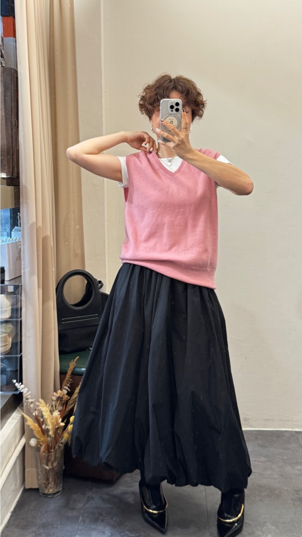 • 下裝:黑傘裙(優雅)、牛仔褲(休閒)、西褲(幹練)