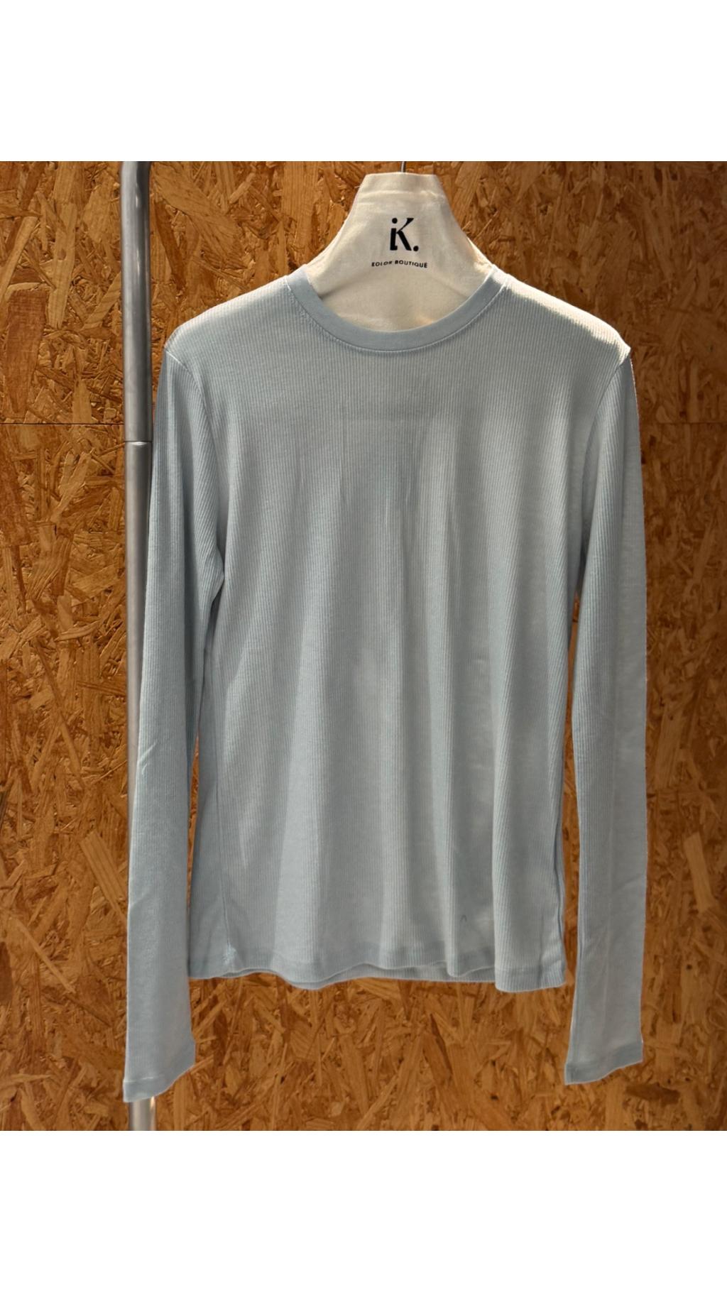 Top6022801mo細坑條圓領長袖打底 T 恤