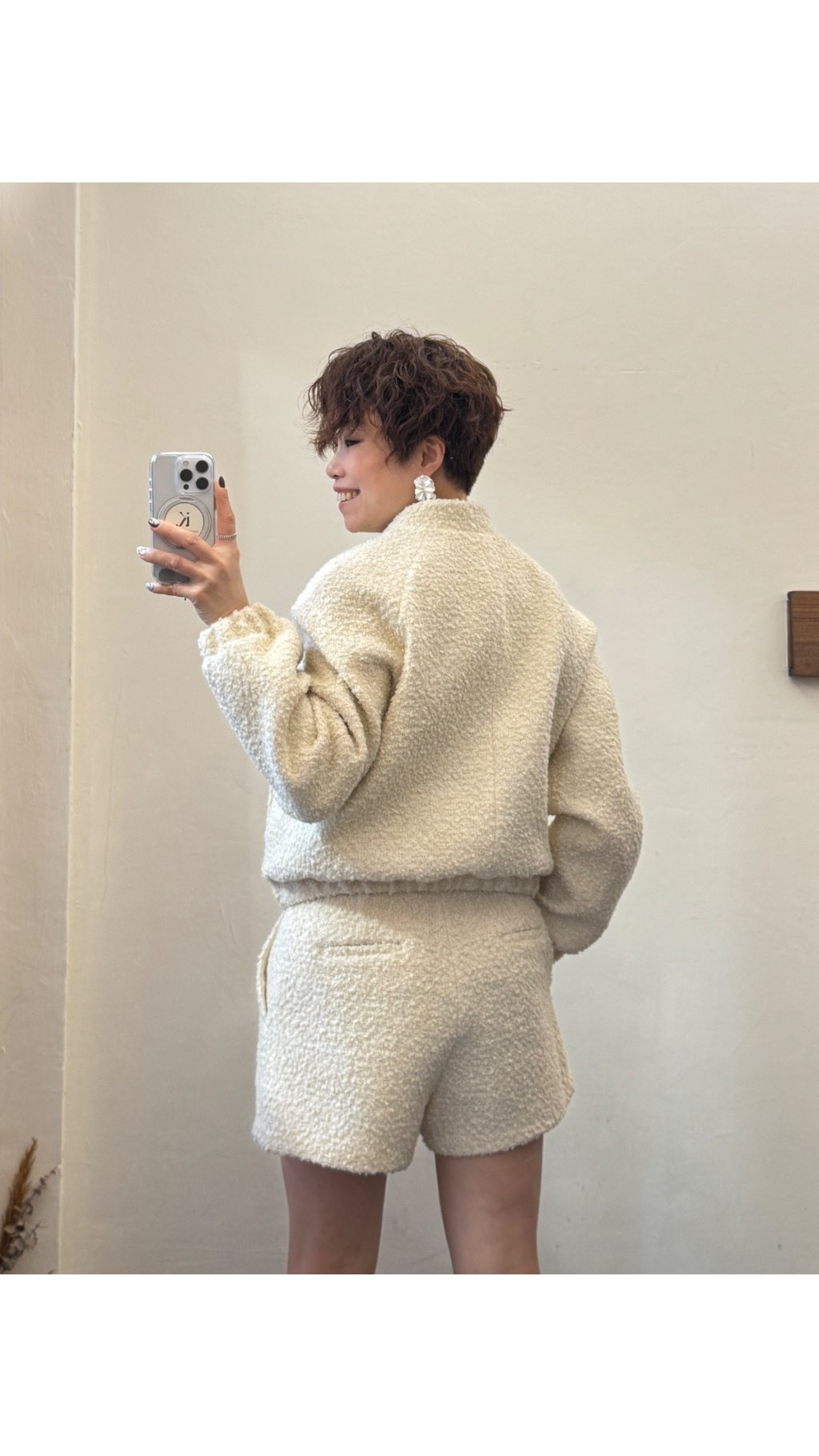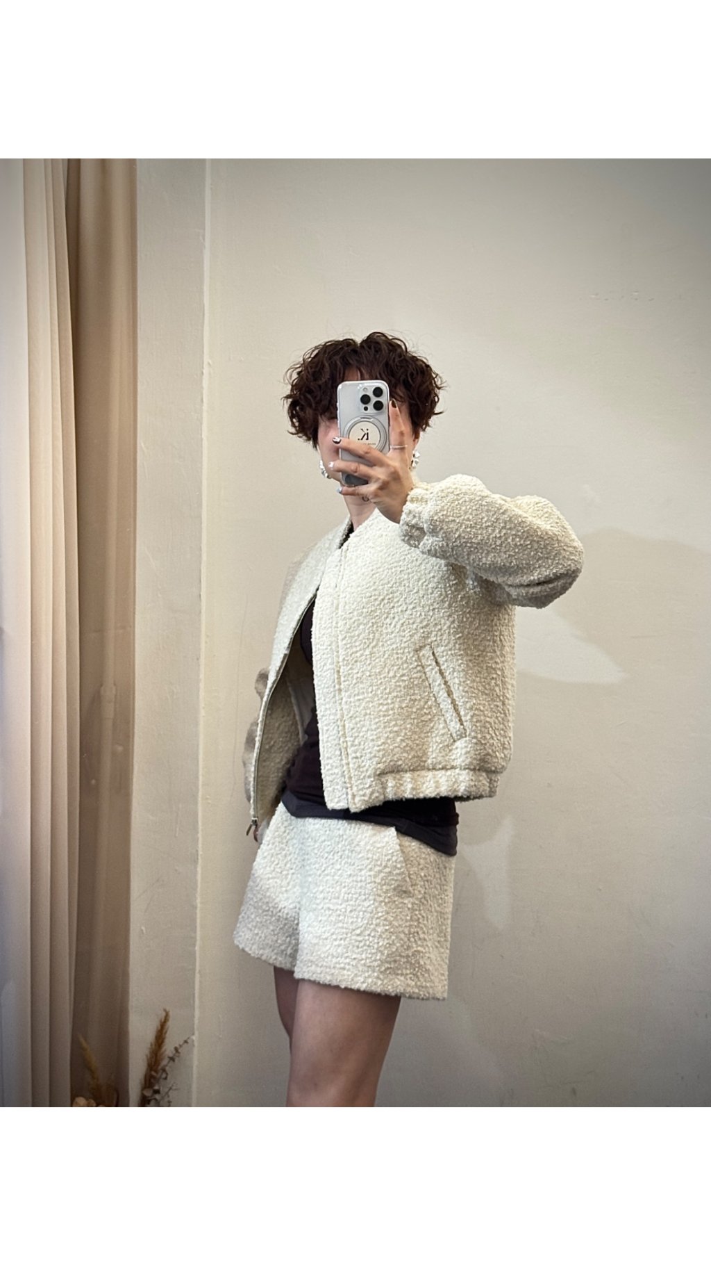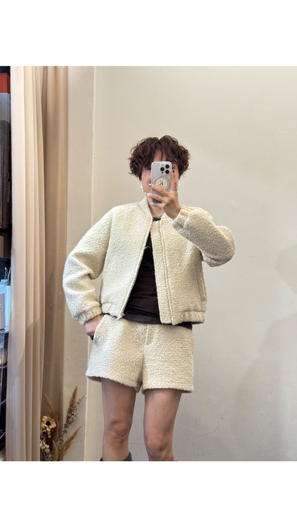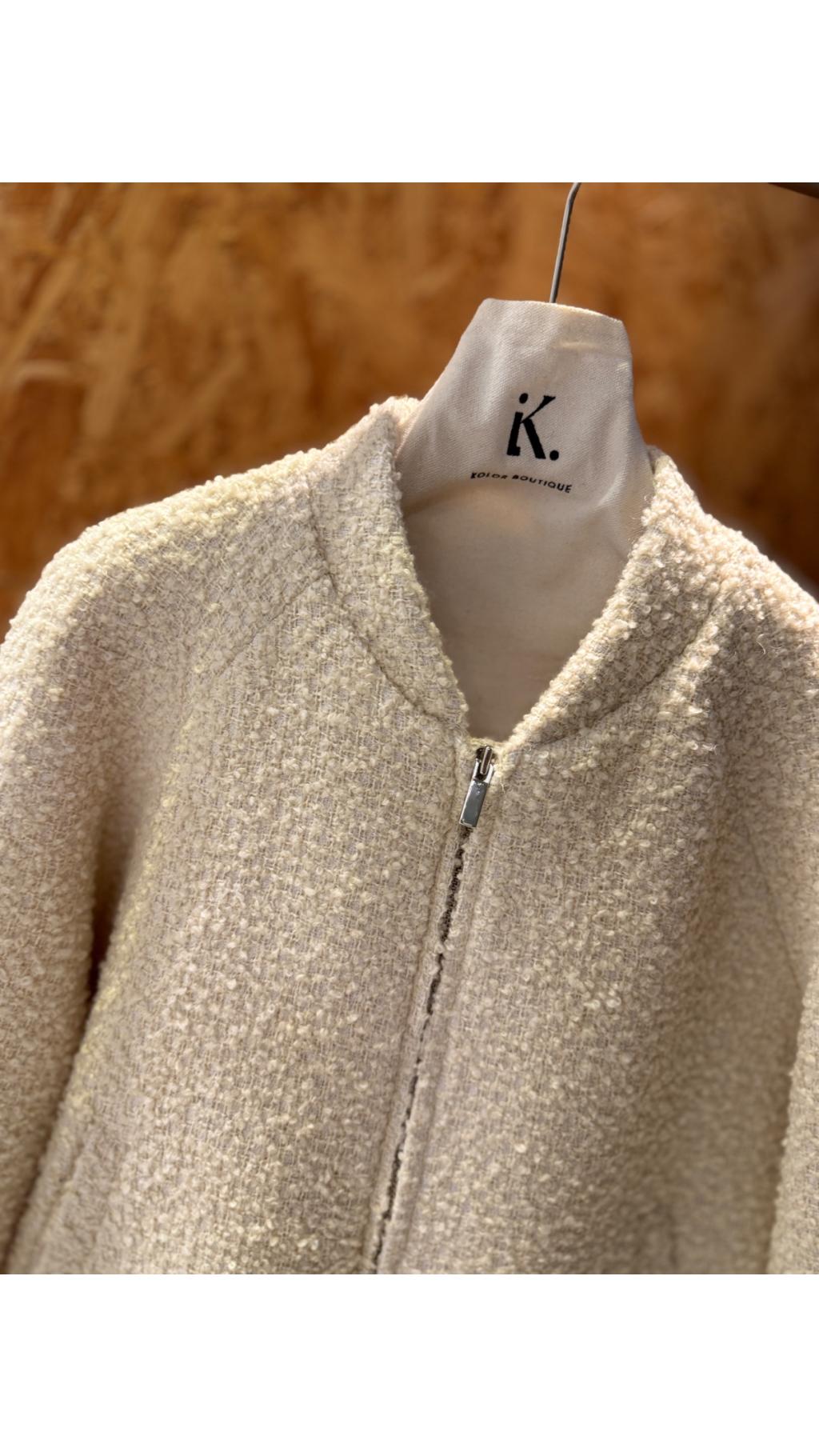 JC60302to01米白經典Tweed粗花呢棒球領短外套