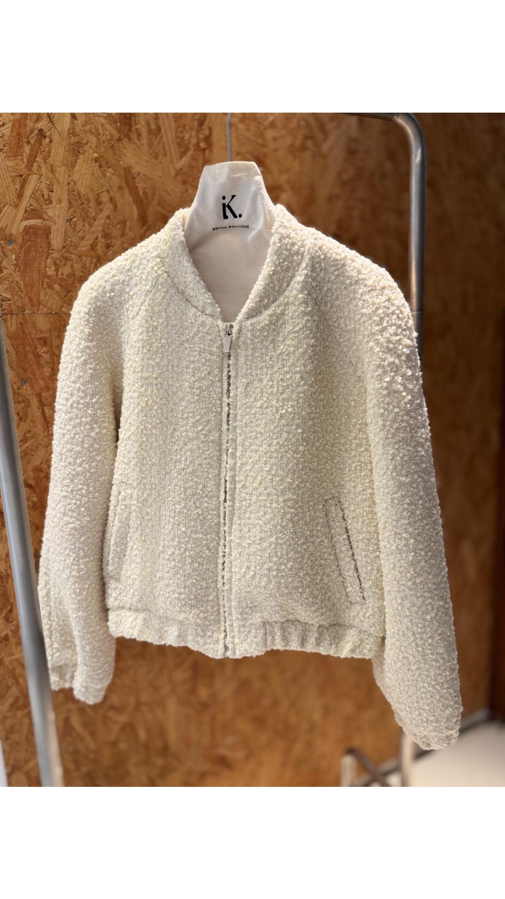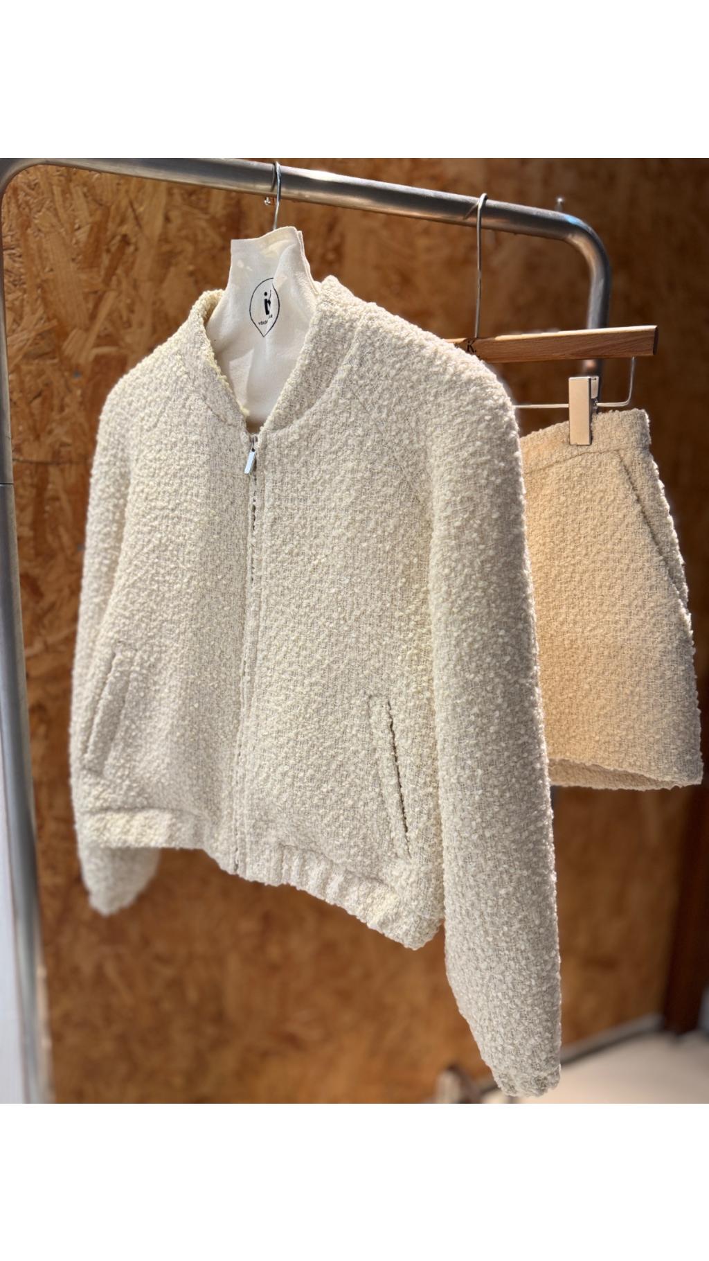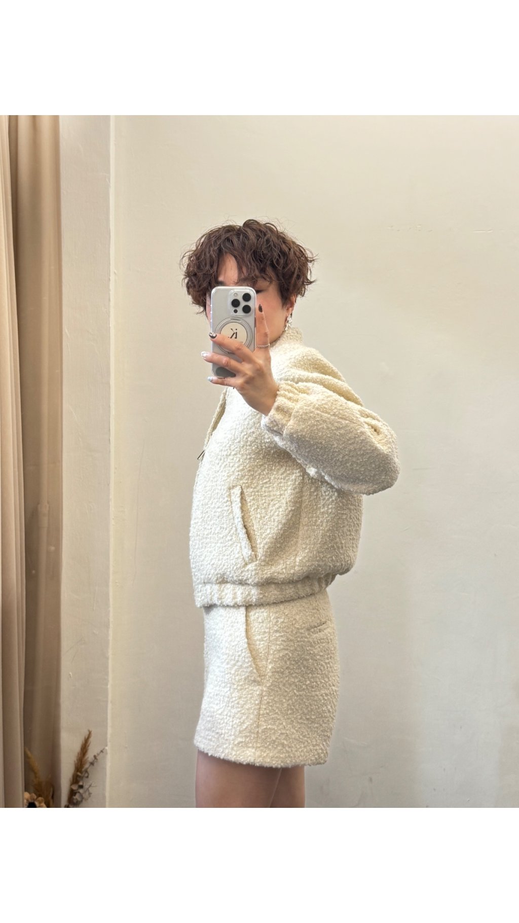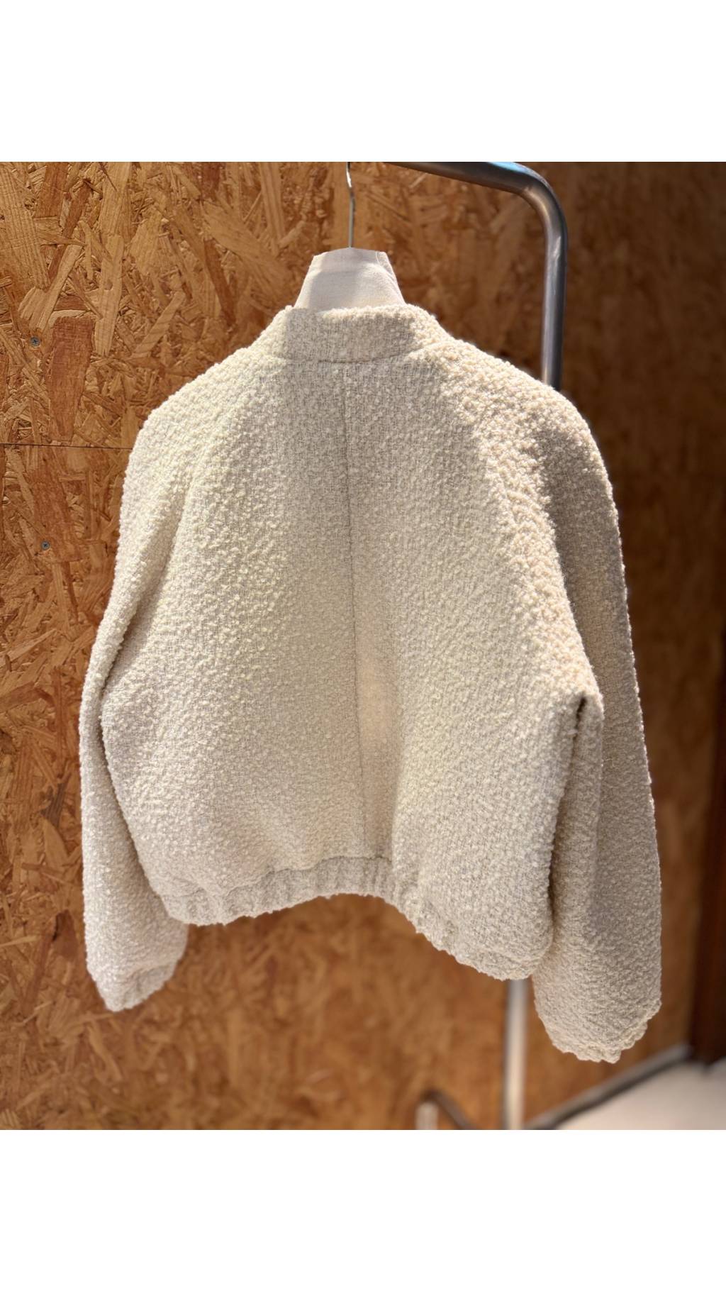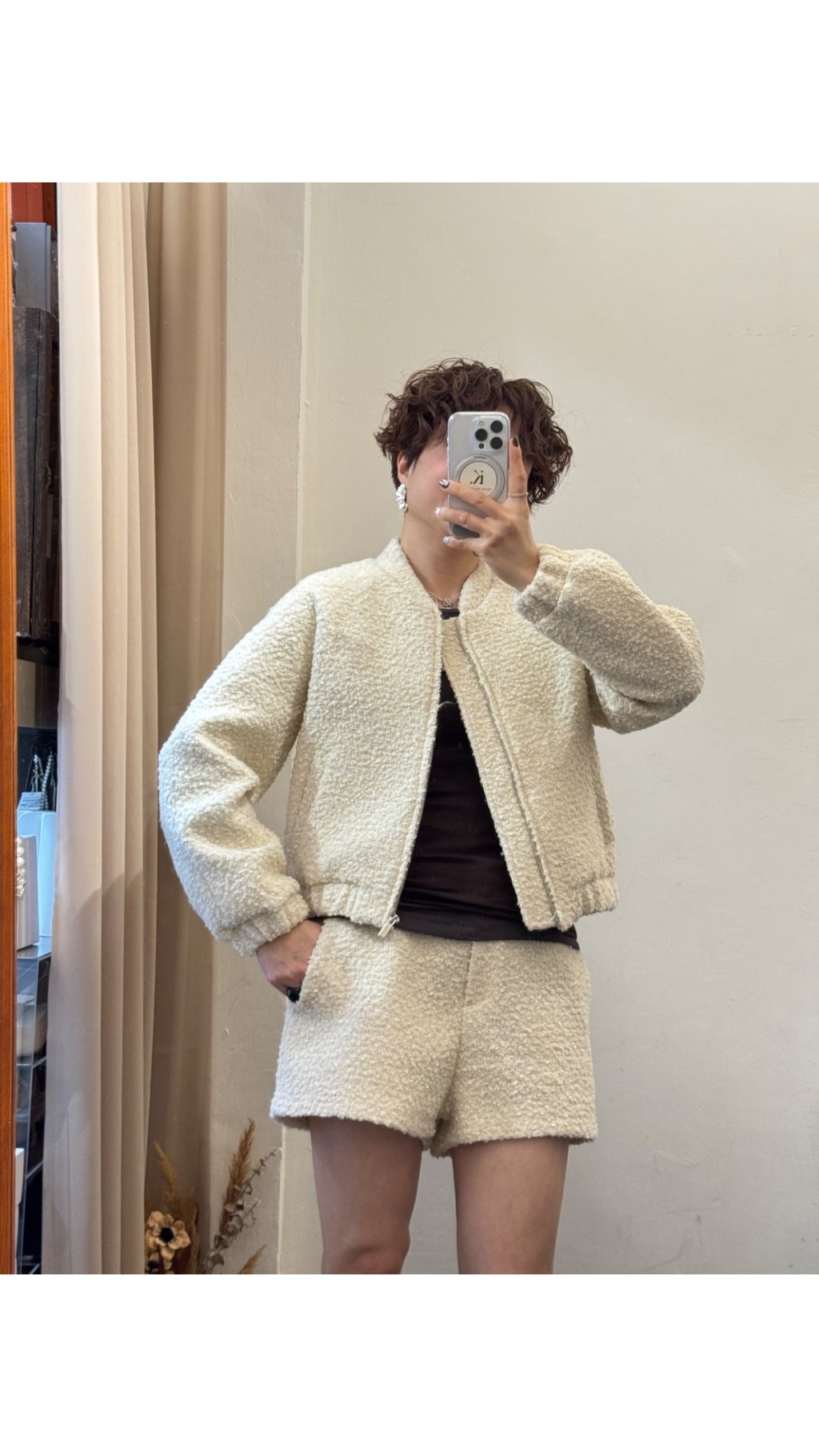 JC60302to01米白經典Tweed粗花呢棒球領短外套